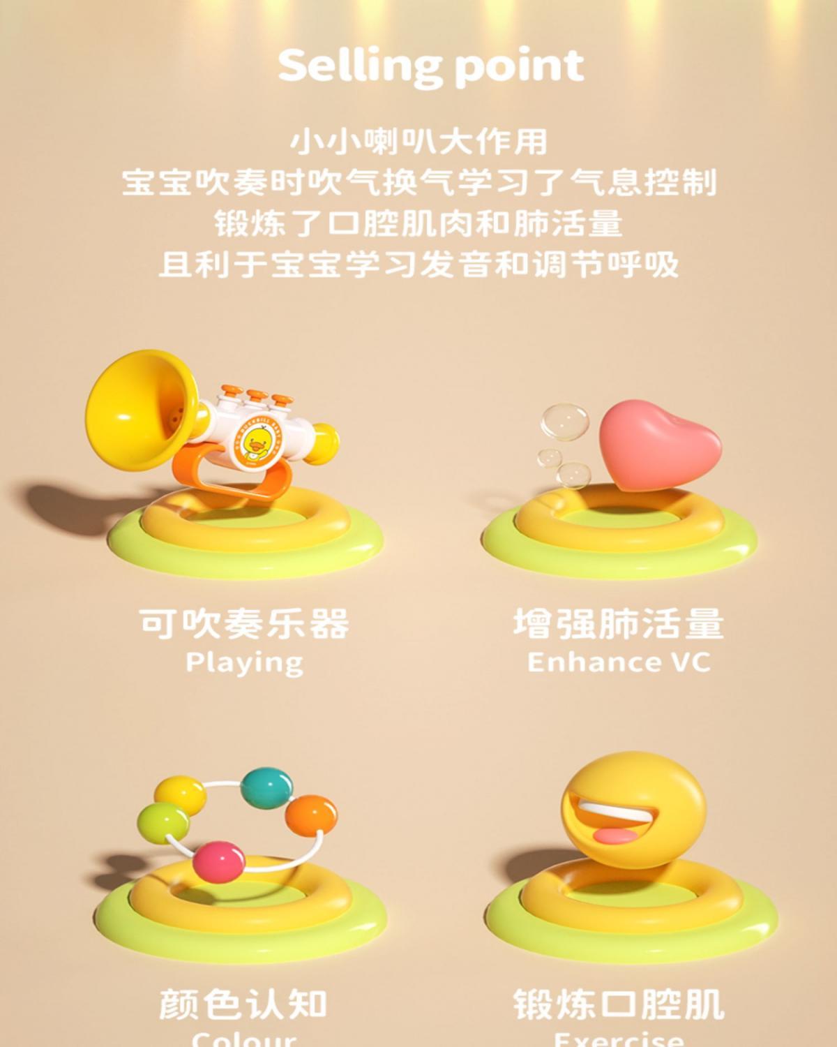 黄小鸭小喇叭儿童玩具吹吹乐婴儿可吹的迷你口琴宝宝喇叭口哨乐器
