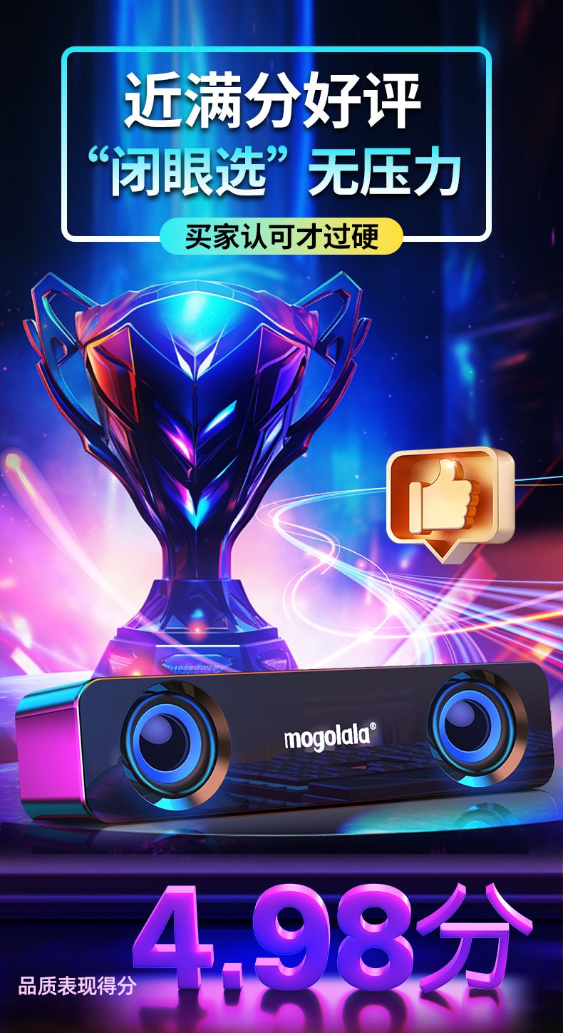 | 顶配:全频双喇叭+全景无损+蓝牙功能+七彩灯 | USD $10.26 | 99999 piece available |