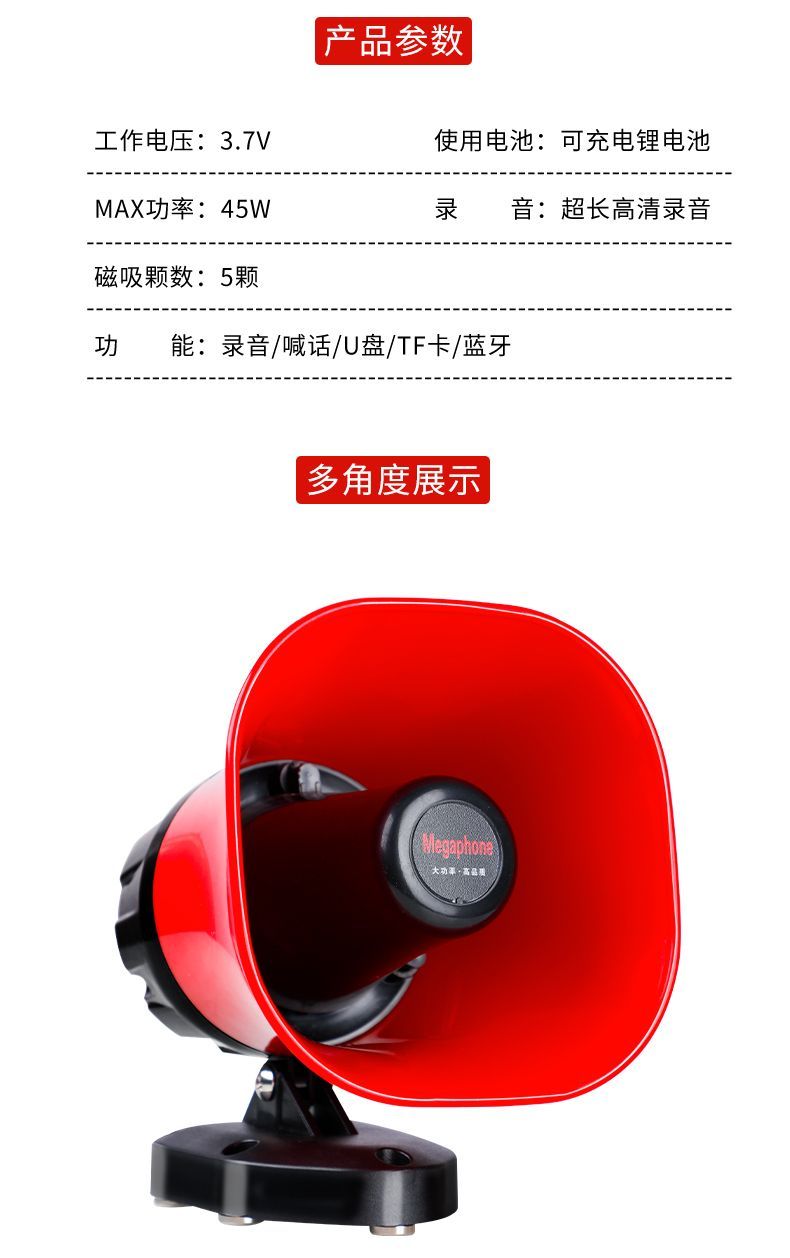 大音量喇叭音响叫卖摆地摊可充电蓝牙喊话器录音小喇叭扩音器超响