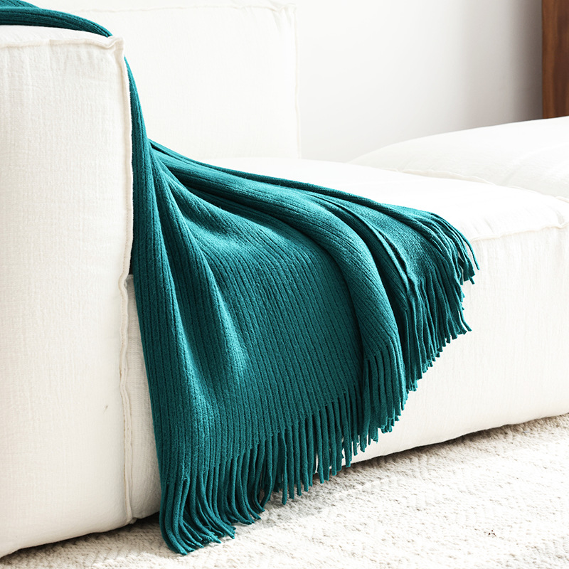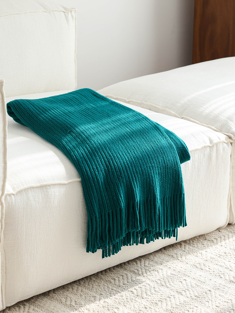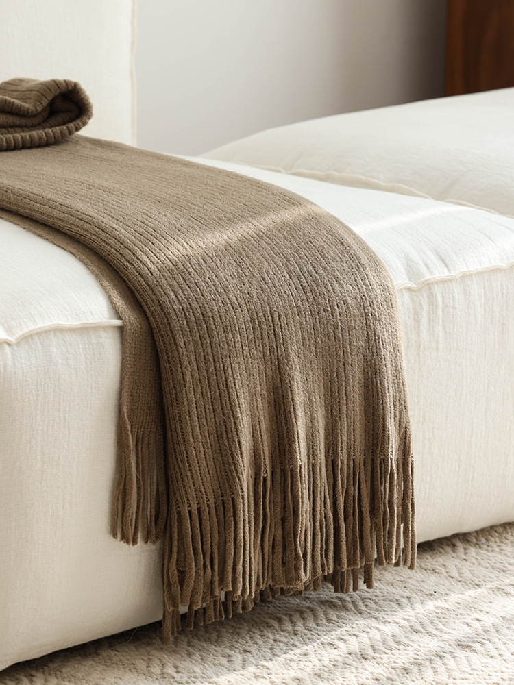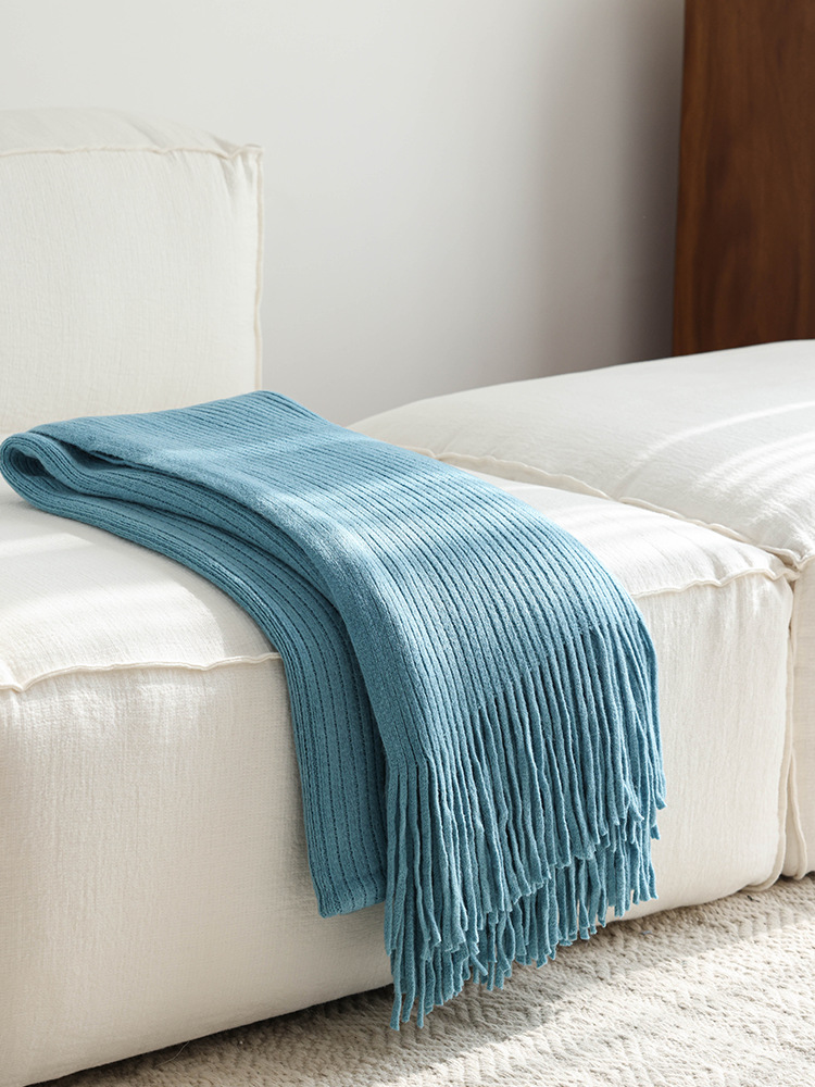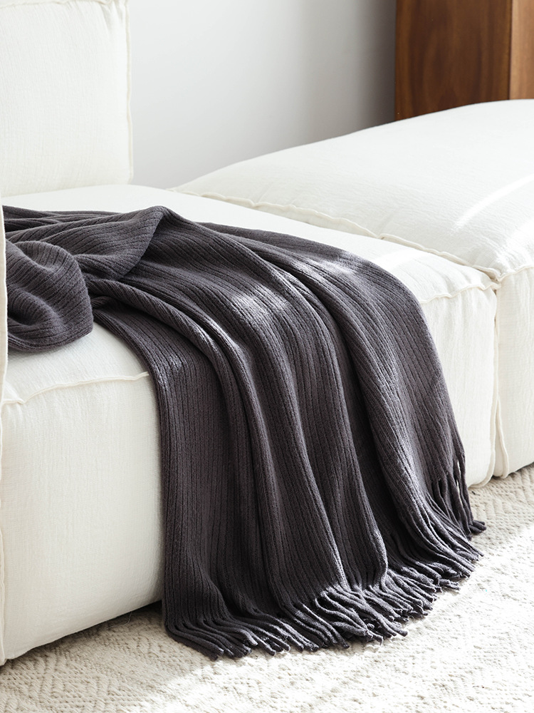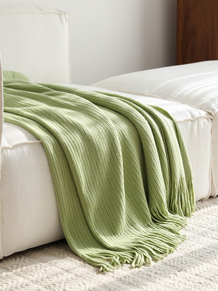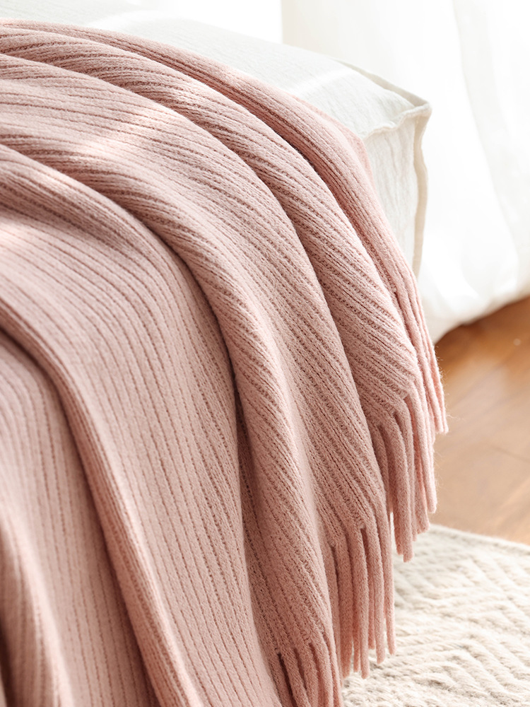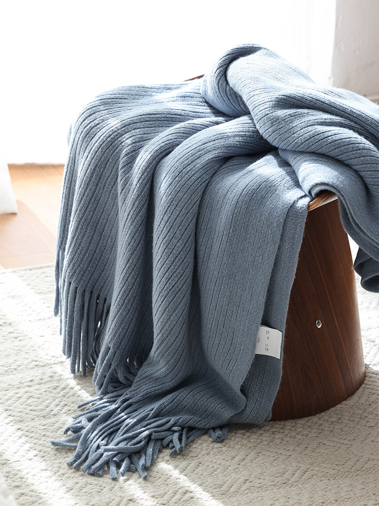 外销跨境款纯色针织盖毯床尾巾毛毯经编工厂现货一件代发美式搭巾