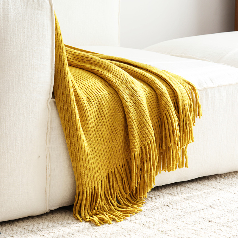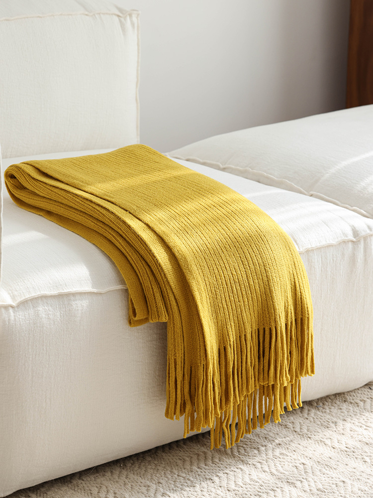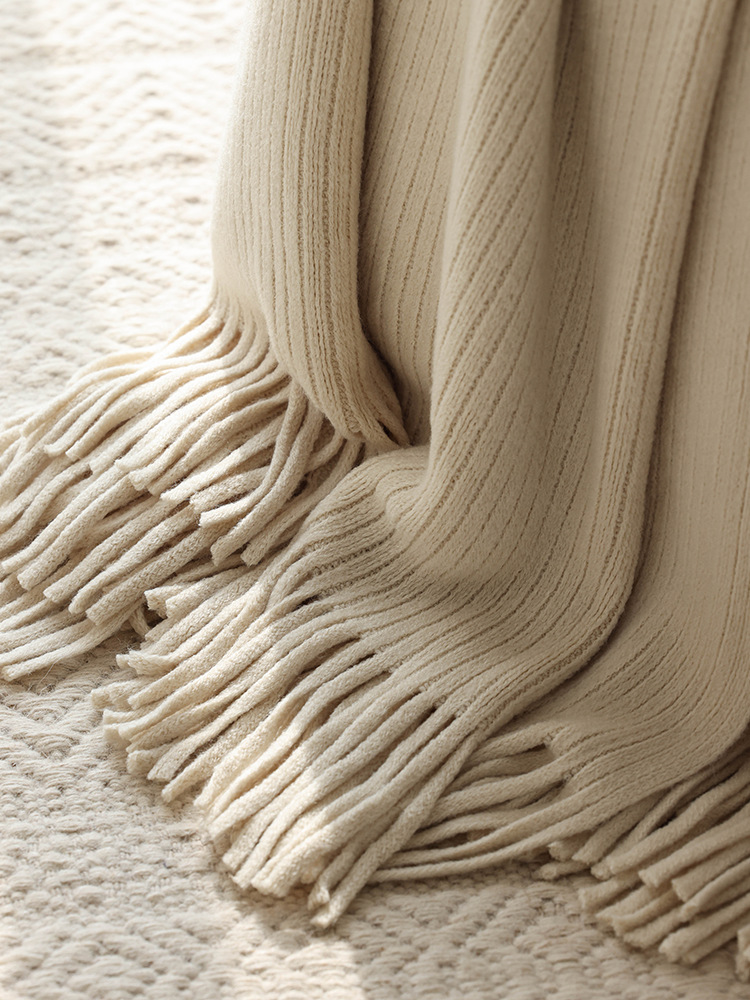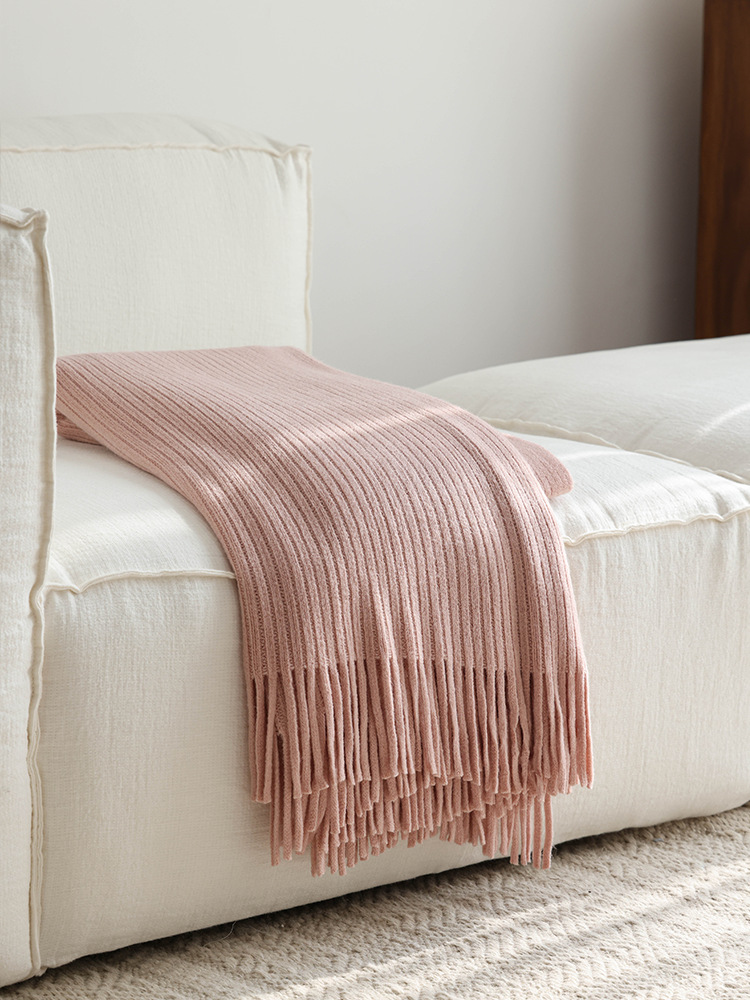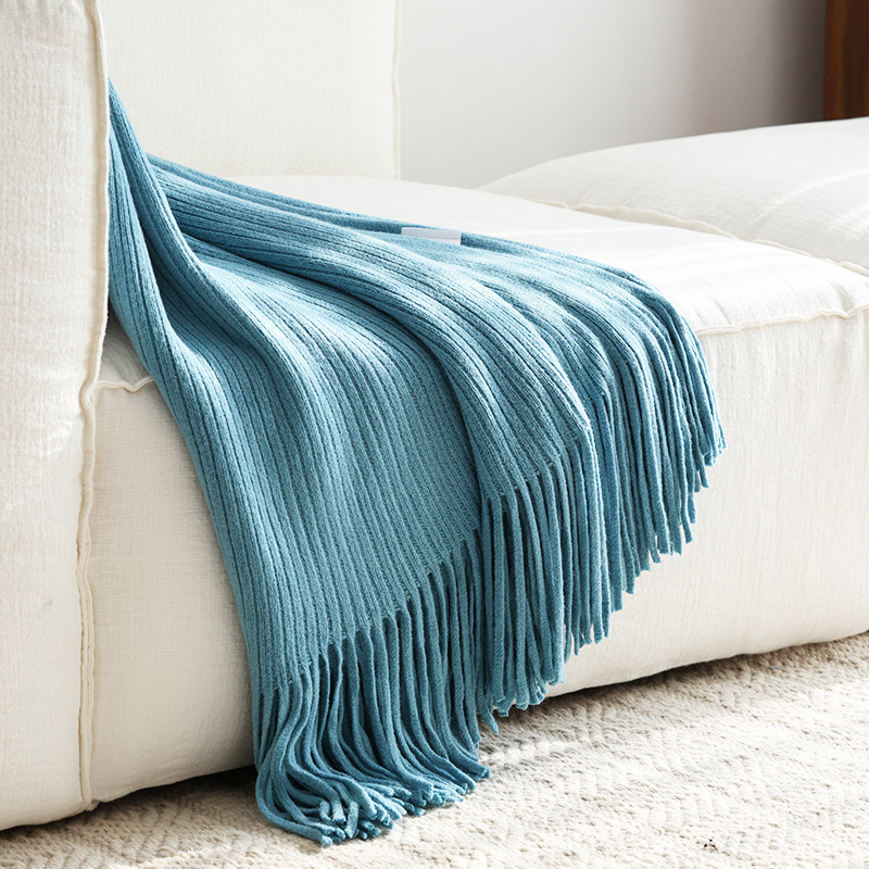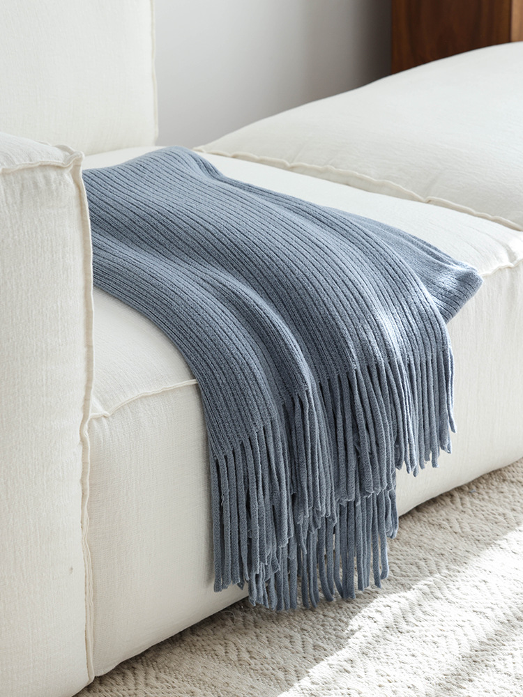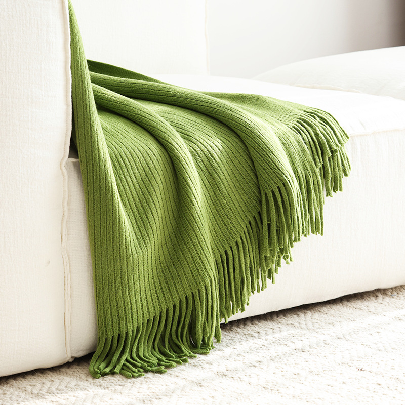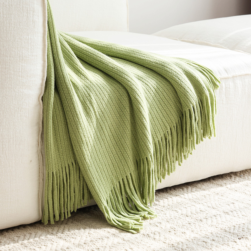 外销跨境款纯色针织盖毯床尾巾毛毯经编工厂现货一件代发美式搭巾