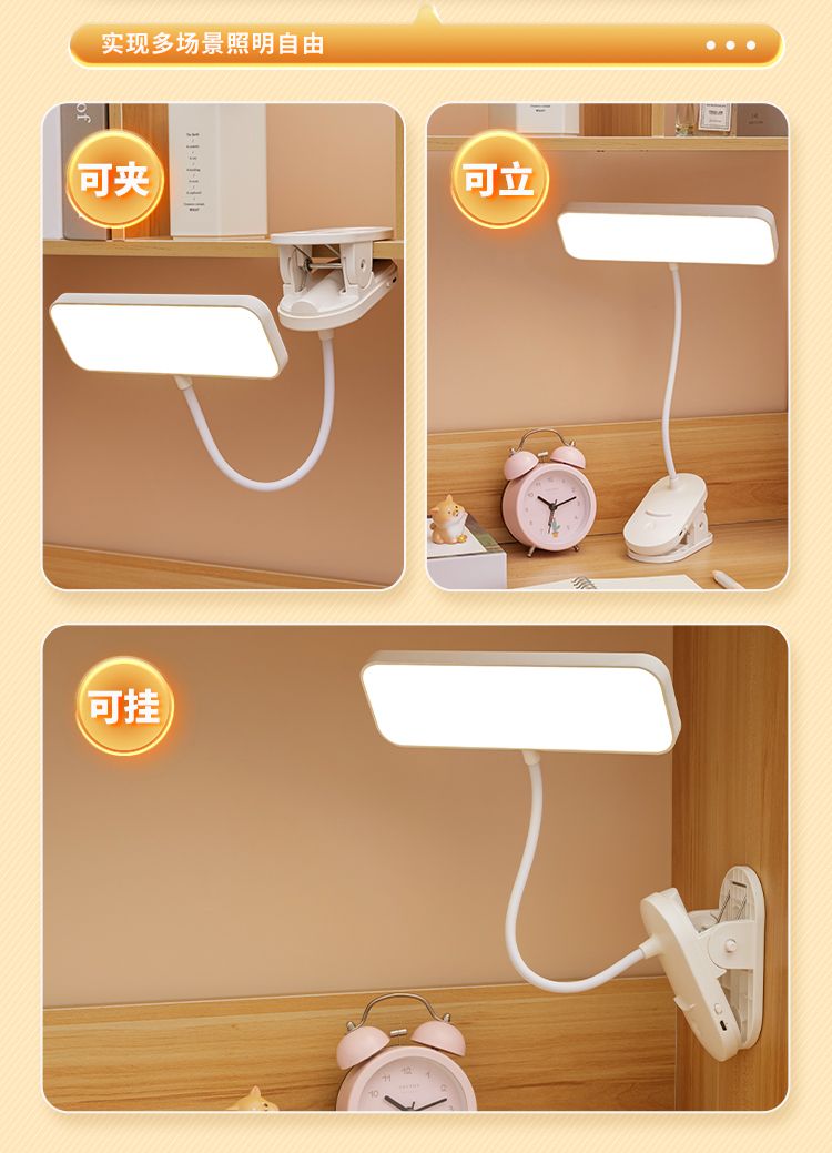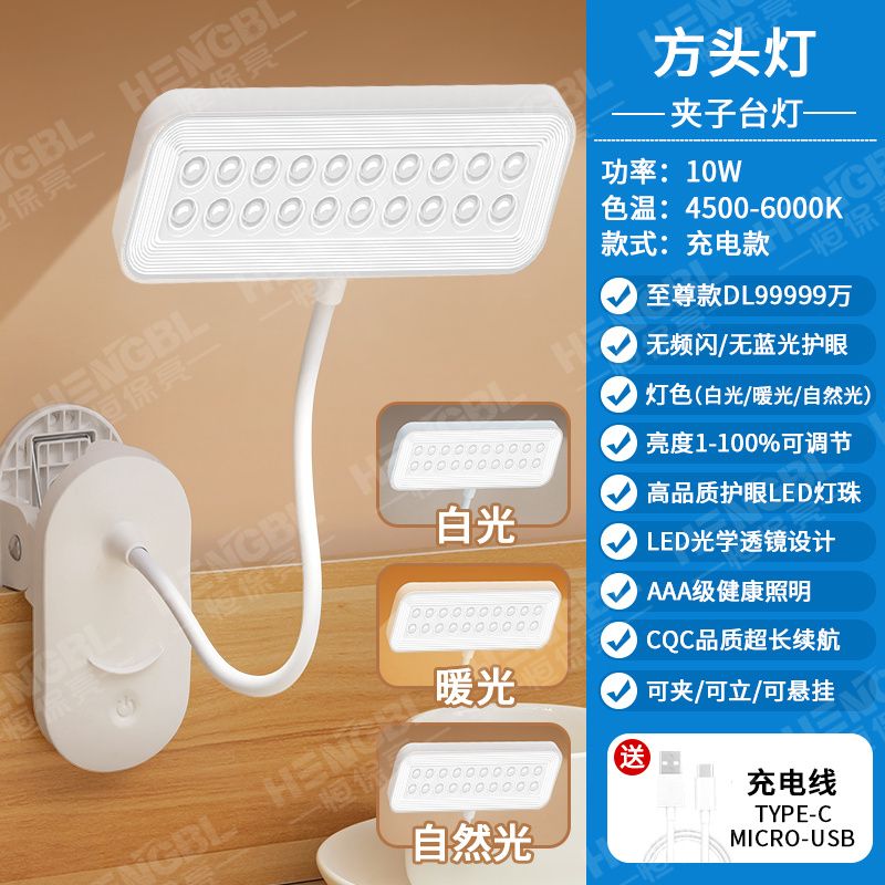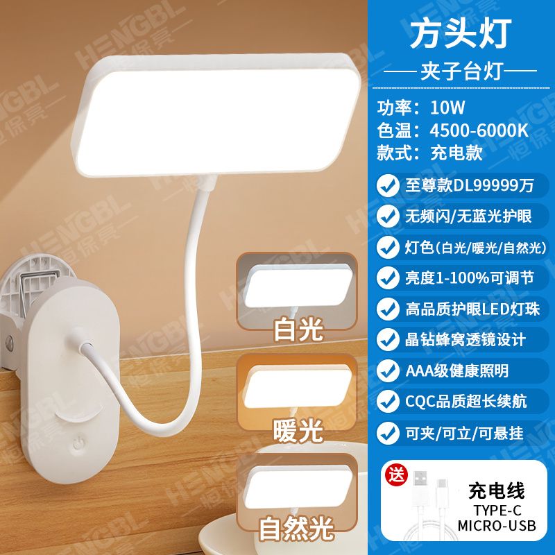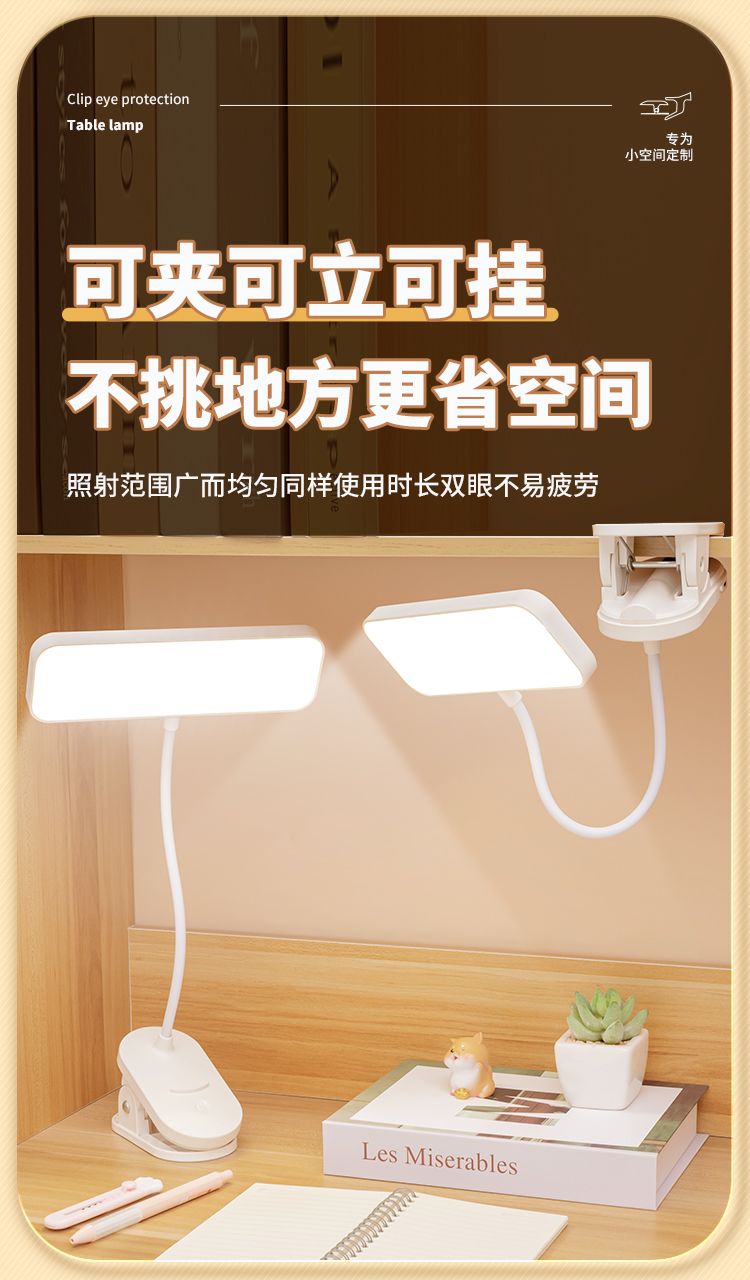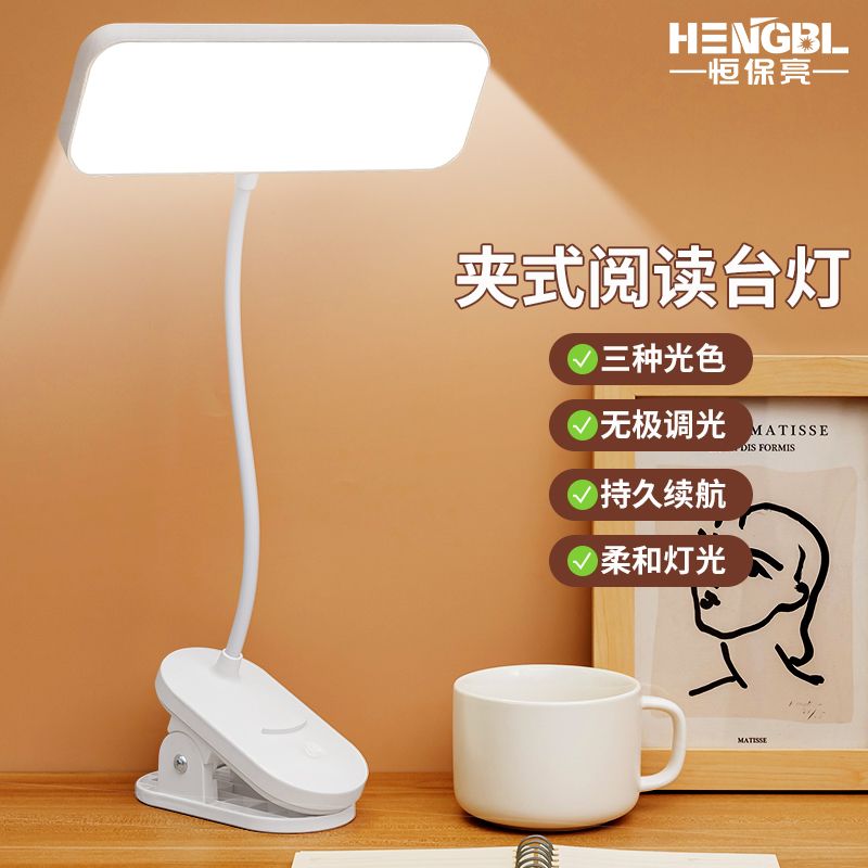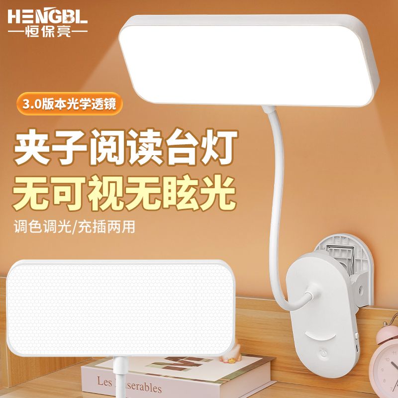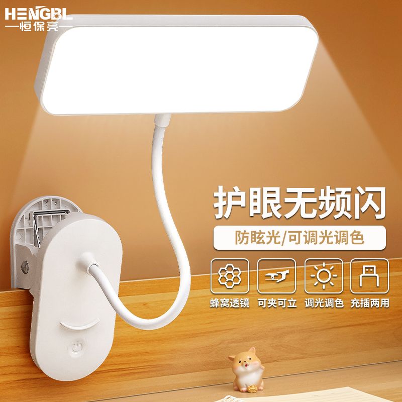 恒保亮夹子LED台灯护眼学习灯充电插电学生宿舍灯卧室床头小夜灯