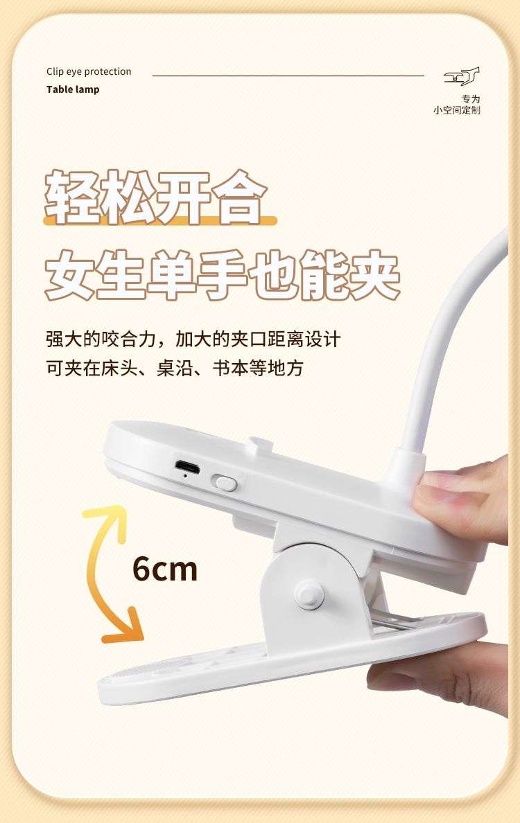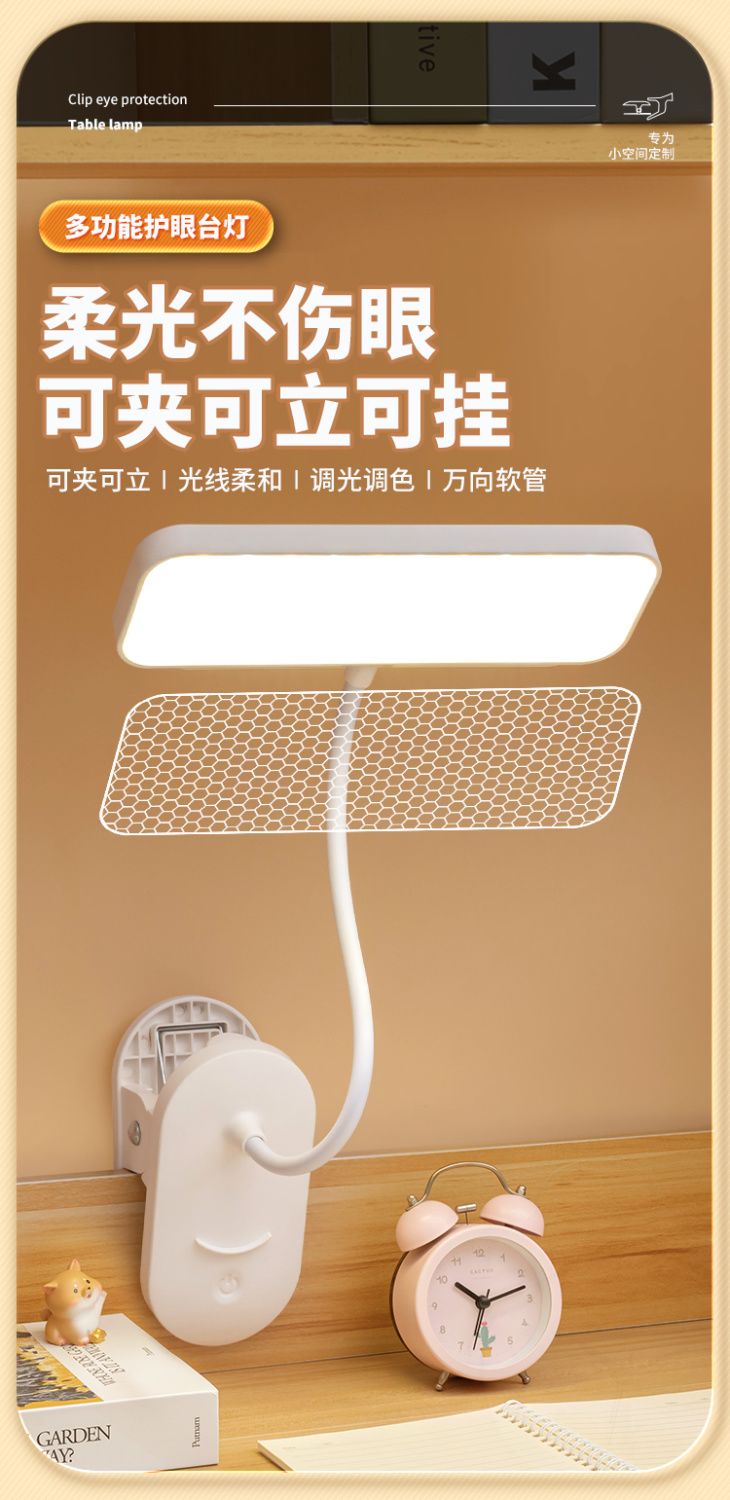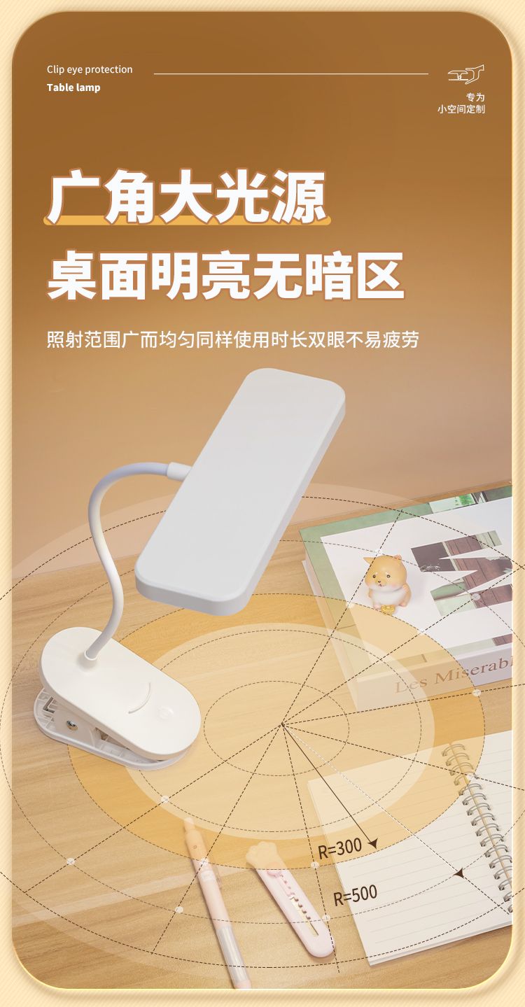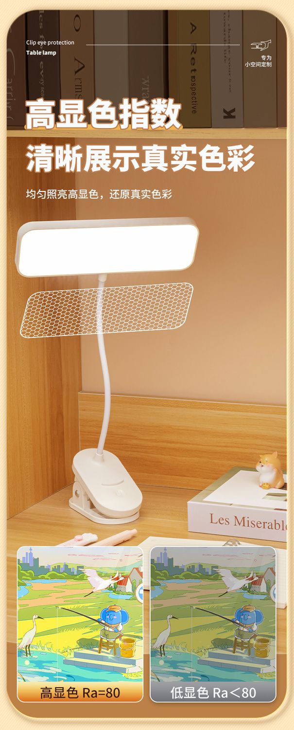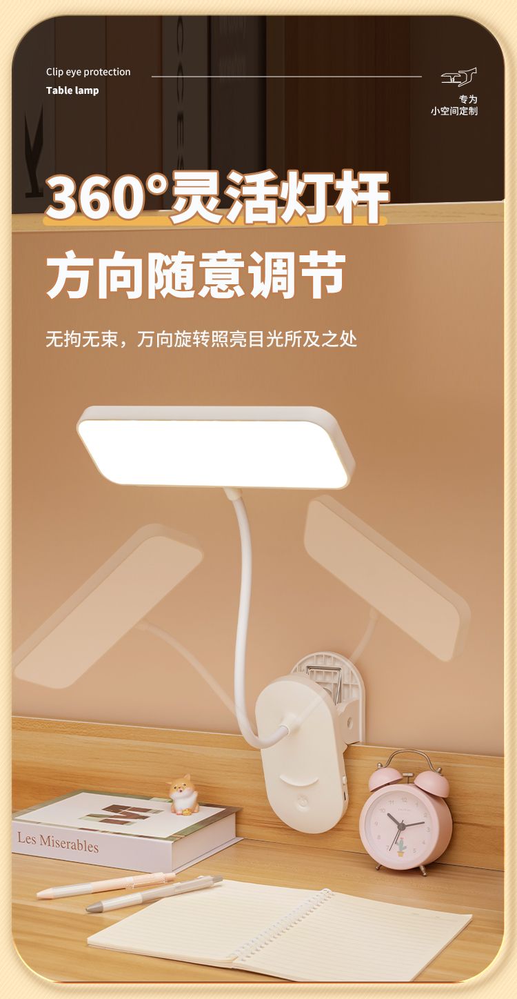 恒保亮夹子LED台灯护眼学习灯充电插电学生宿舍灯卧室床头小夜灯
