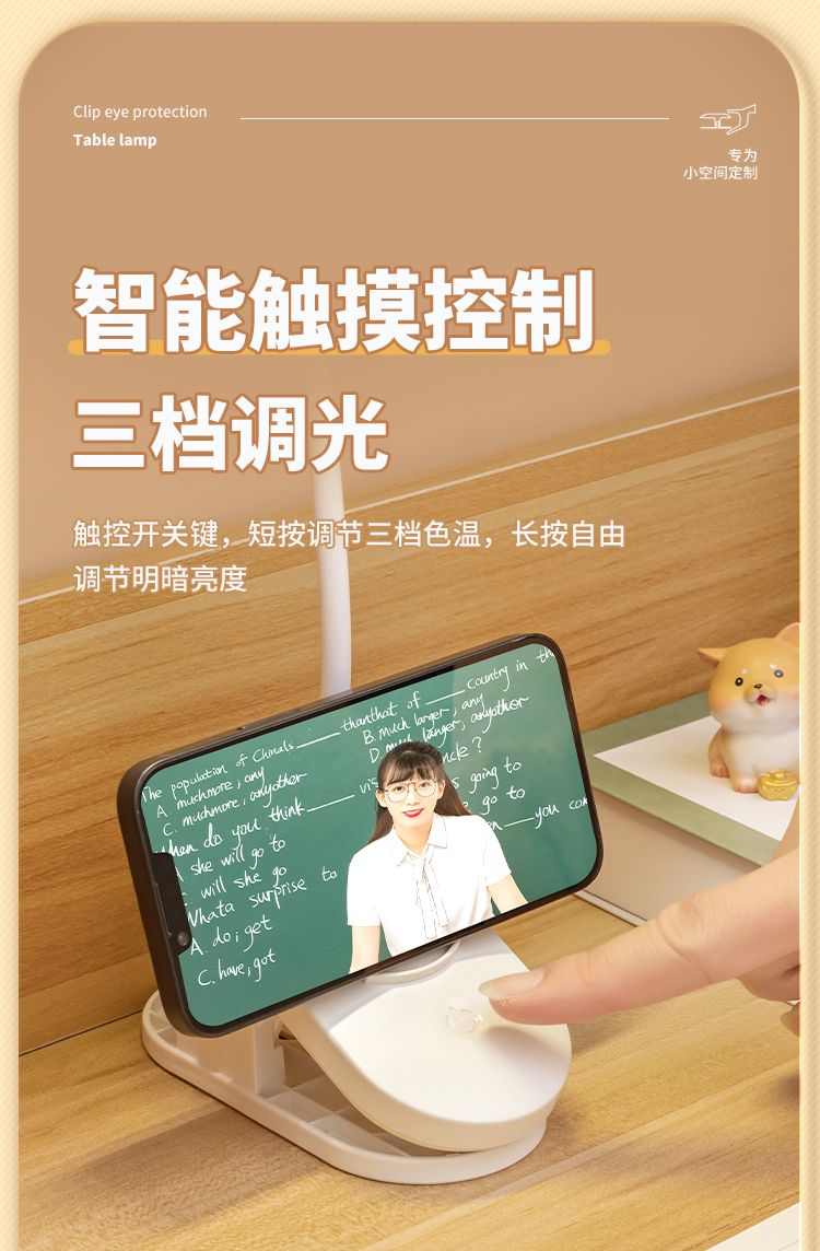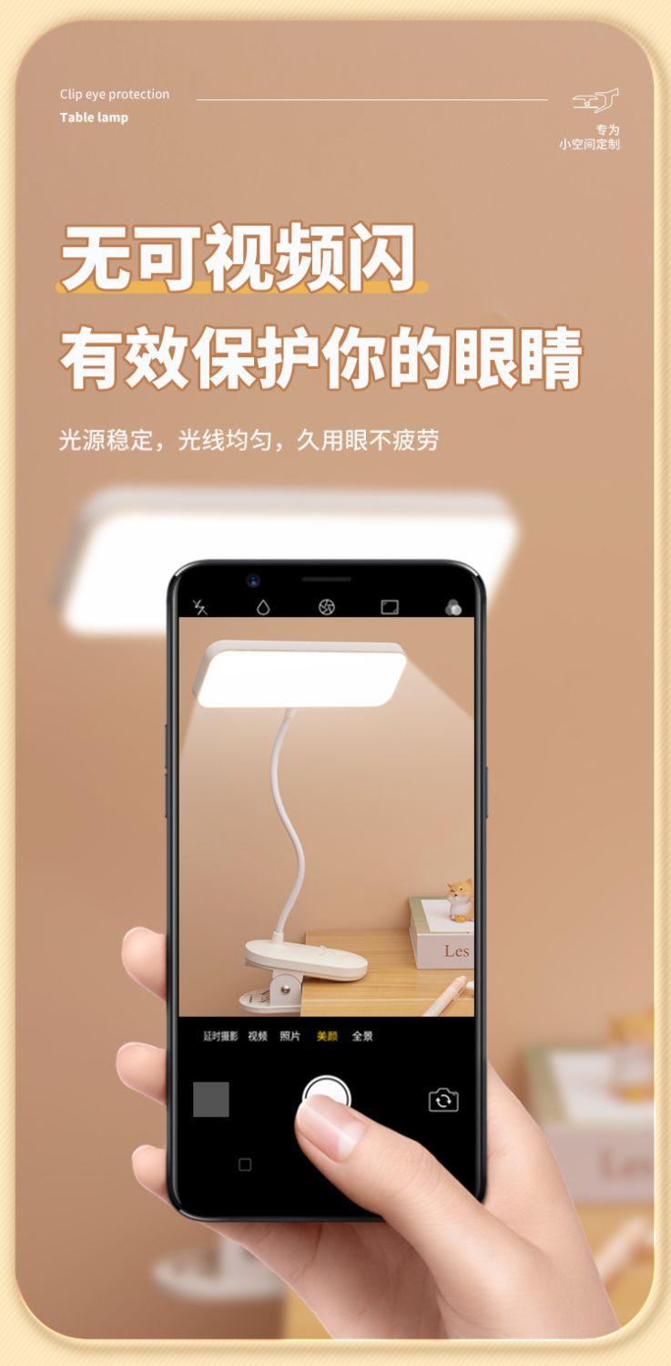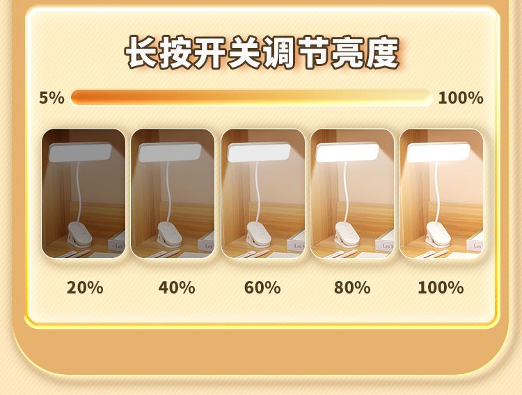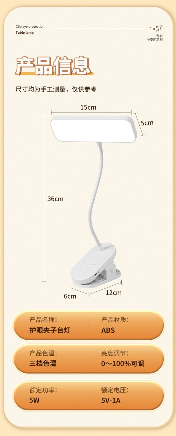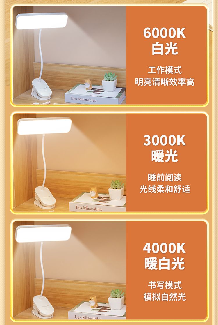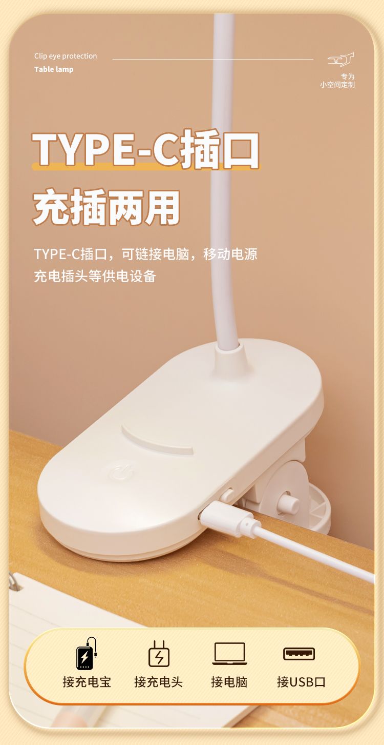 恒保亮夹子LED台灯护眼学习灯充电插电学生宿舍灯卧室床头小夜灯