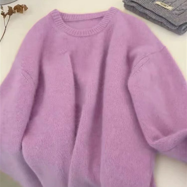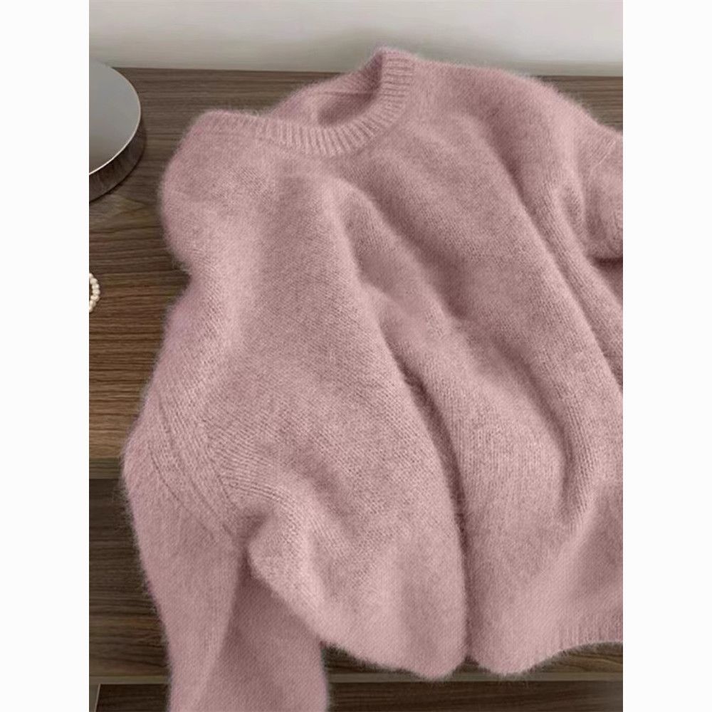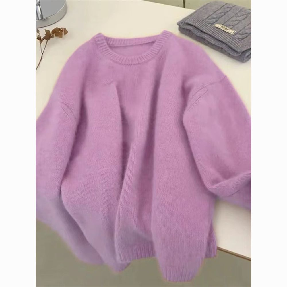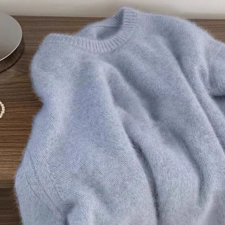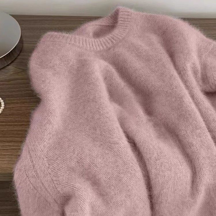 高级感软糯纯色百搭圆领毛衣女冬季厚慵懒风奶fufu内搭针织衫上衣