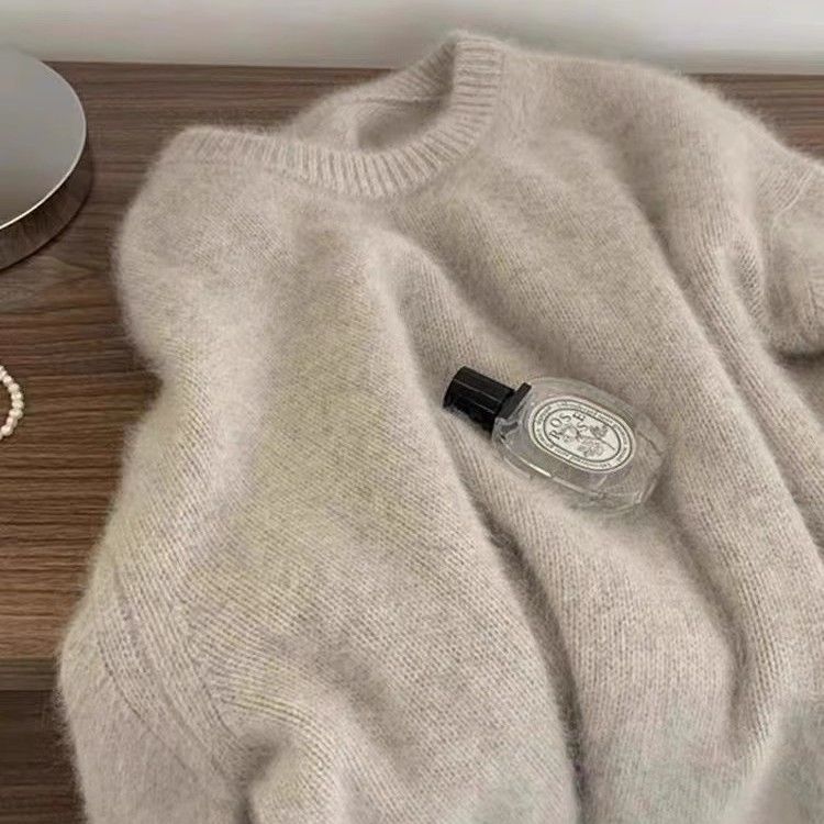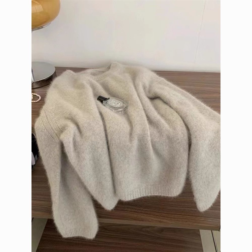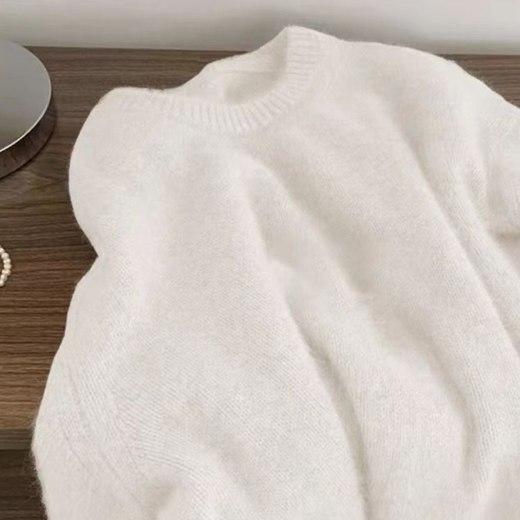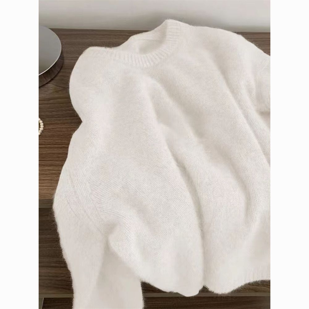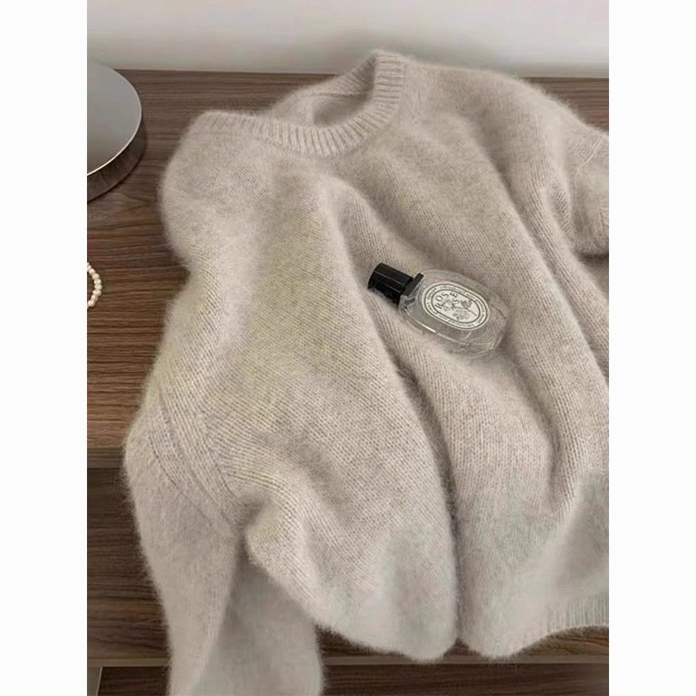 高级感软糯纯色百搭圆领毛衣女冬季厚慵懒风奶fufu内搭针织衫上衣