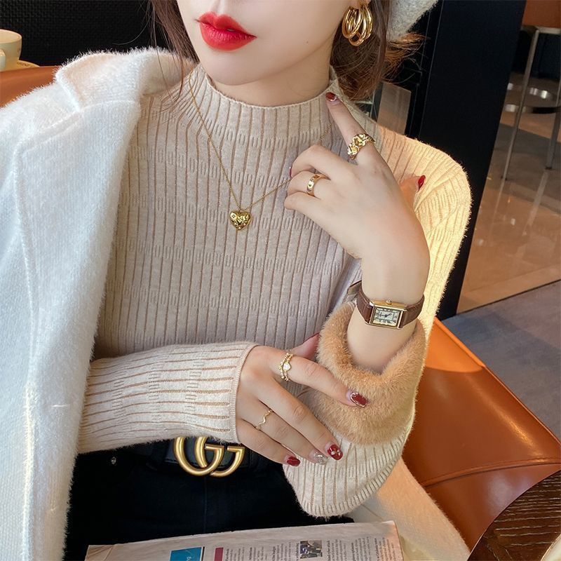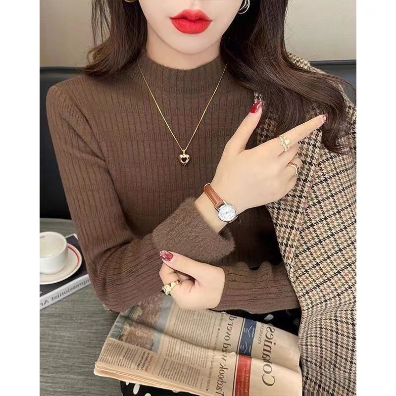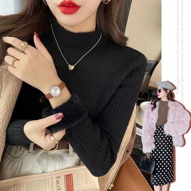 MCURU新品仿一体绒半高领毛衣冬季打底加厚保暖长袖