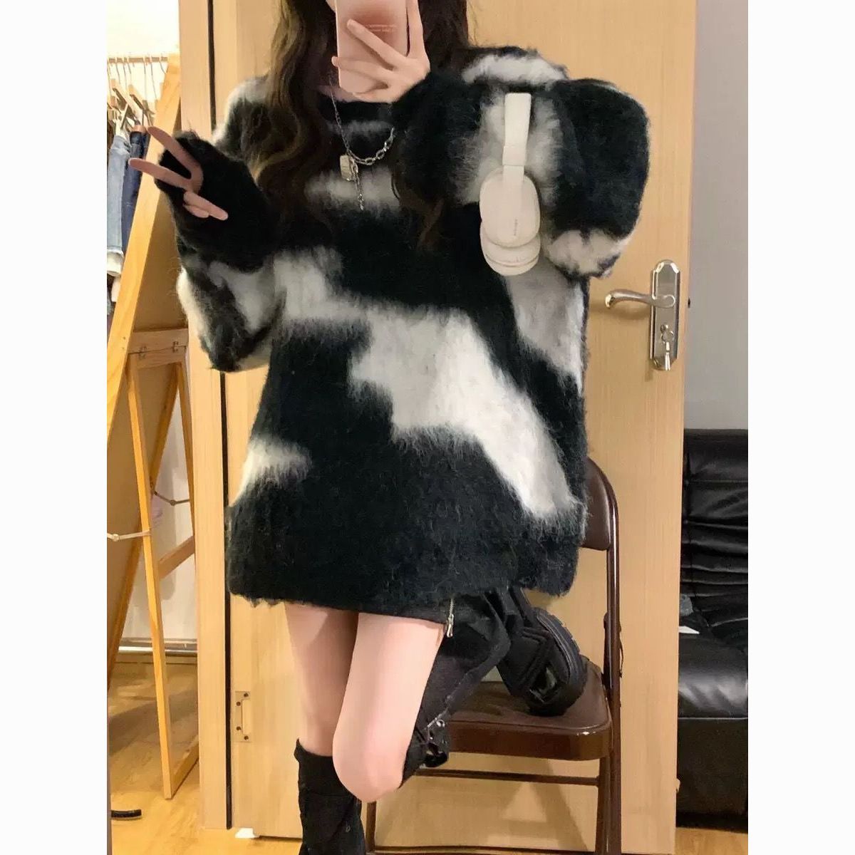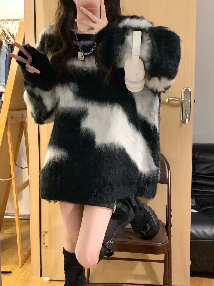 慵懒风毛衣女秋冬季新款设计感小众撞色超好看软糯百搭针织衫上衣