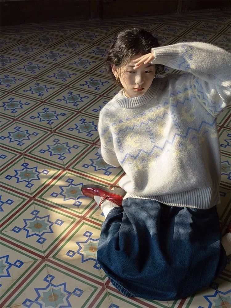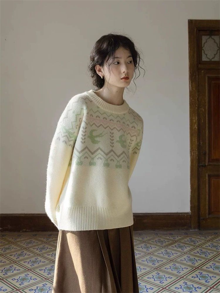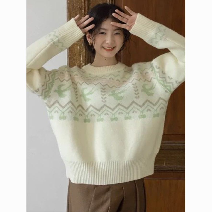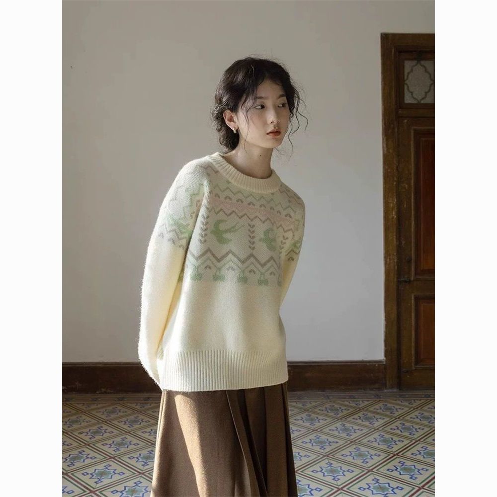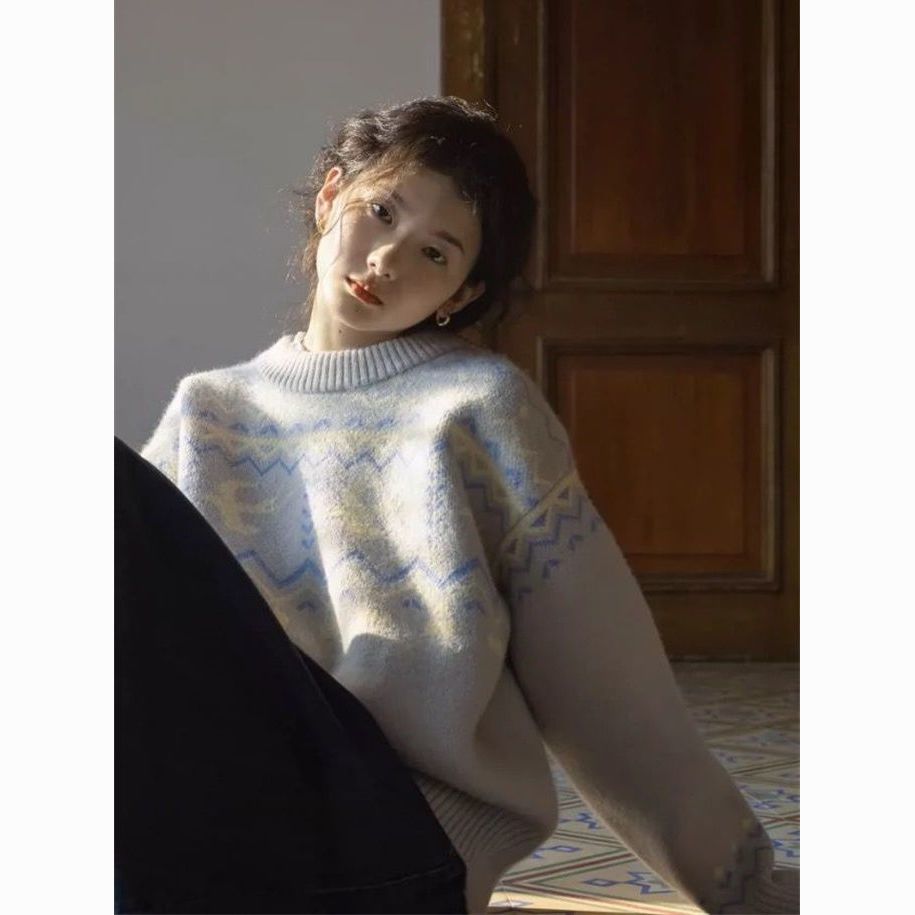 佰加壹法式复古宽松慵懒提花费尔岛毛衣女秋冬浣熊绒针织衫上衣厚