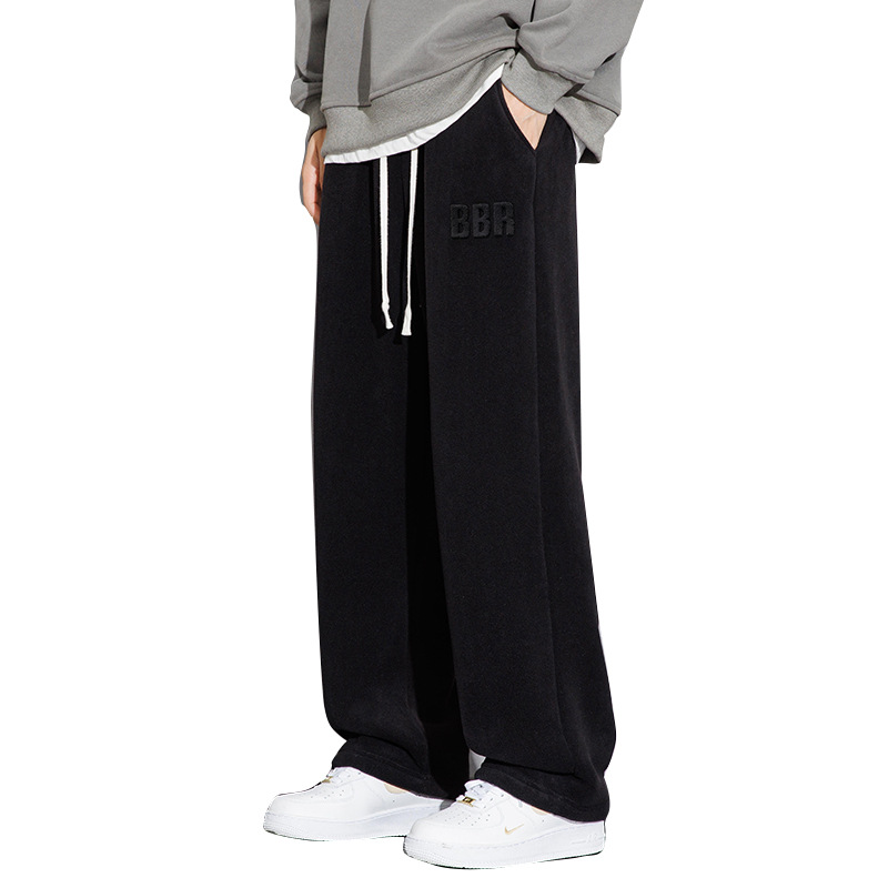 秋冬新款男士休闲裤加绒加厚卫裤羊羔绒直筒卫裤宽松百搭保暖棉裤