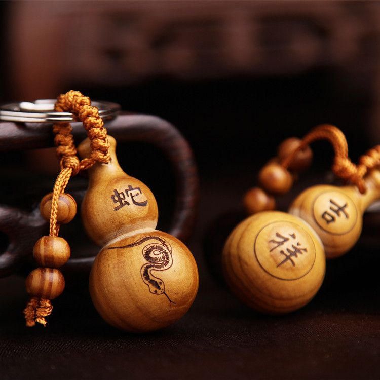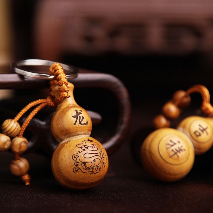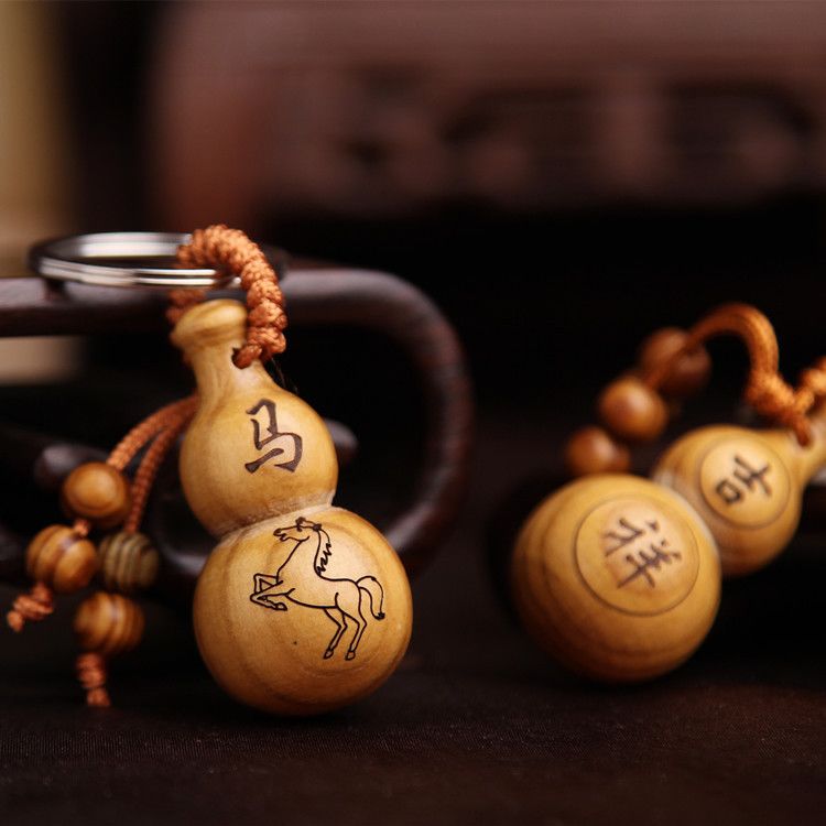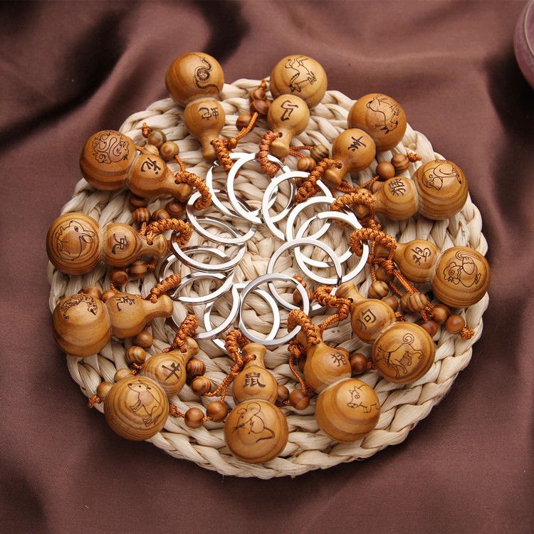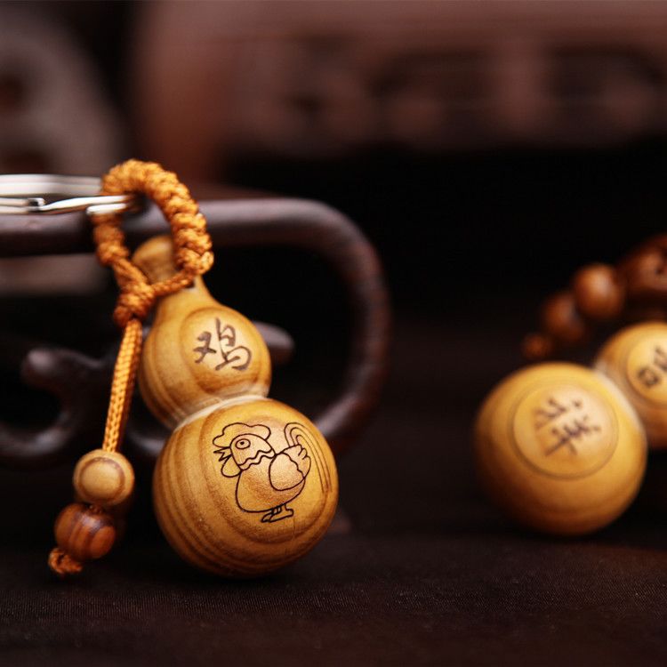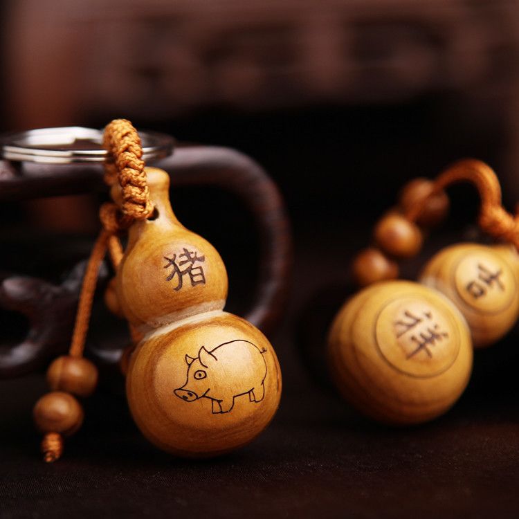 桃木葫芦钥匙扣生肖祝福语挂饰礼品十二生肖桃木挂件