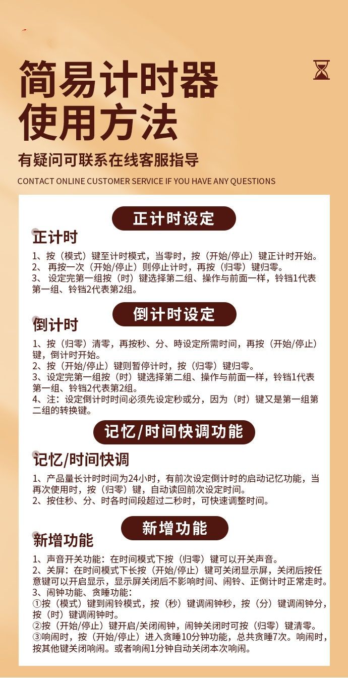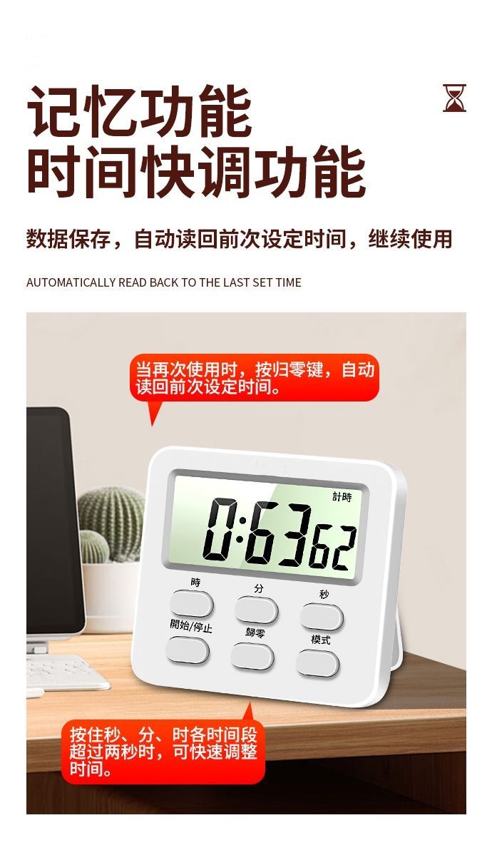 | 升级多功能款(正倒计时+闹钟+时钟+记忆) | USD $1.47 | 99999 piece available |