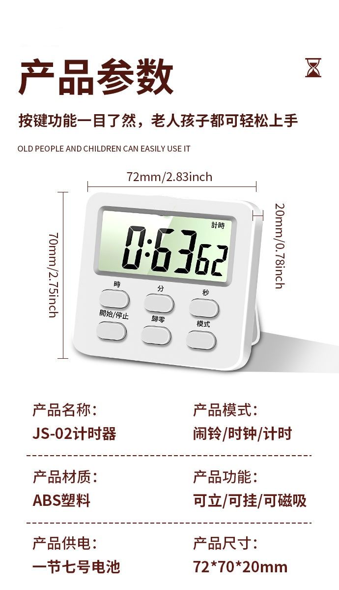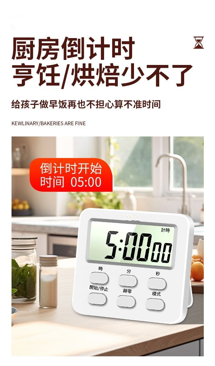 新款电子定时器计时器提醒器学生倒计时器电子闹钟秒表钟磁吸商用