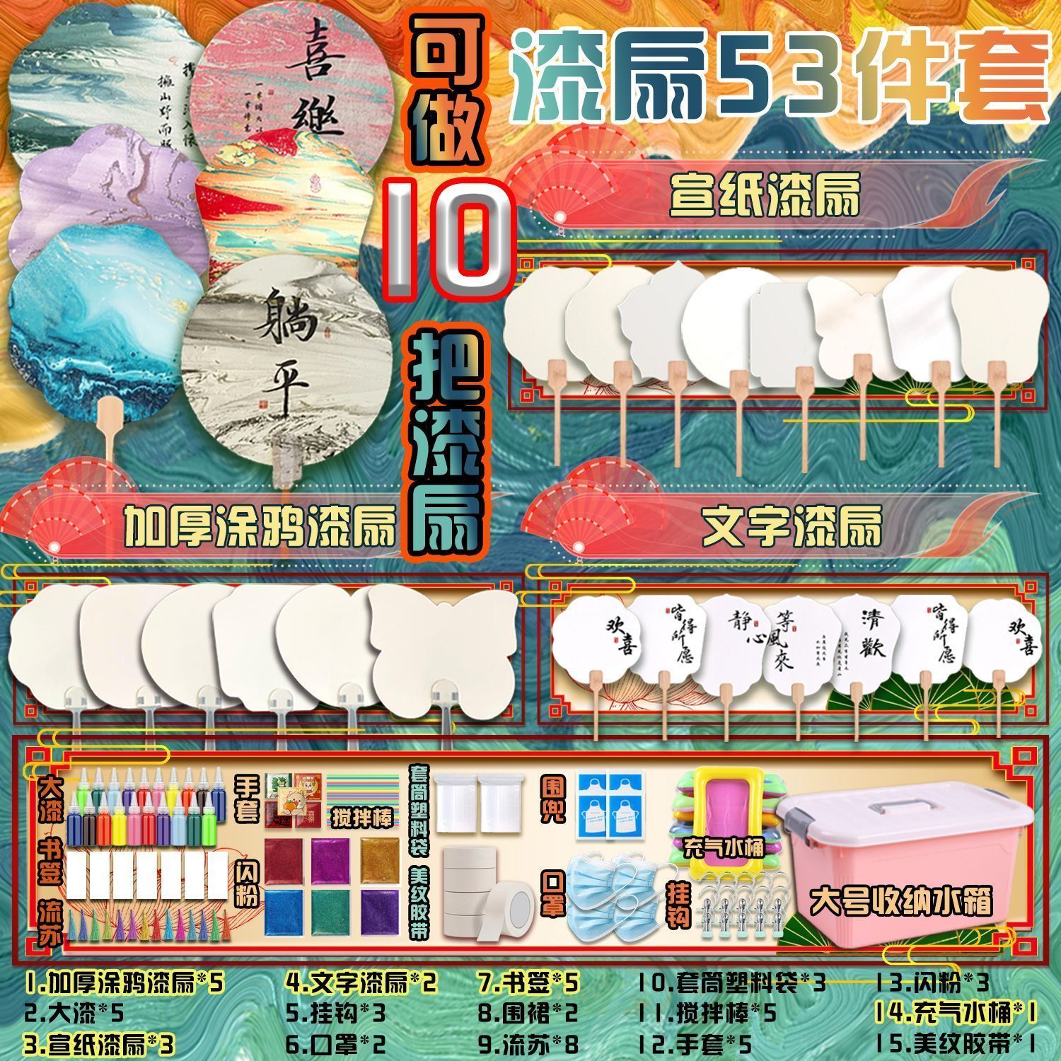抖音漂漆套装全套非遗漆扇专用材料包diγ颜料扎染团扇手工宣纸扇