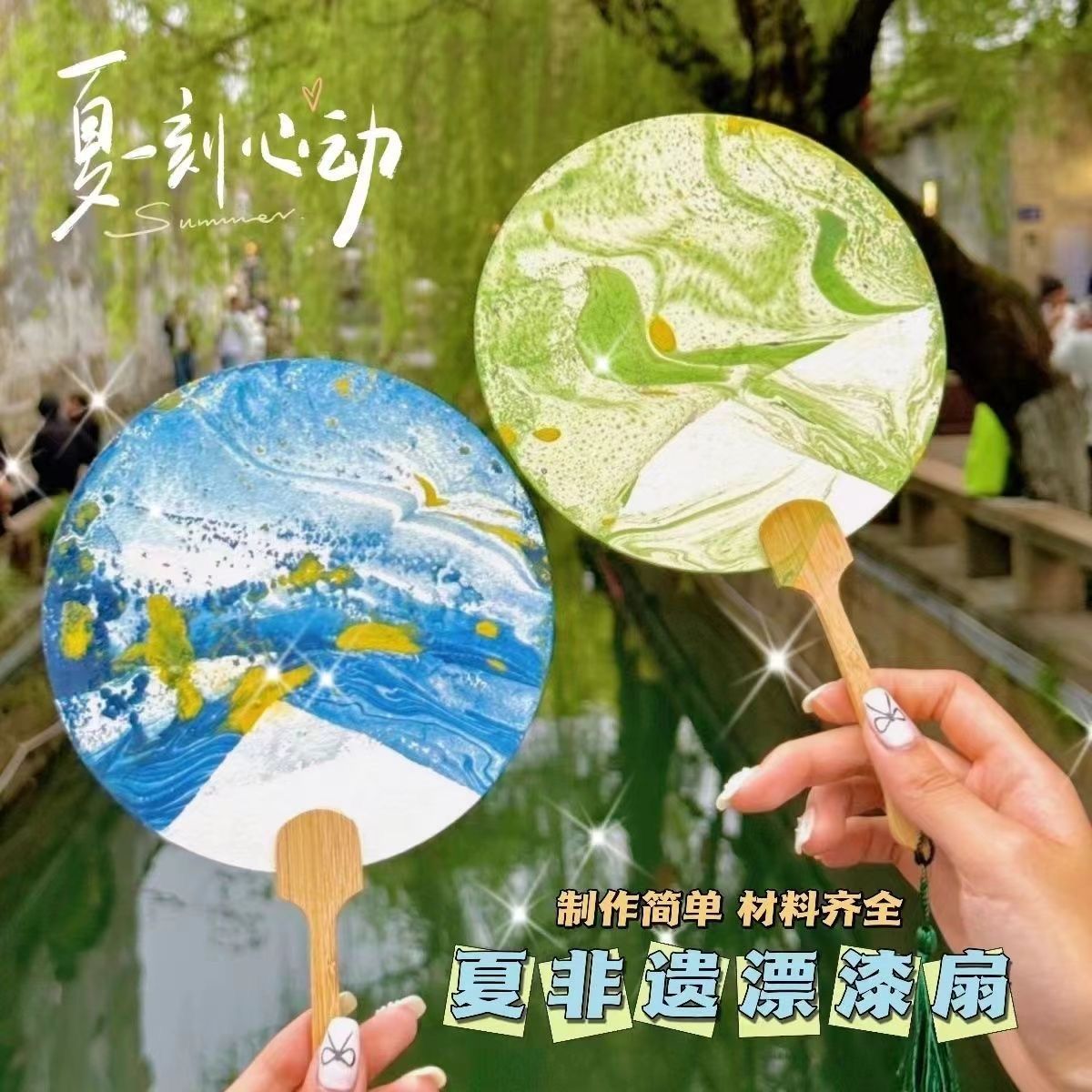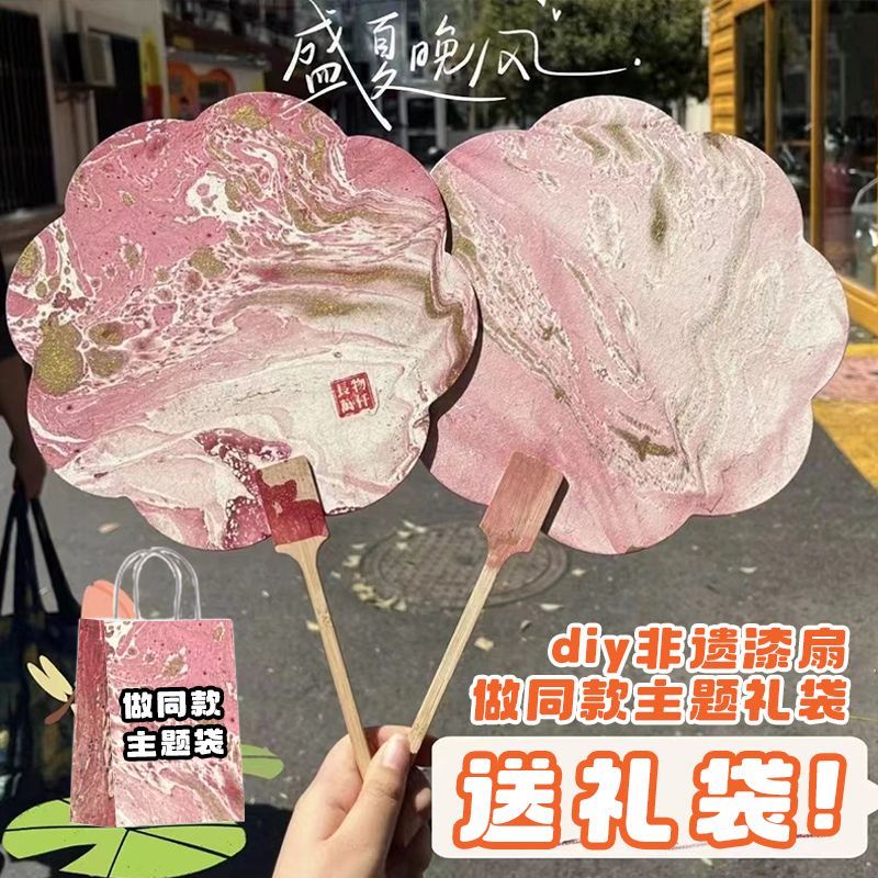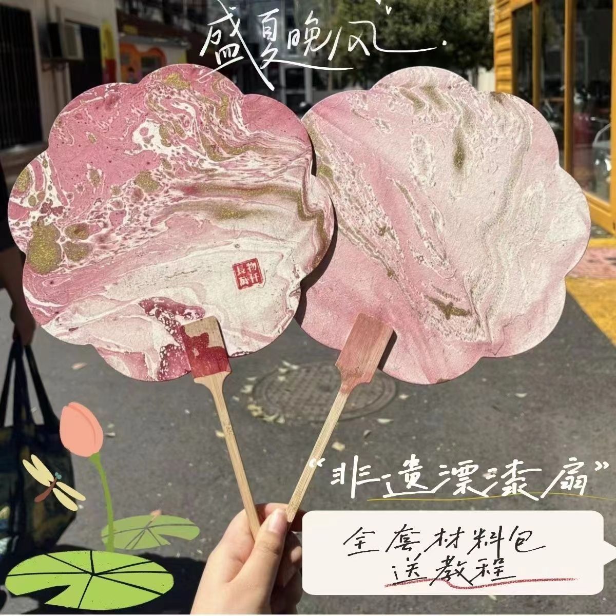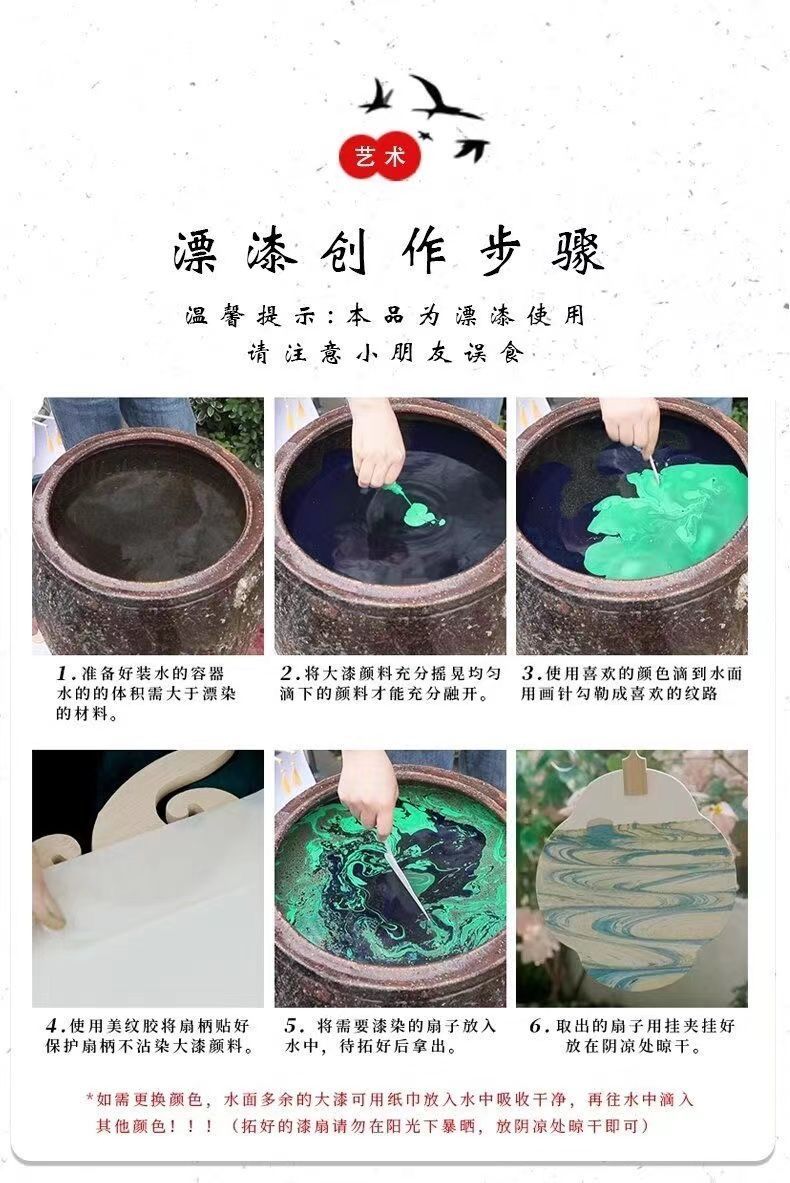 飘漆团扇颜料套装牛皮袋非遗漆扇材料包大漆扇子水拓飘漆空白团扇
