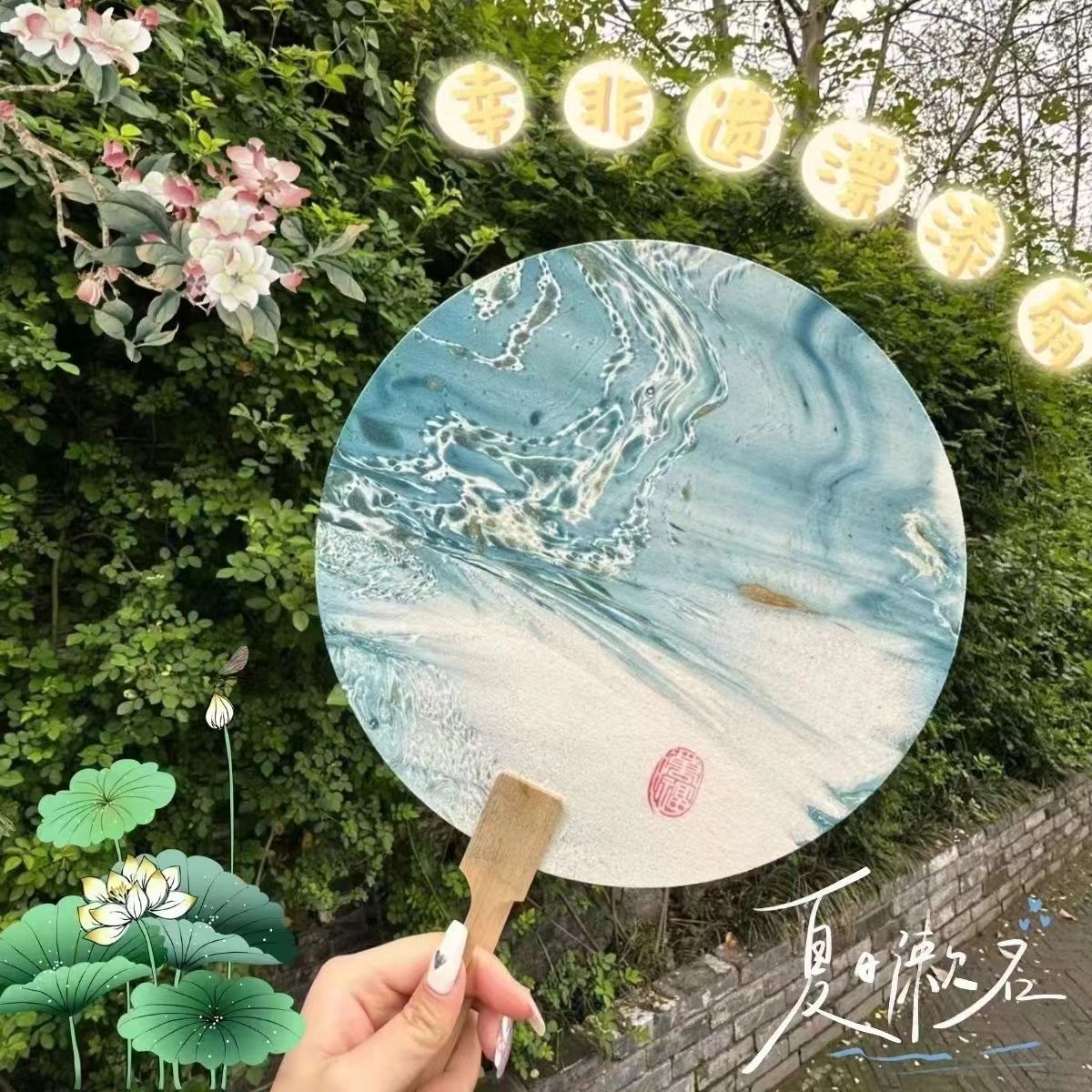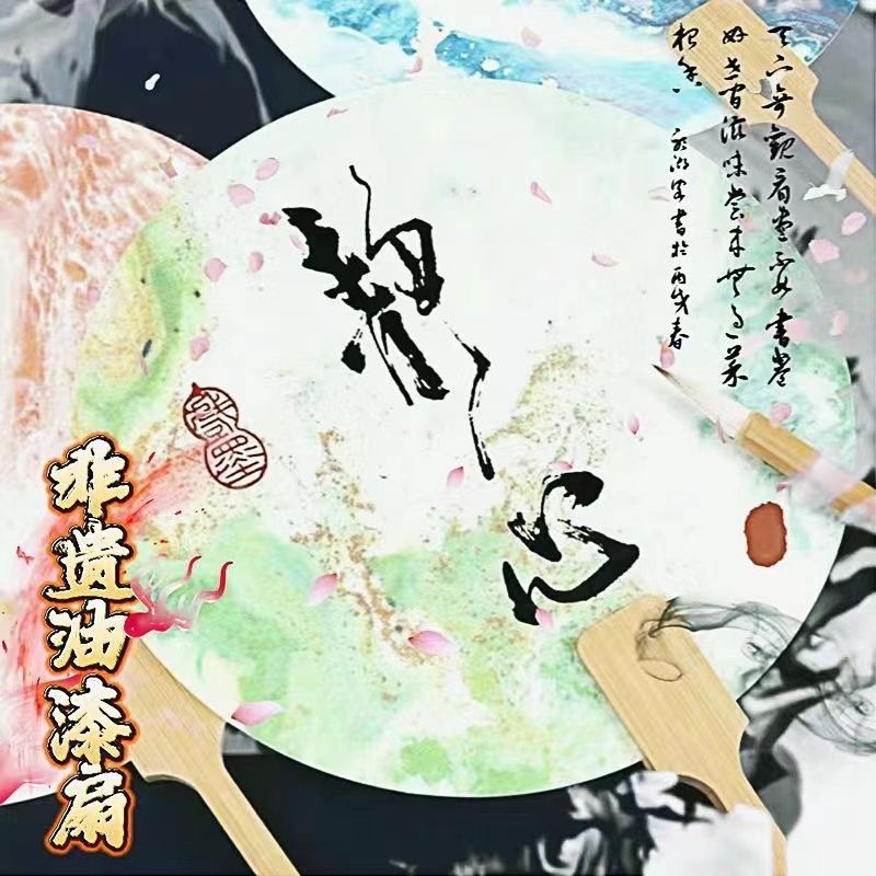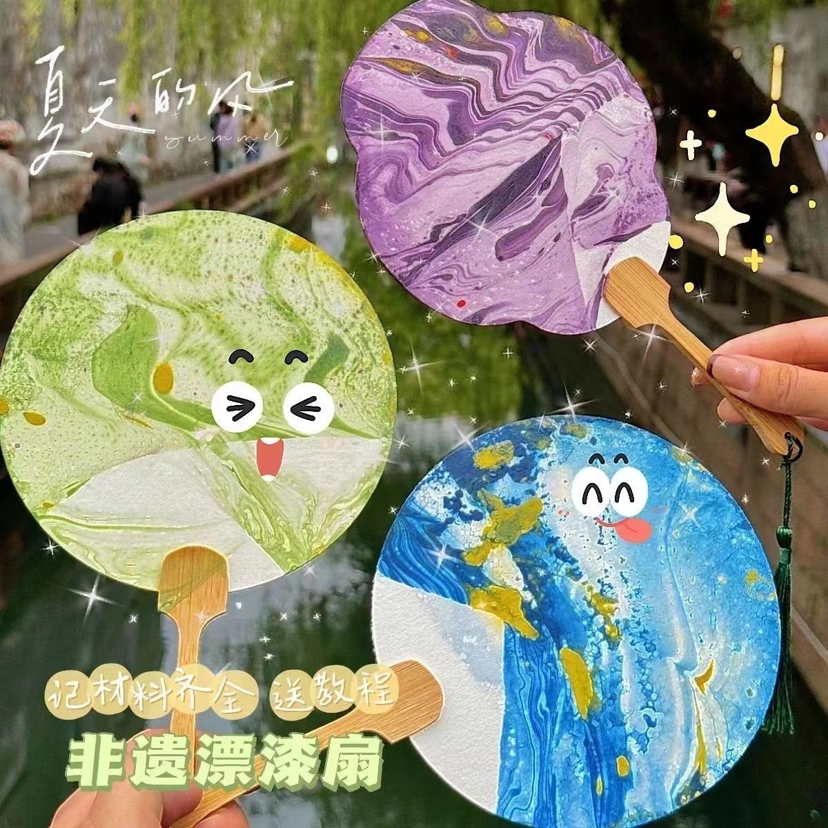 飘漆团扇颜料套装牛皮袋非遗漆扇材料包大漆扇子水拓飘漆空白团扇