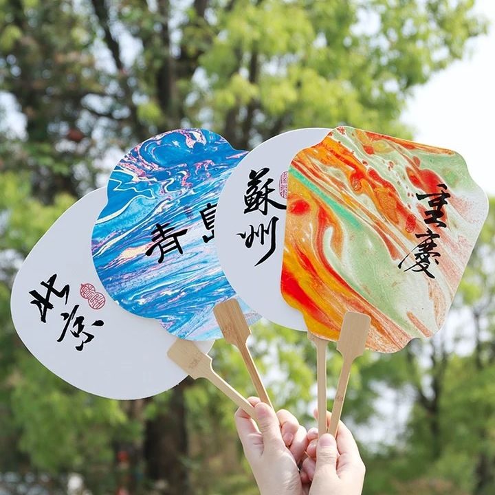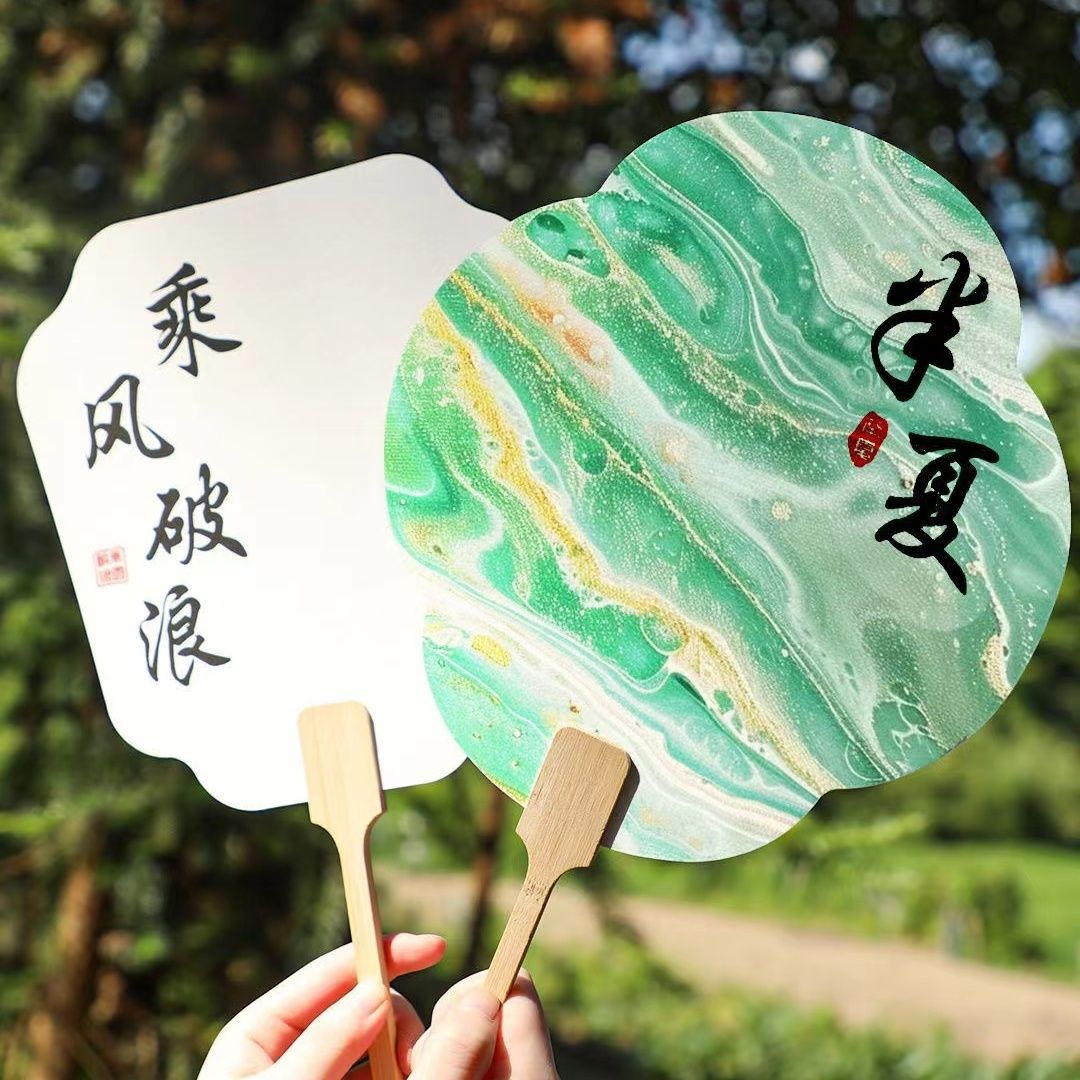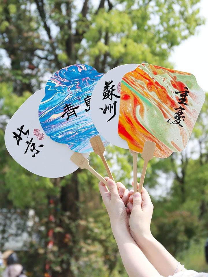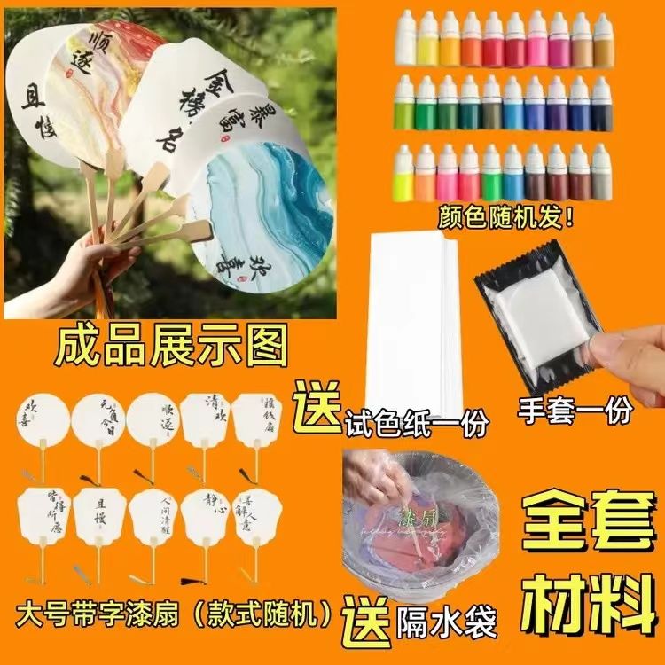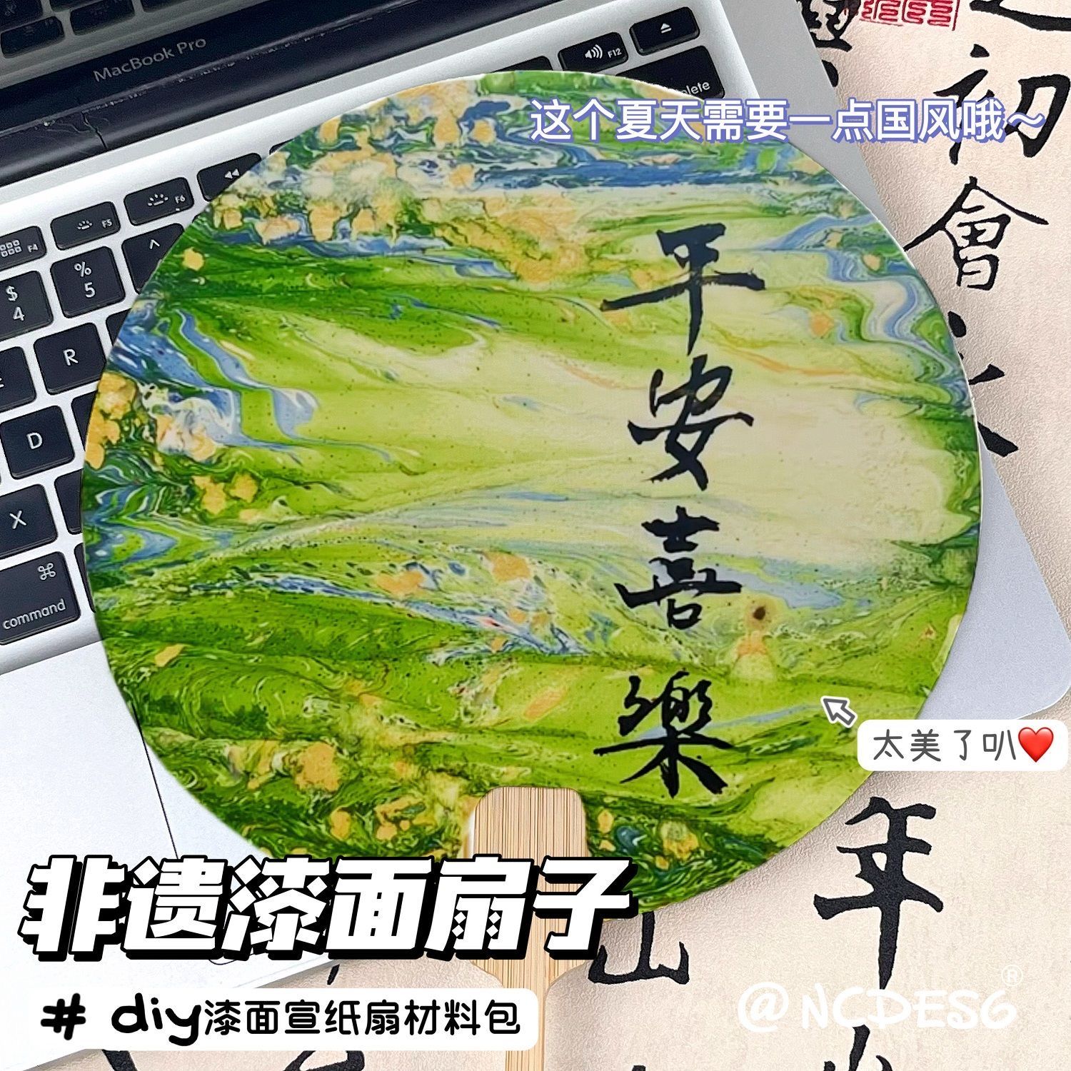 带字漆扇漂漆团扇非遗文创PVC扇子摆摊亲子团建水拓大漆套装批发
