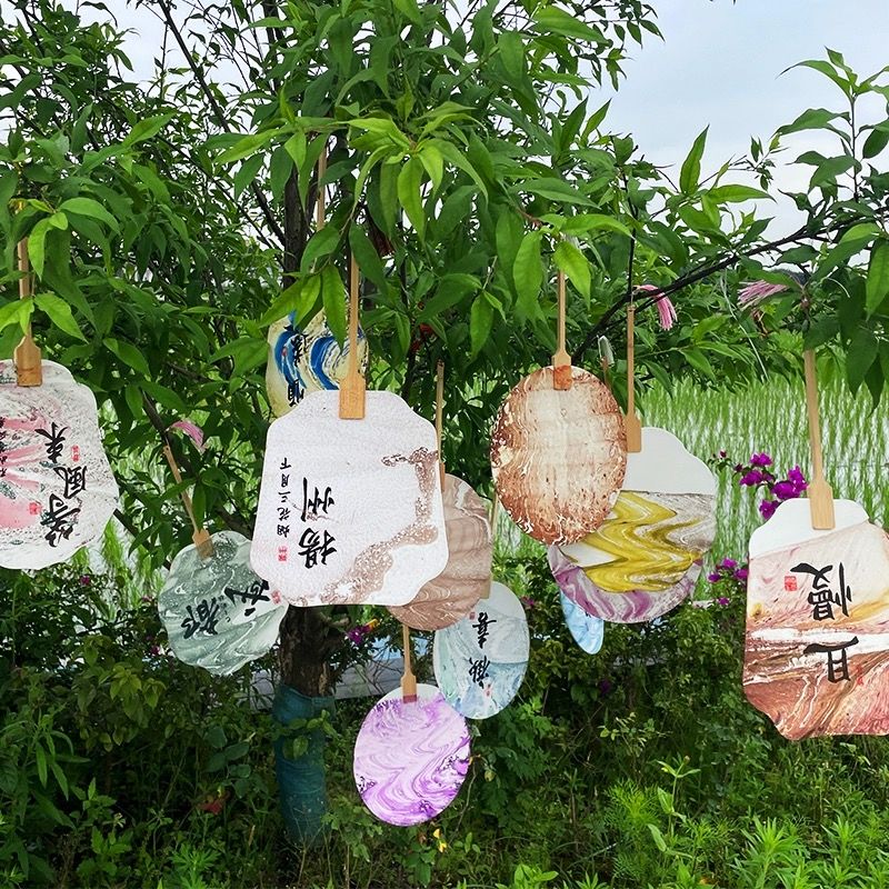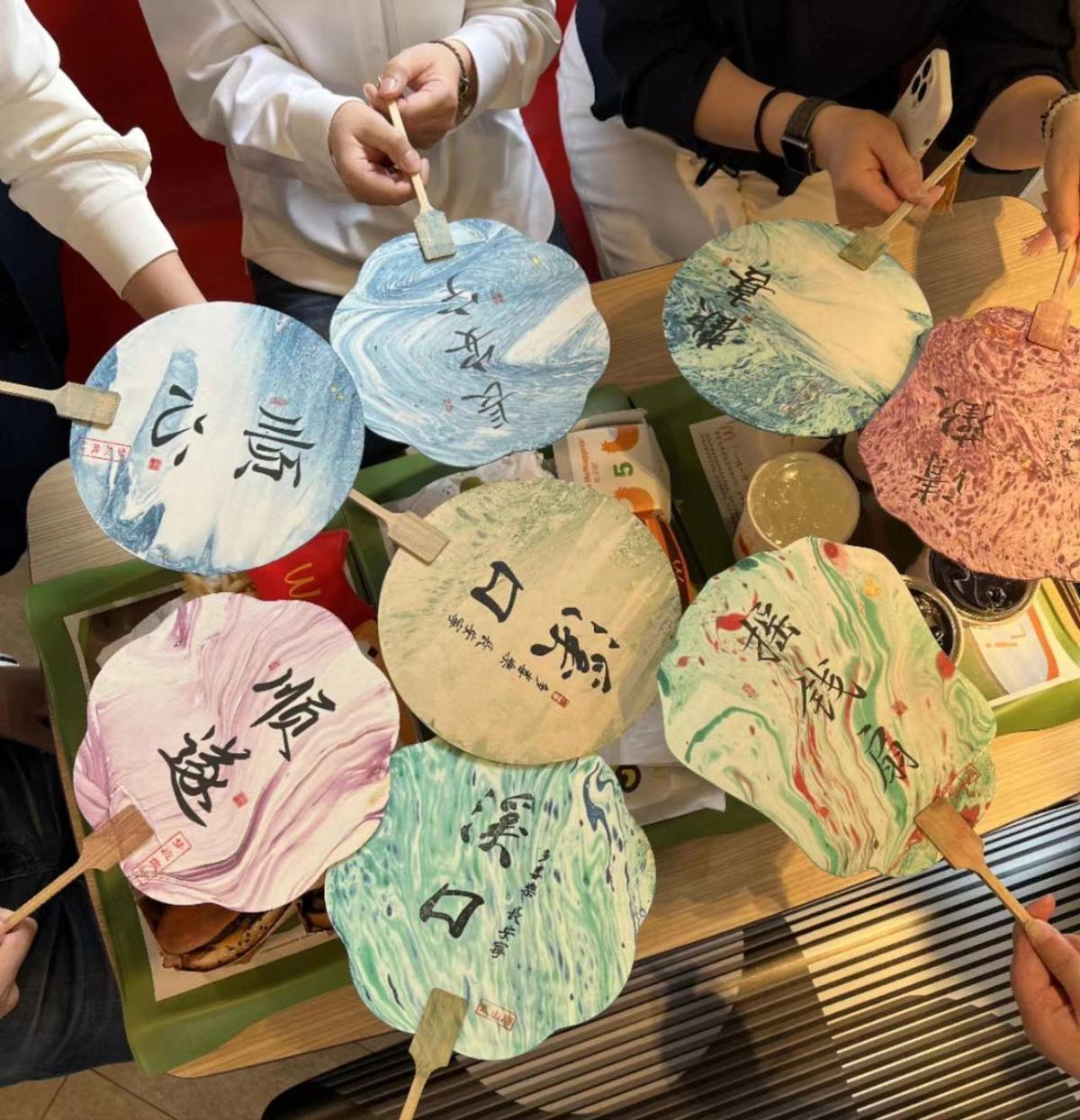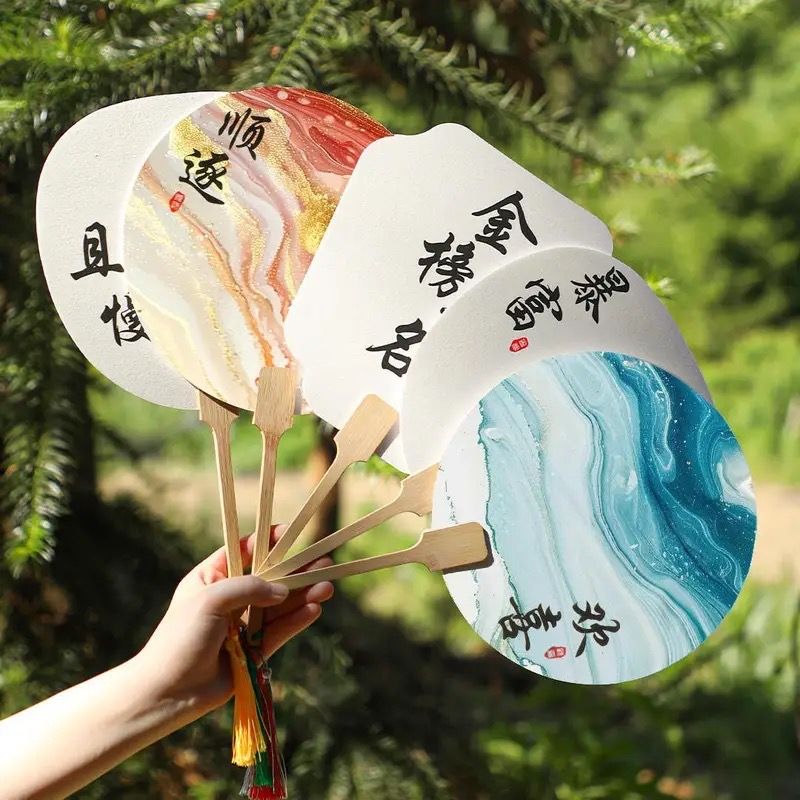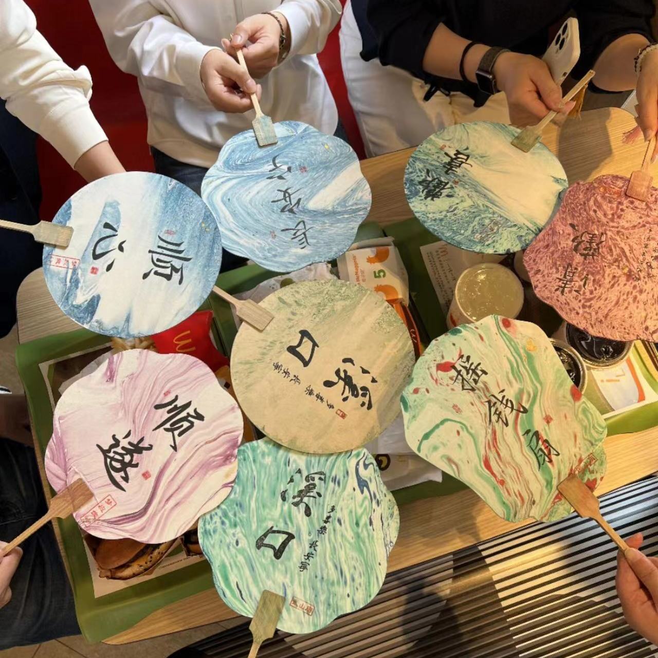 带字漆扇漂漆团扇非遗文创PVC扇子摆摊亲子团建水拓大漆套装批发
