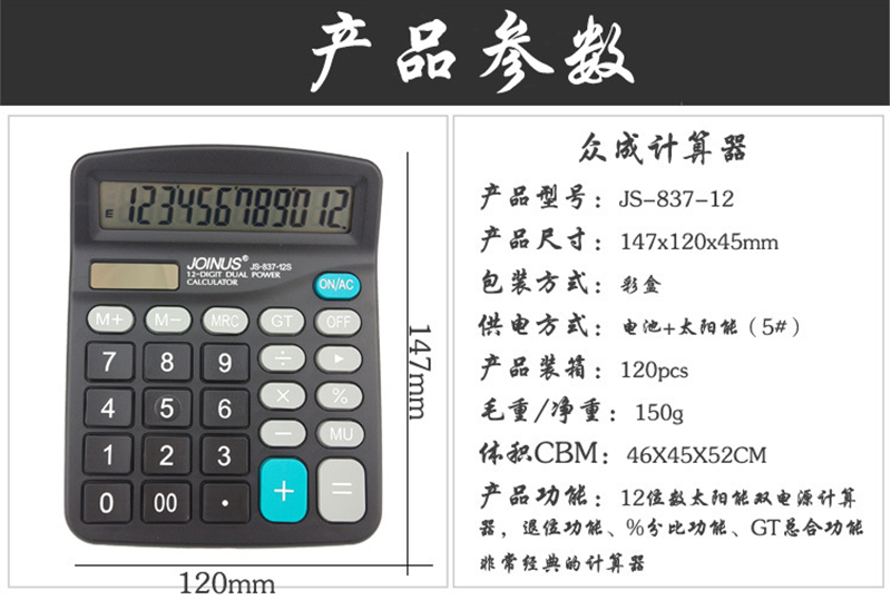 太阳能计算器商务型多功能型12位数大号带语音双电源办公会计专用