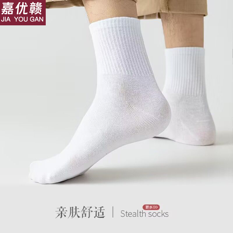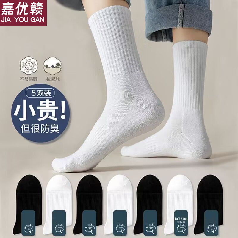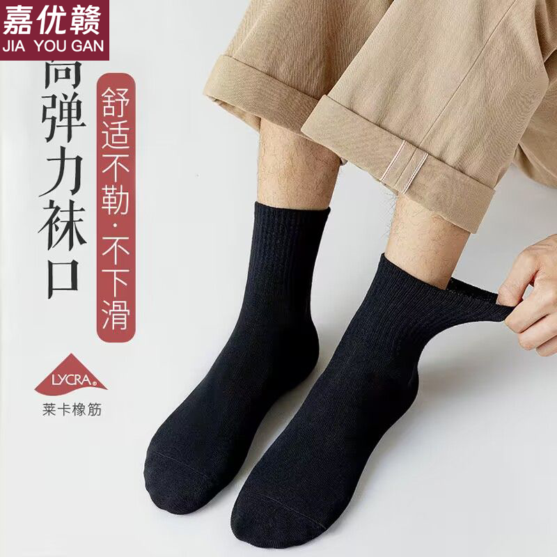 嘉优赣纯色袜子秋冬季吸汗防臭鲨鱼裤袜ins潮百搭纯棉夏季中筒袜