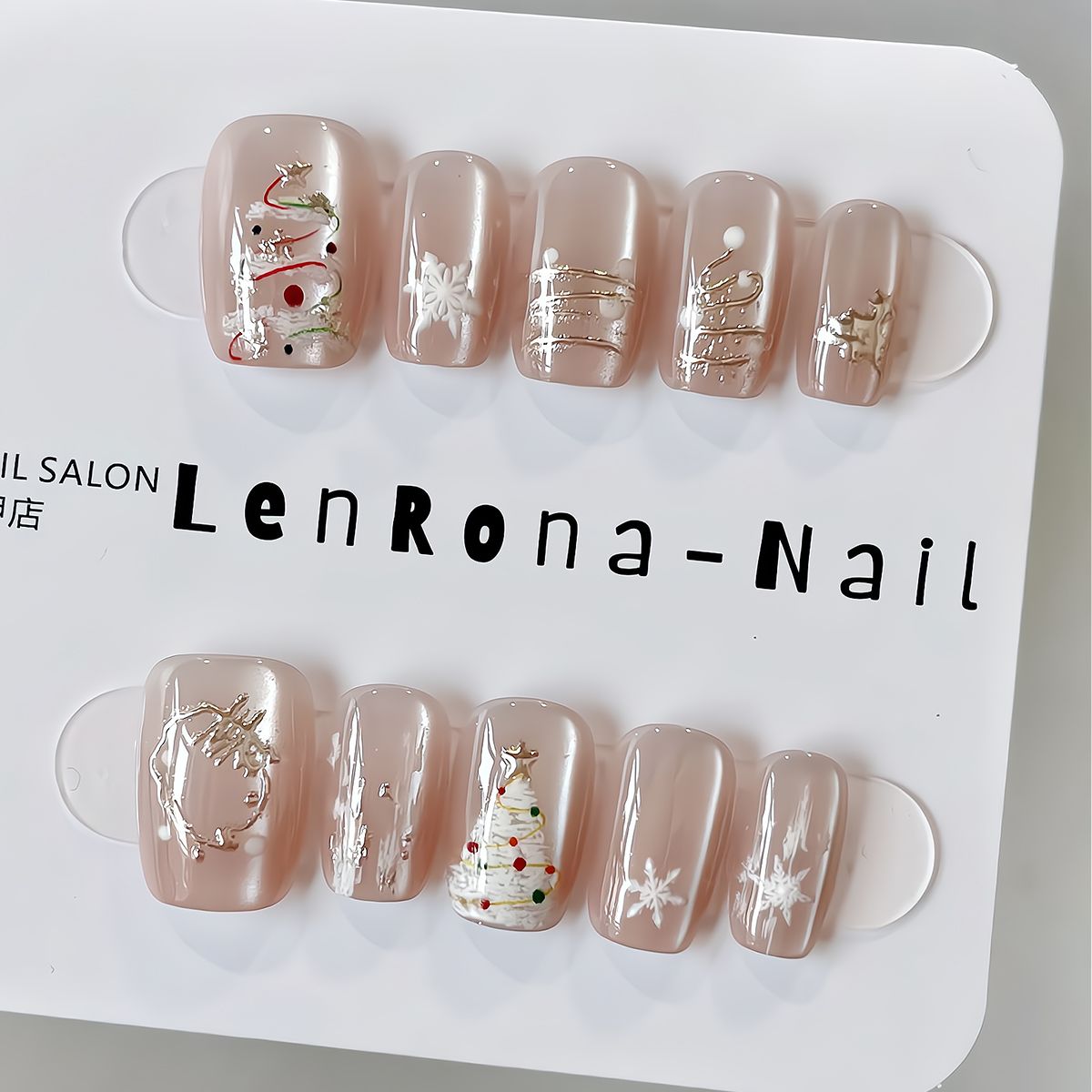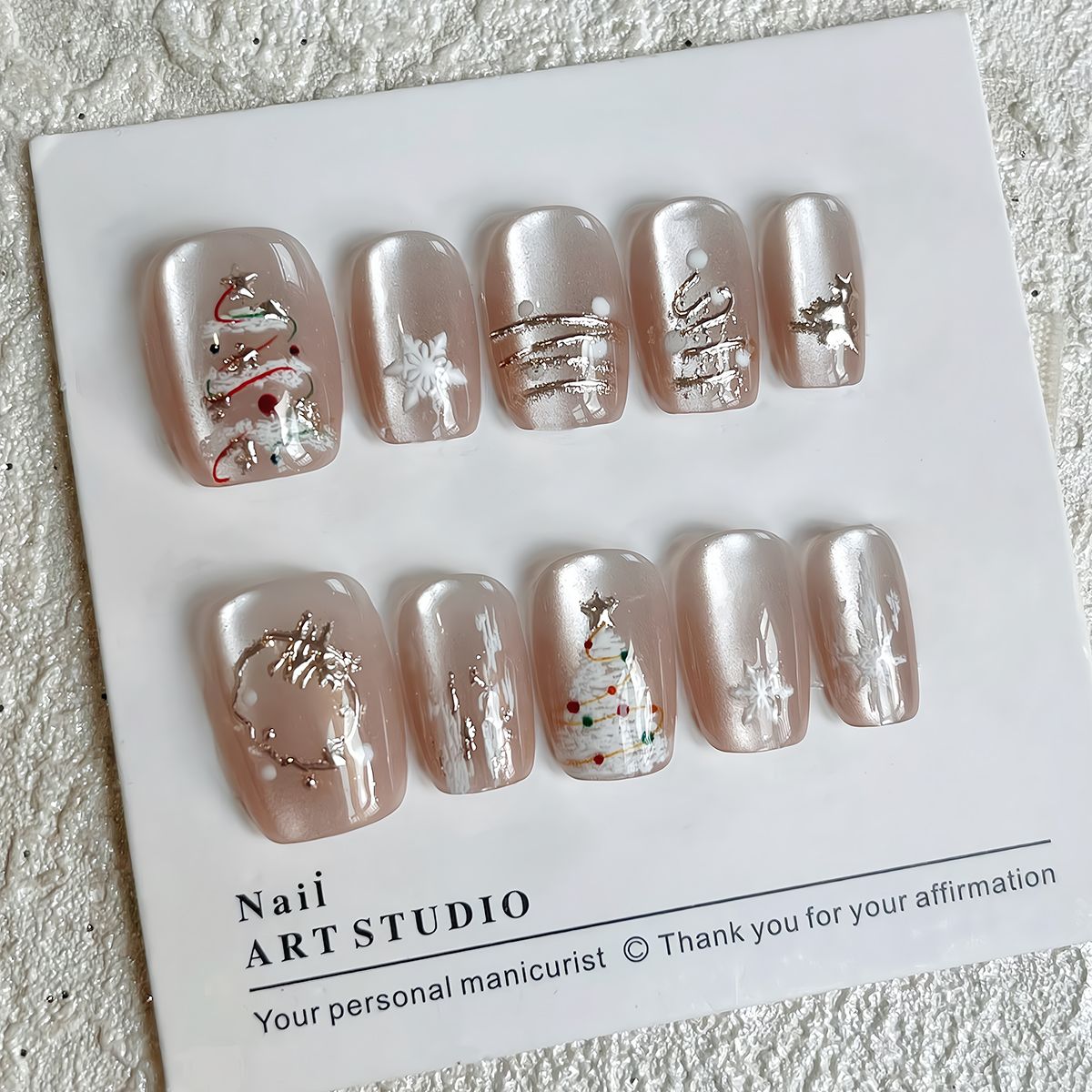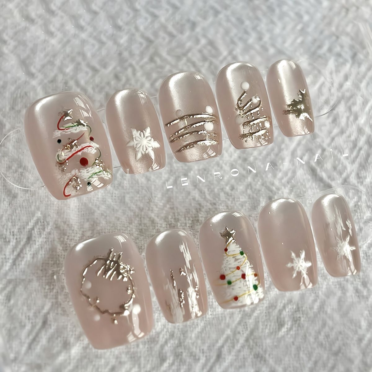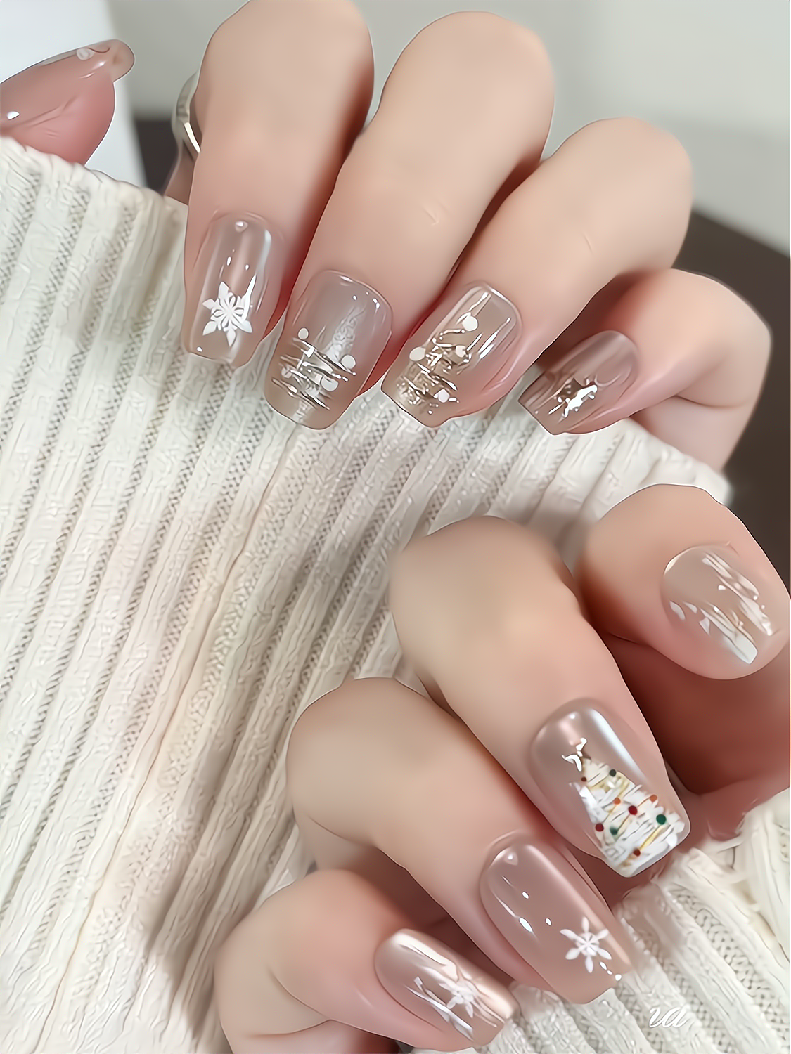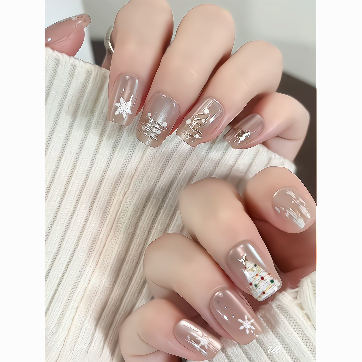 圣诞限定~秋冬纯手工穿戴甲ins圣诞节雪花猫眼温柔短款显白美甲贴