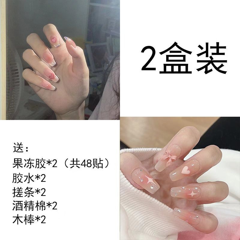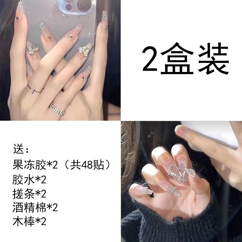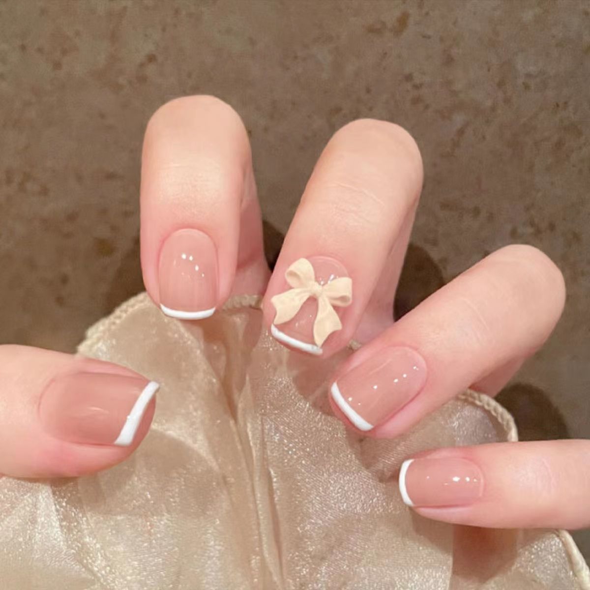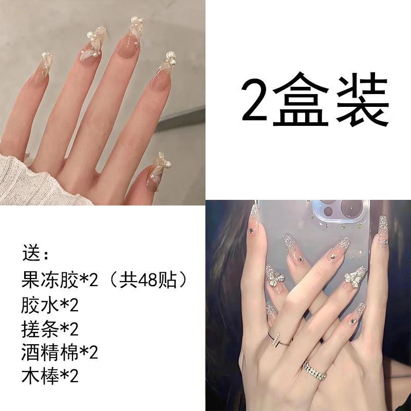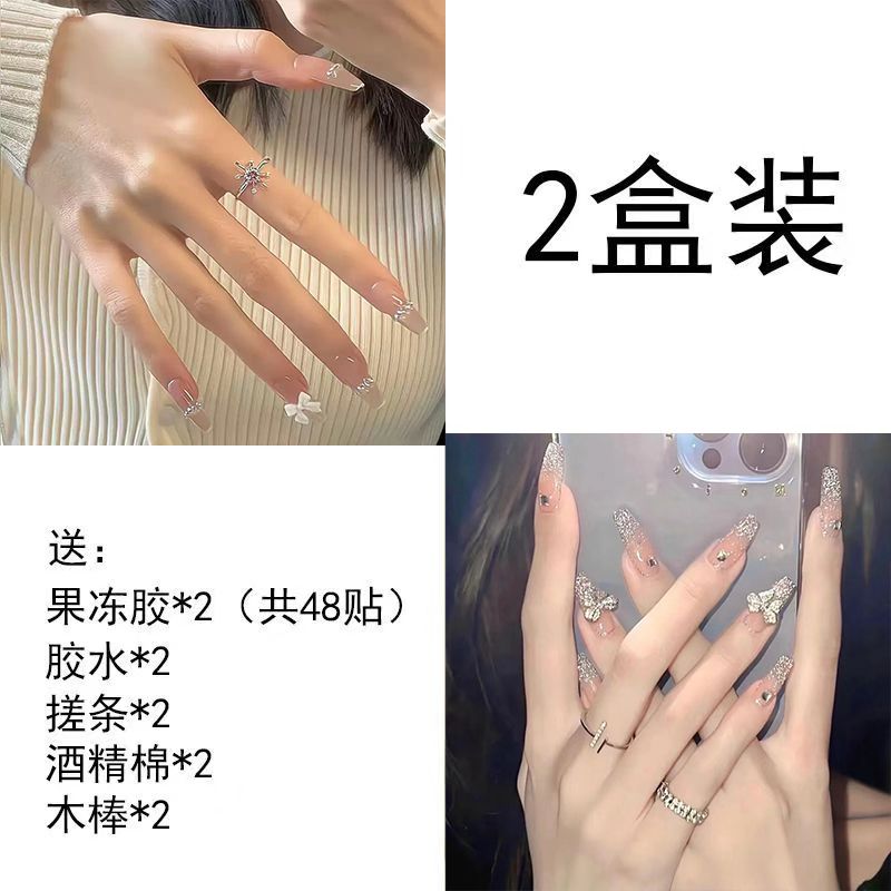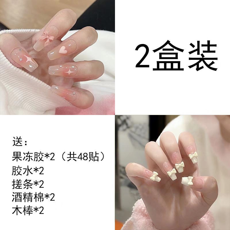 买一送一奶黄蝴蝶结美甲穿戴甲穿戴式美甲贴片手指甲贴中长款成品