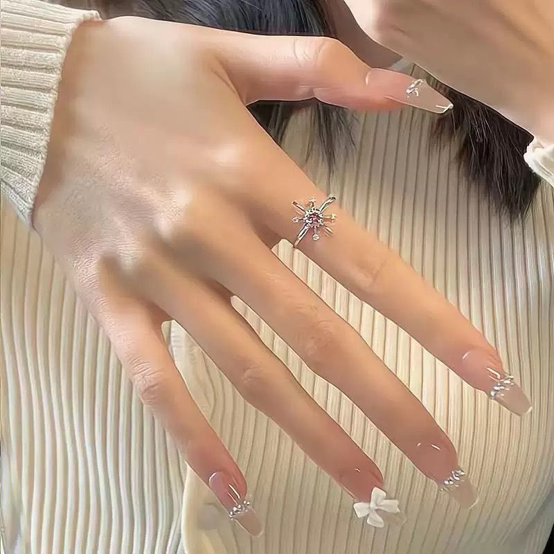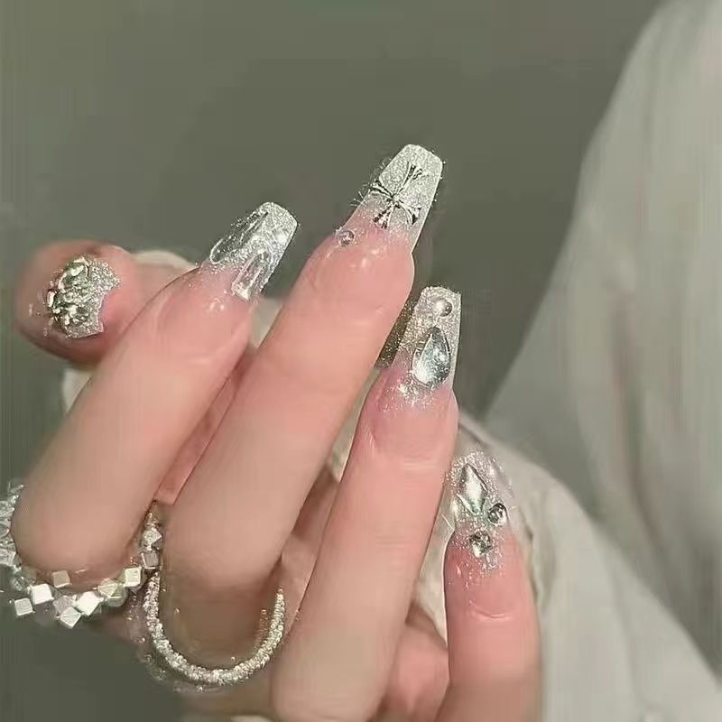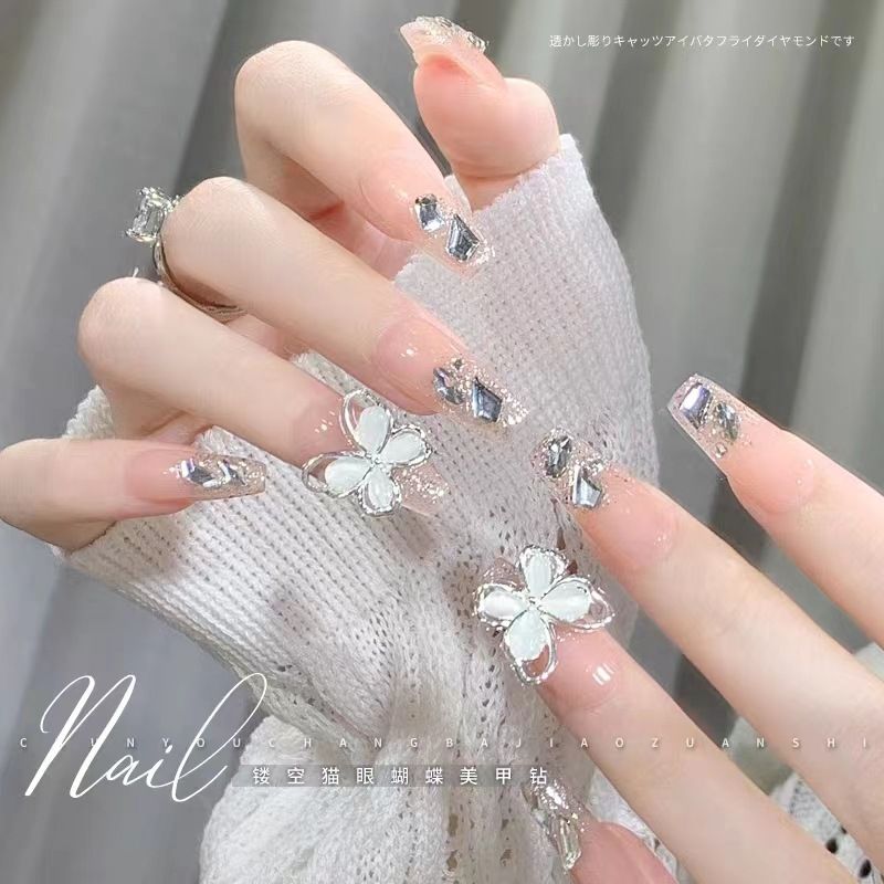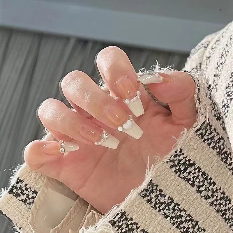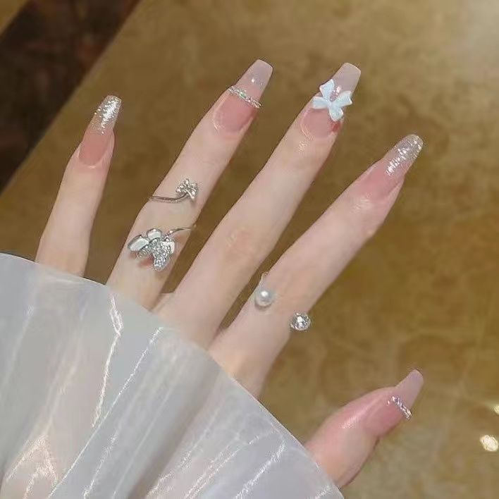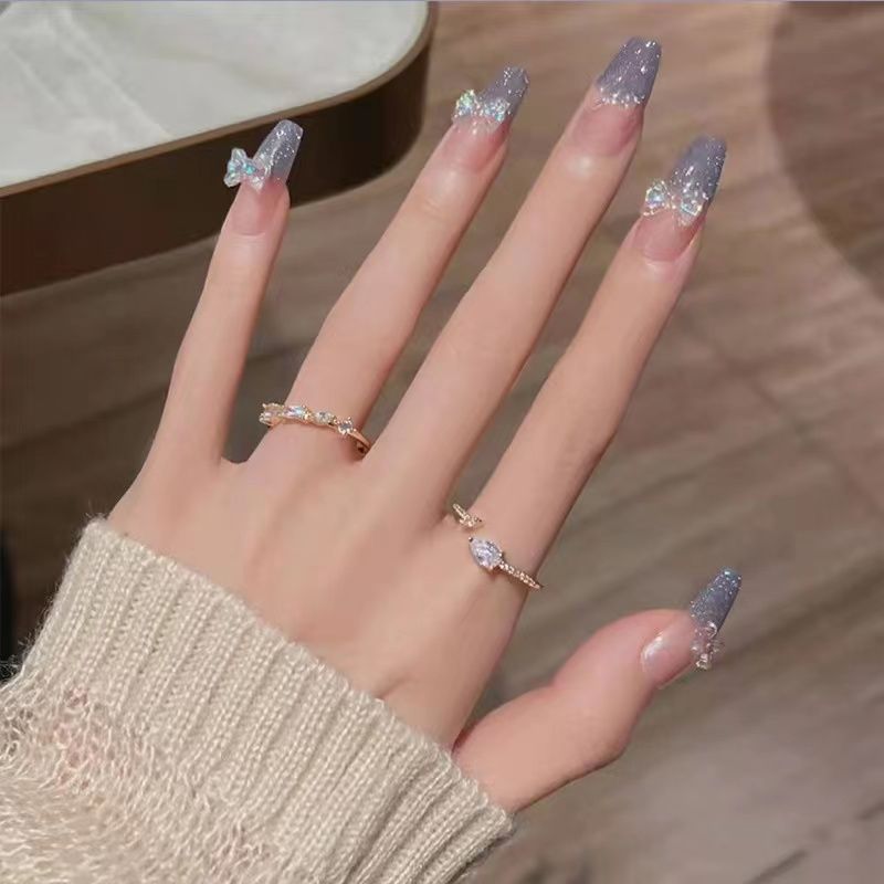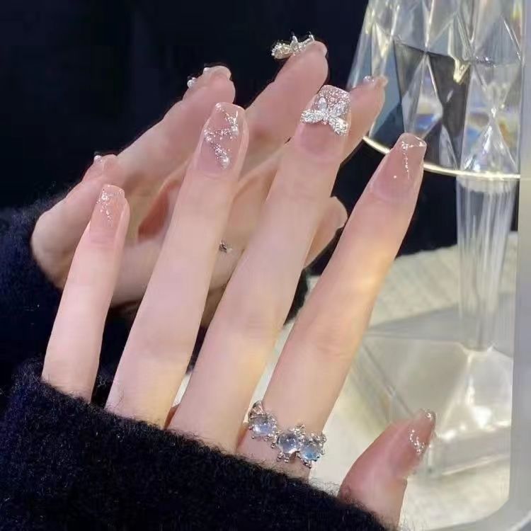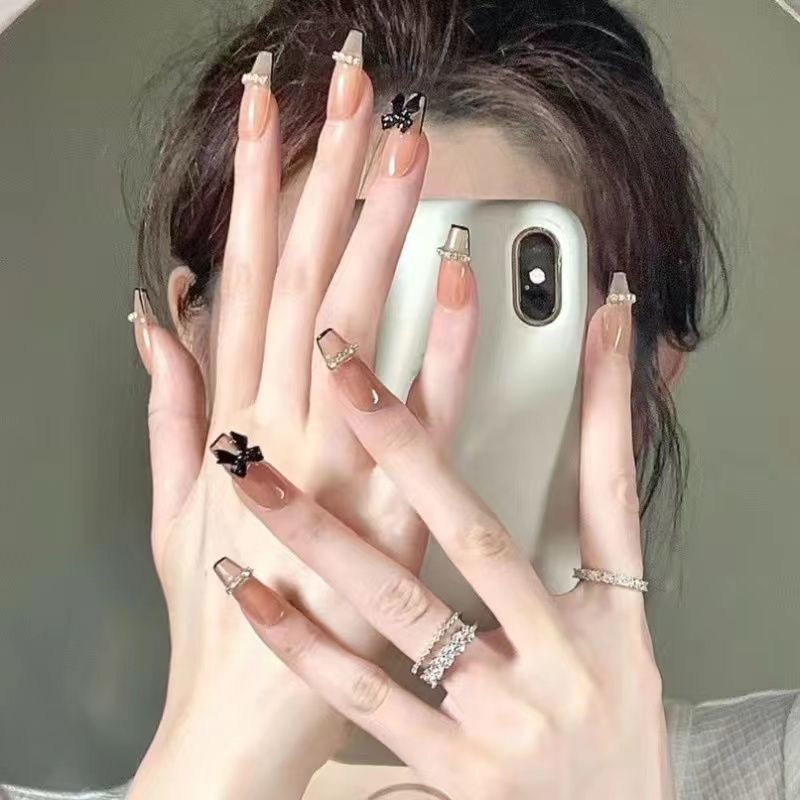买一送一奶黄蝴蝶结美甲穿戴甲穿戴式美甲贴片手指甲贴中长款成品