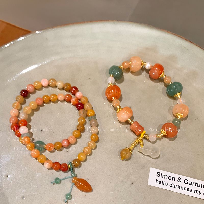 小南瓜金丝玉编织绳手链女款复古风手串新中式小众高级感串珠手饰