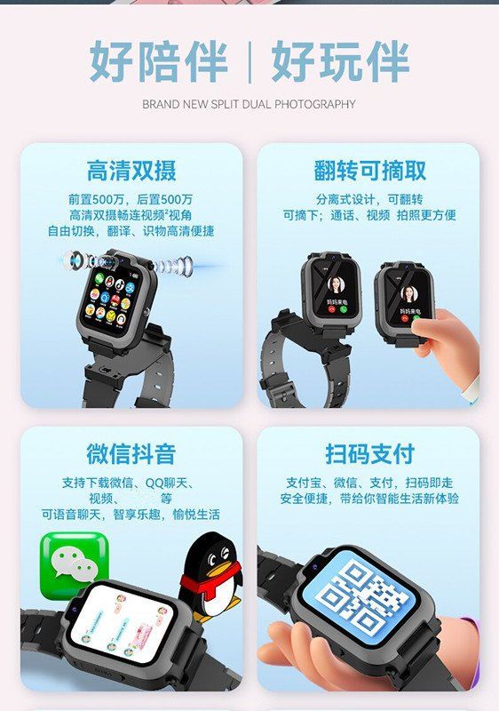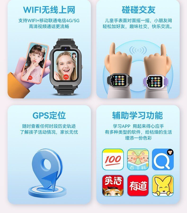 全网通多功能儿童智能电话手表可插卡可视频通话WIFI定位男女孩