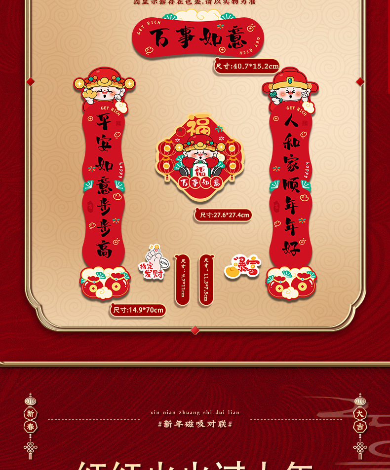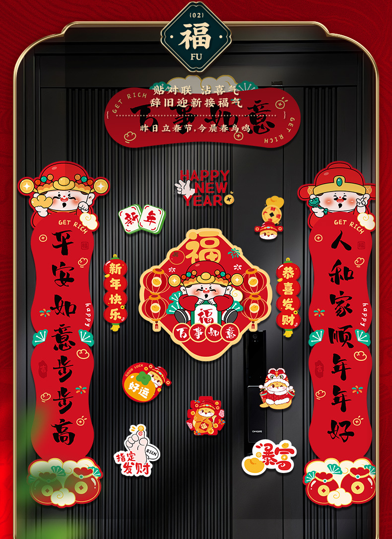 磁吸对联2025蛇年新款财神春联新年家用福字门贴过年入户门装饰品