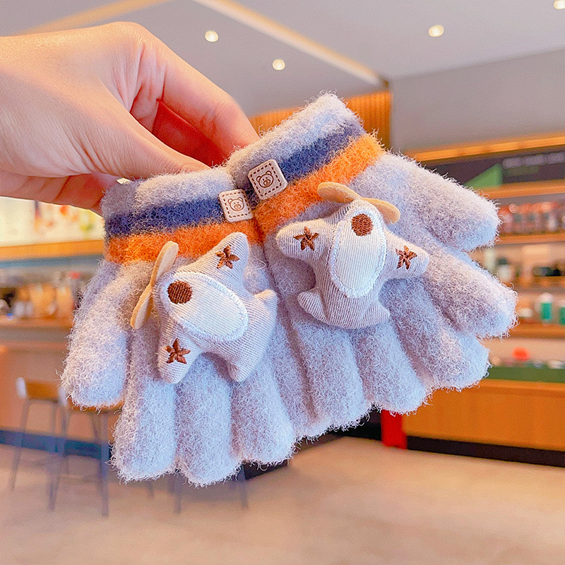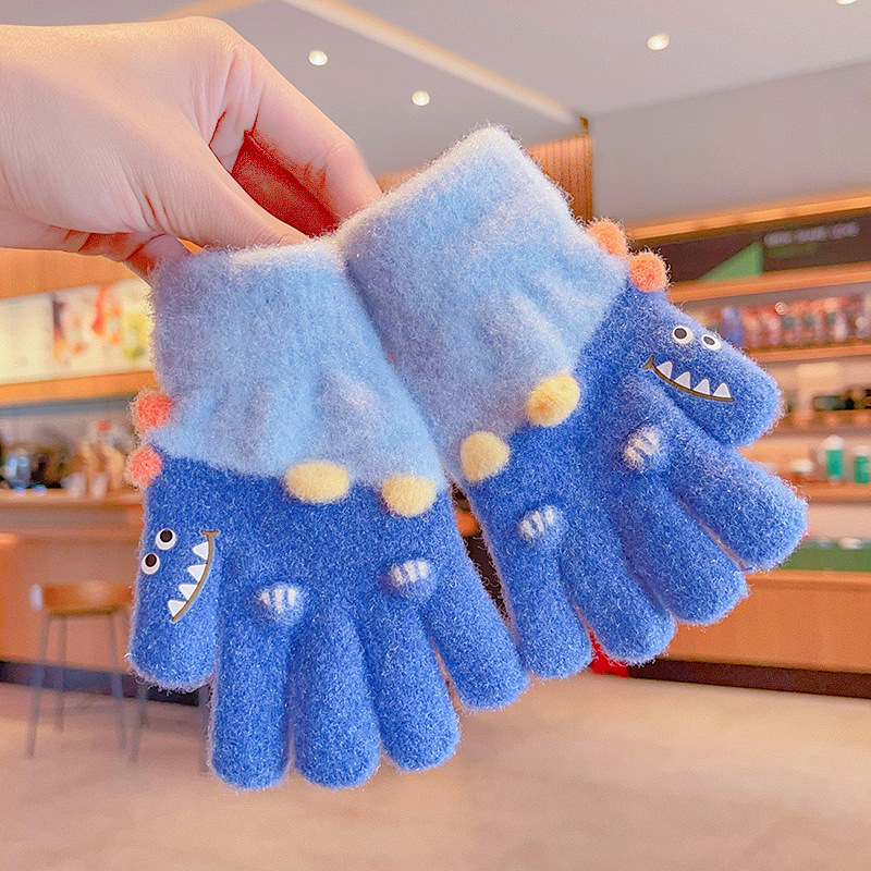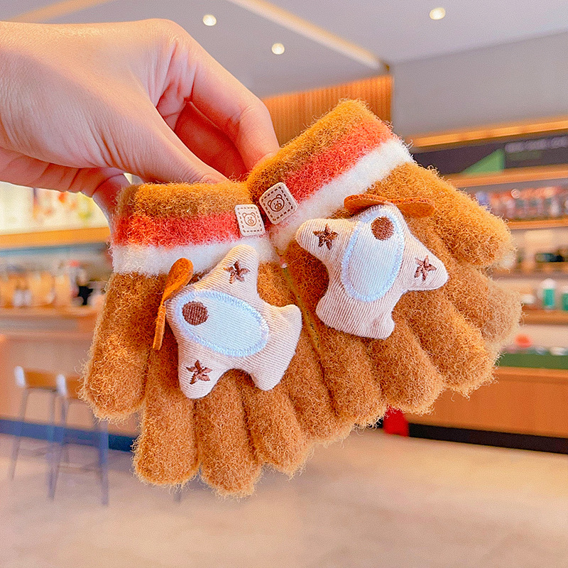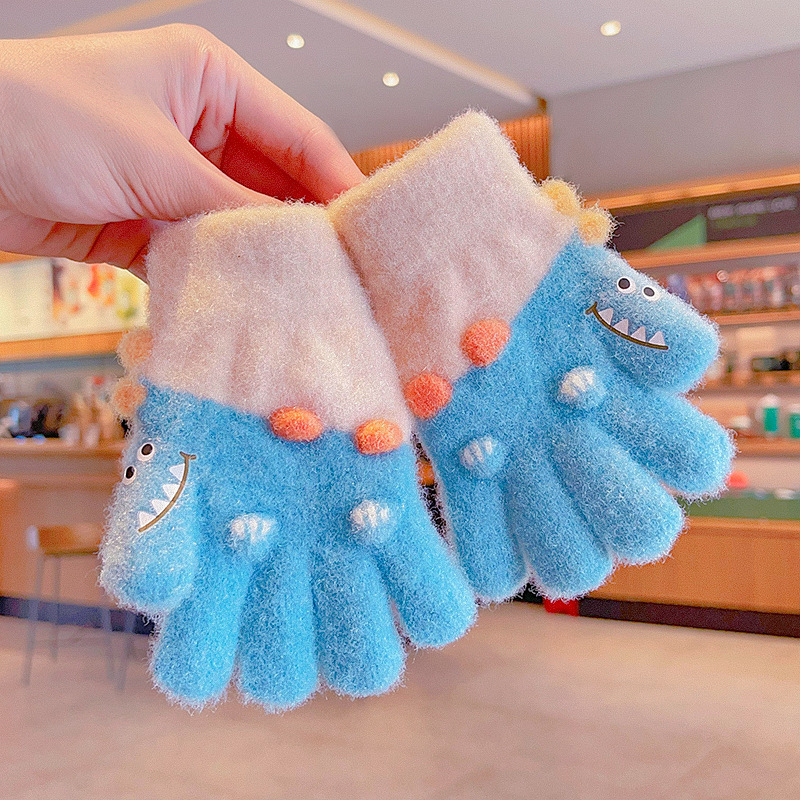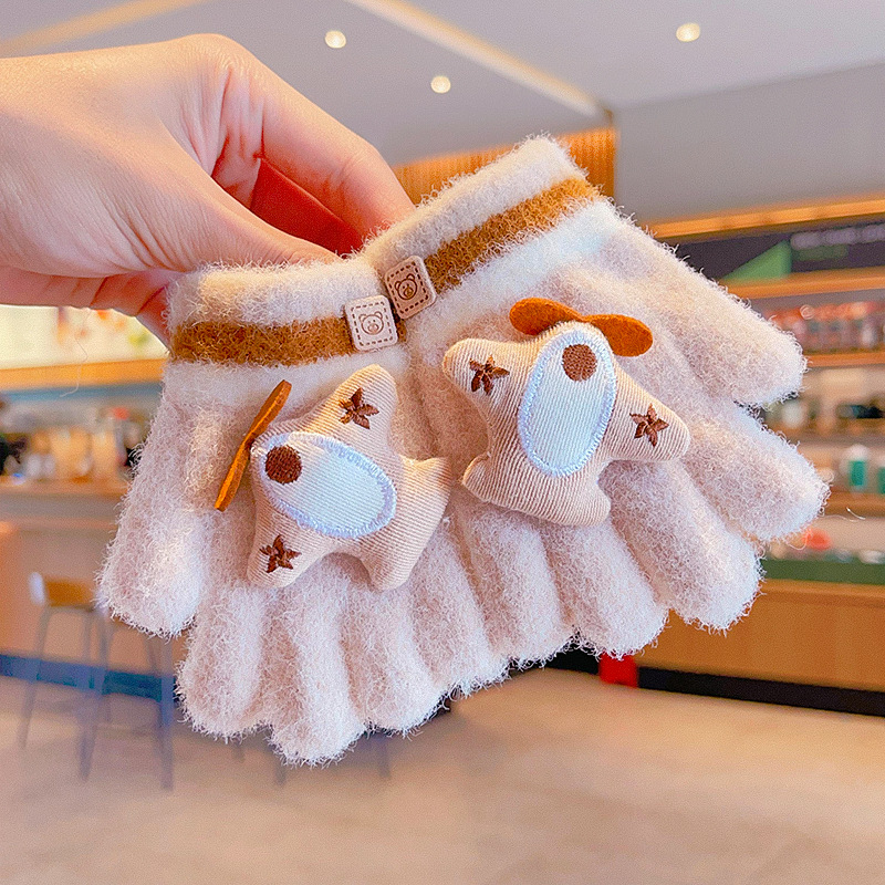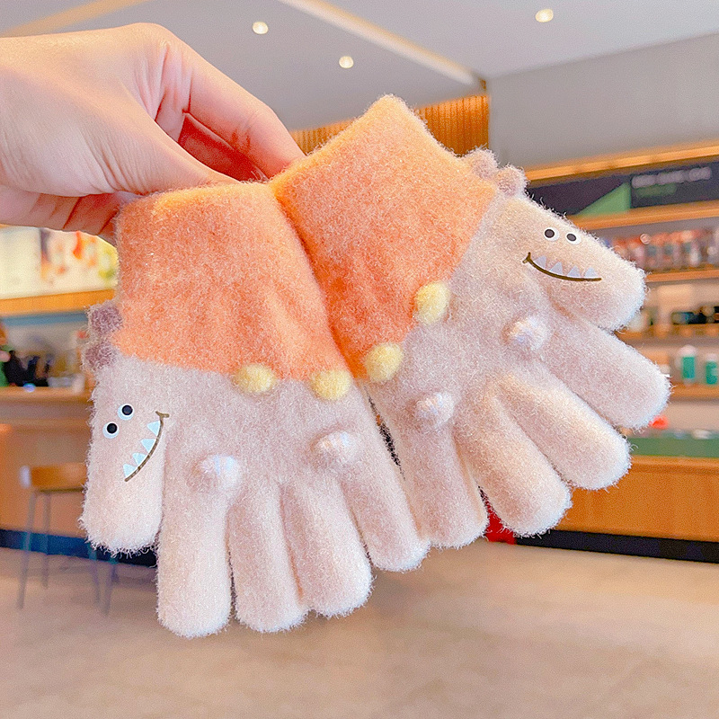 冬天新款宝宝可爱毛绒保暖婴幼儿手套儿童五指套0-3男女童1岁2岁