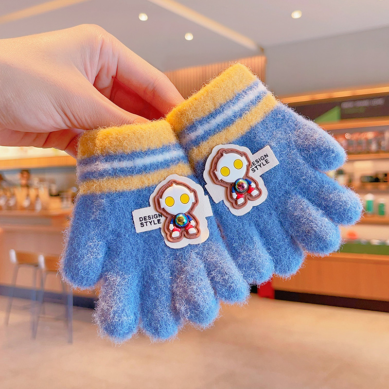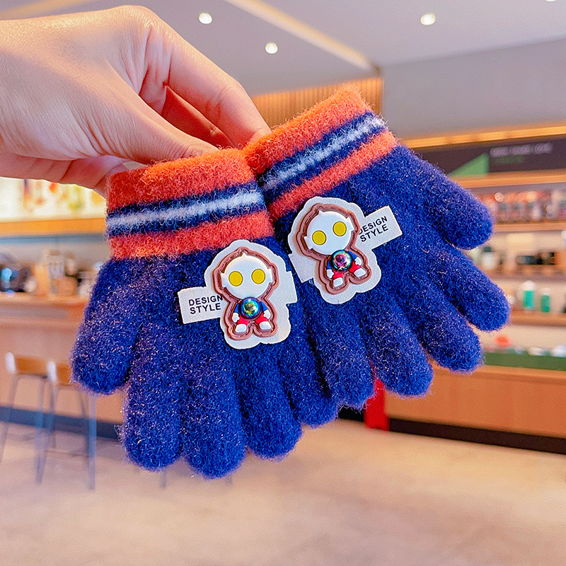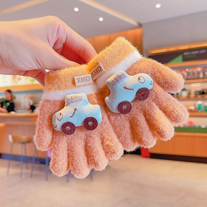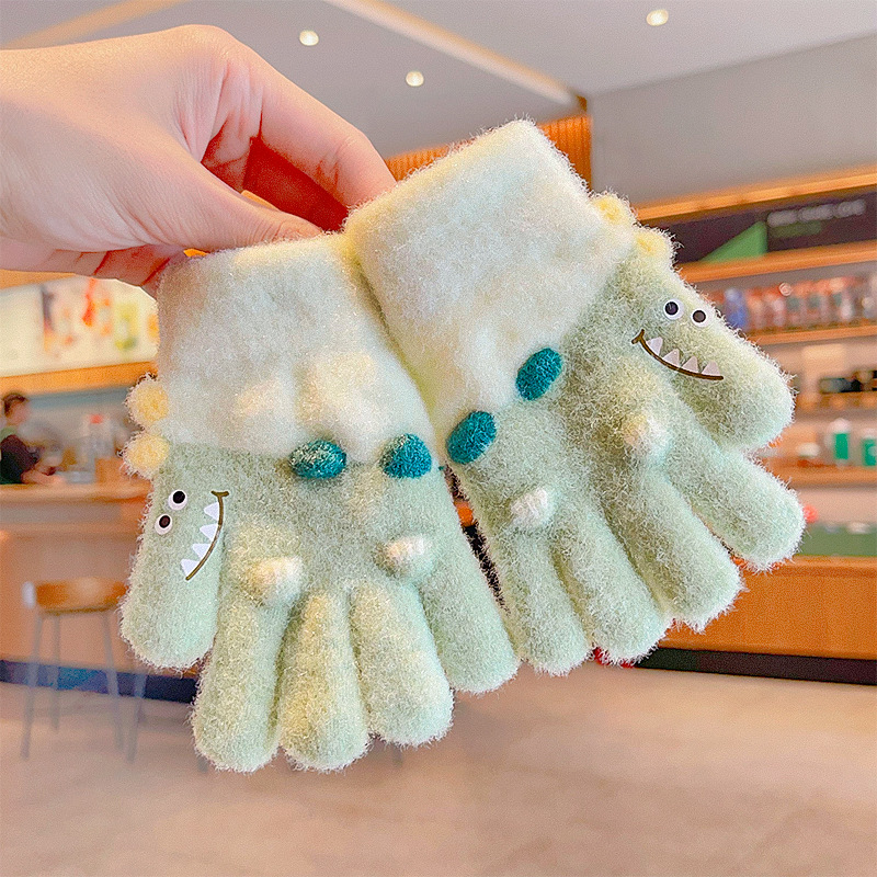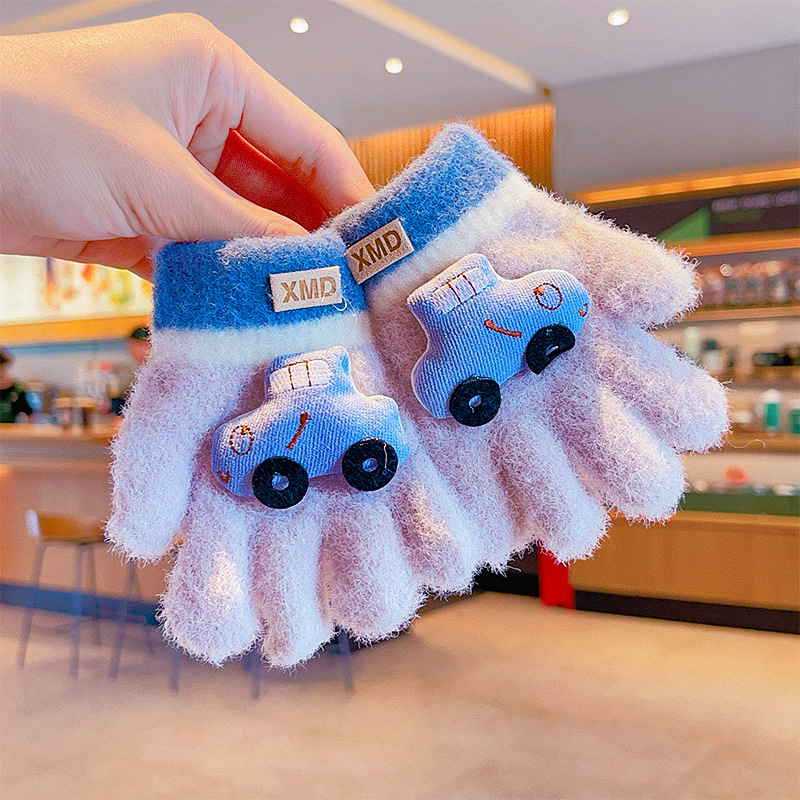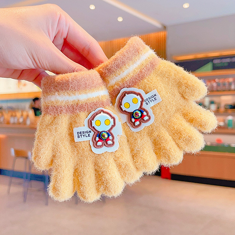 冬天新款宝宝可爱毛绒保暖婴幼儿手套儿童五指套0-3男女童1岁2岁