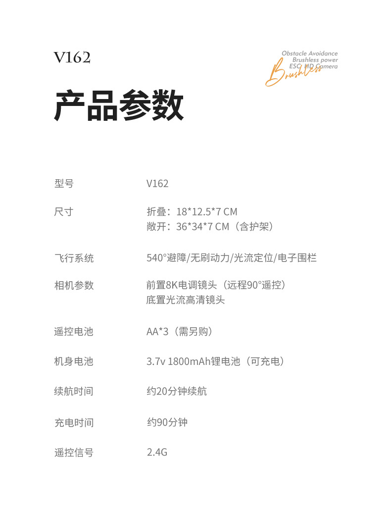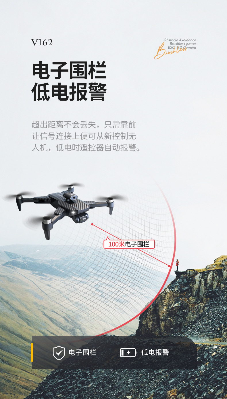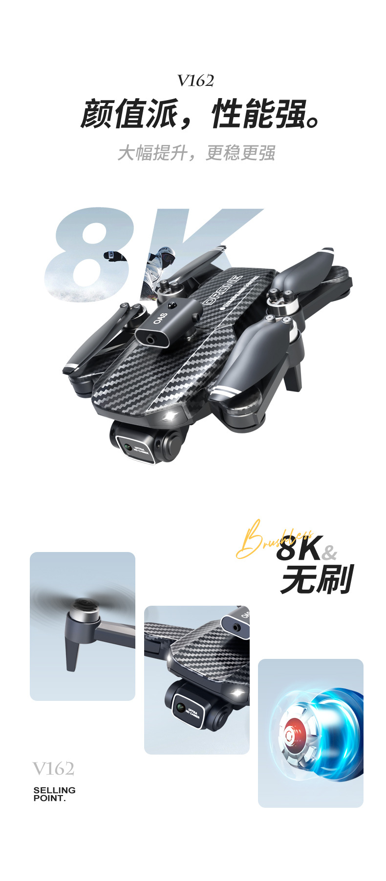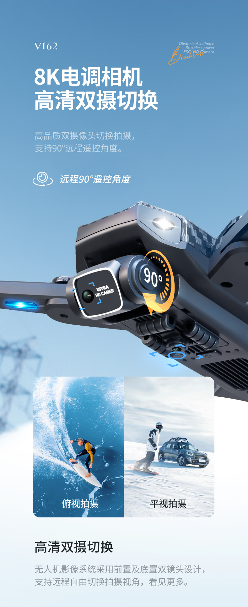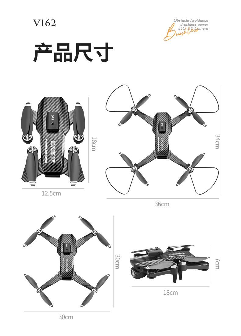 跨境V162无刷高清航拍无人机智能避障遥控飞机光流定位四轴飞行器
