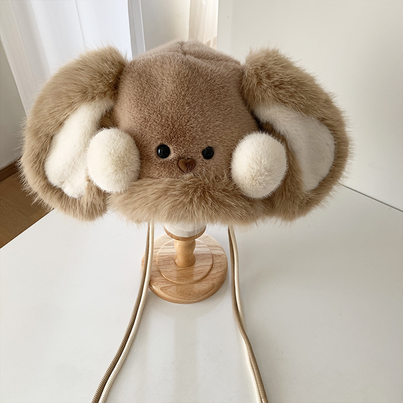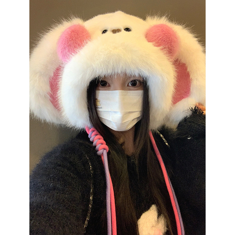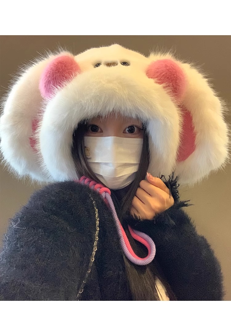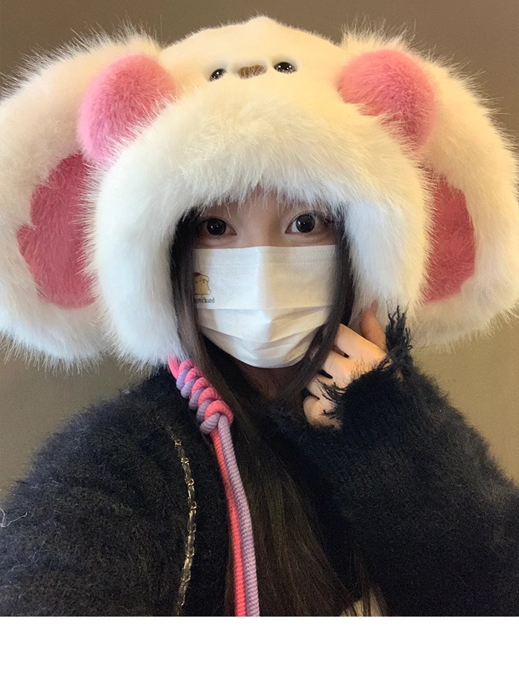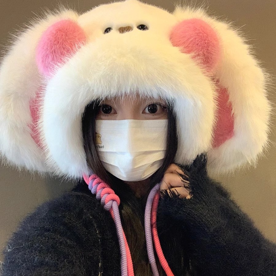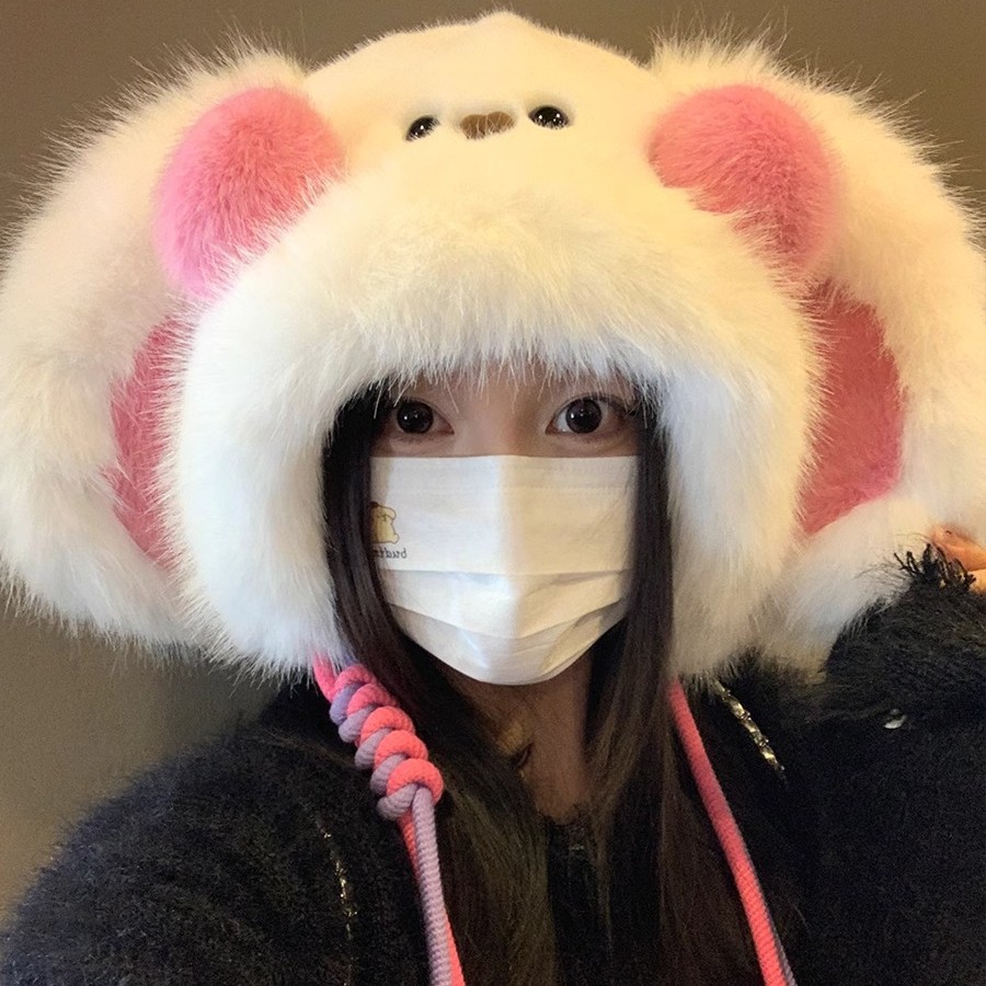 秋冬季新款卡通毛绒兔子耳朵雷锋帽女防风护耳加厚保暖帽子