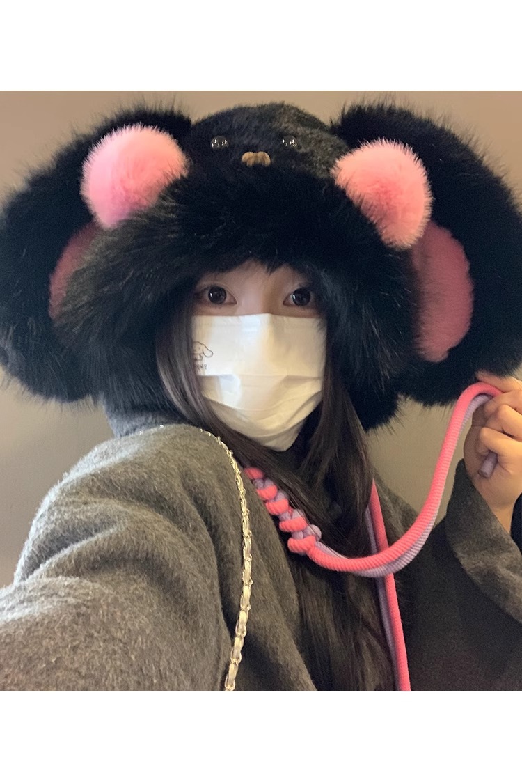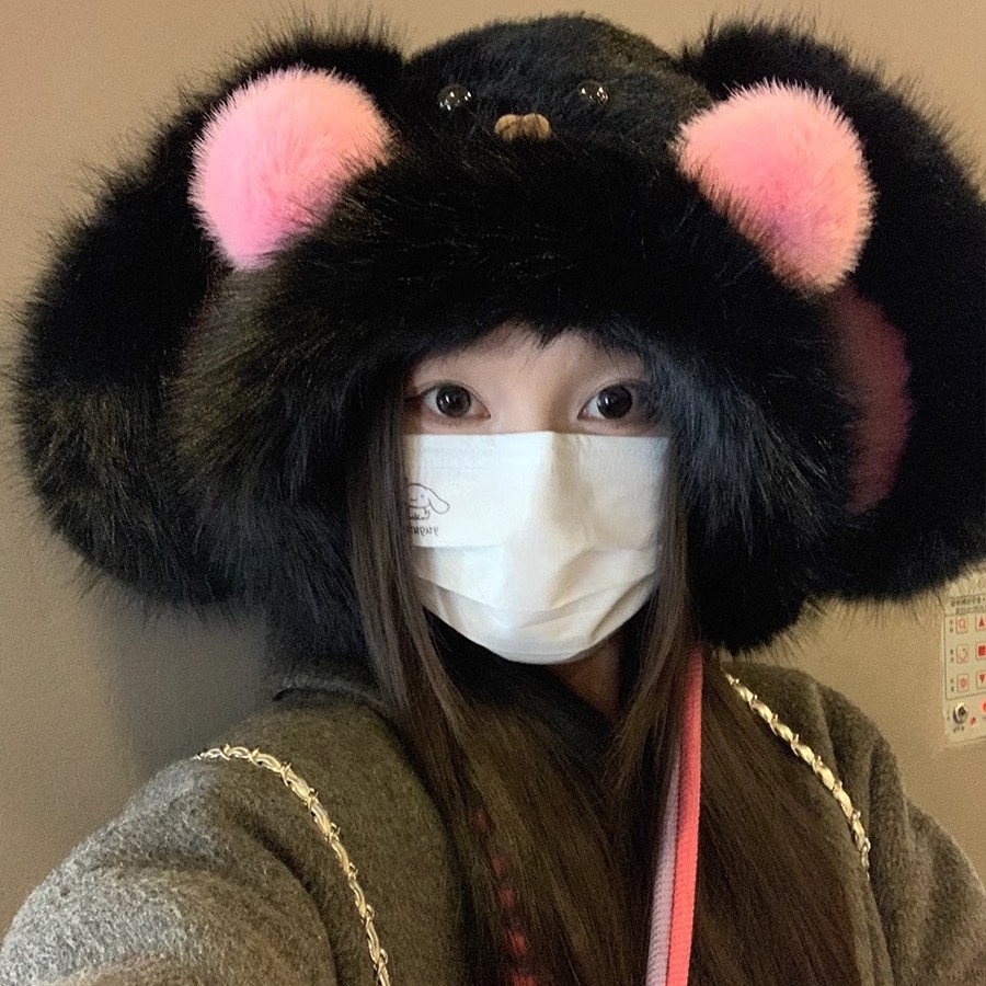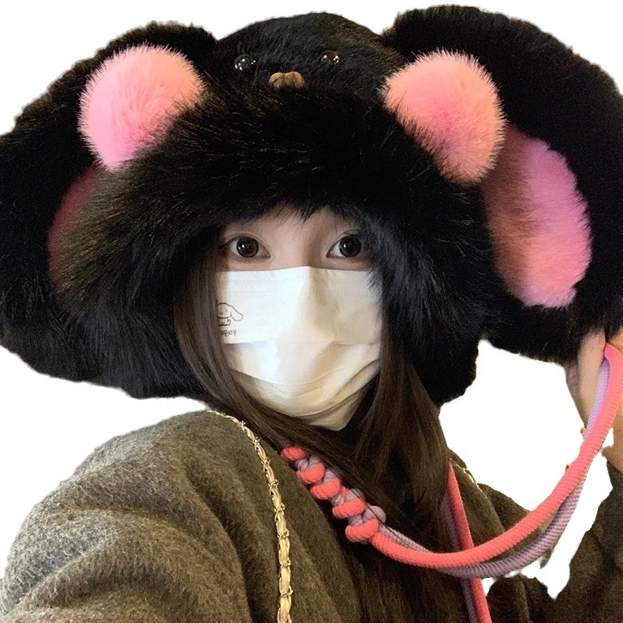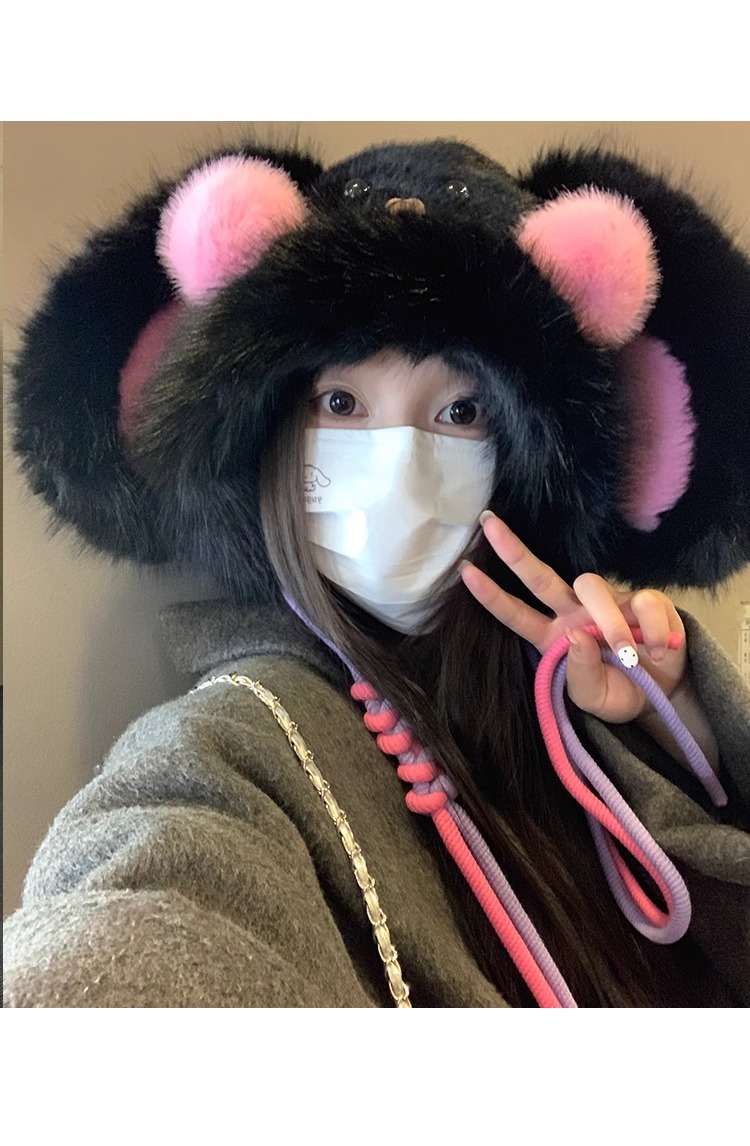 秋冬季新款卡通毛绒兔子耳朵雷锋帽女防风护耳加厚保暖帽子