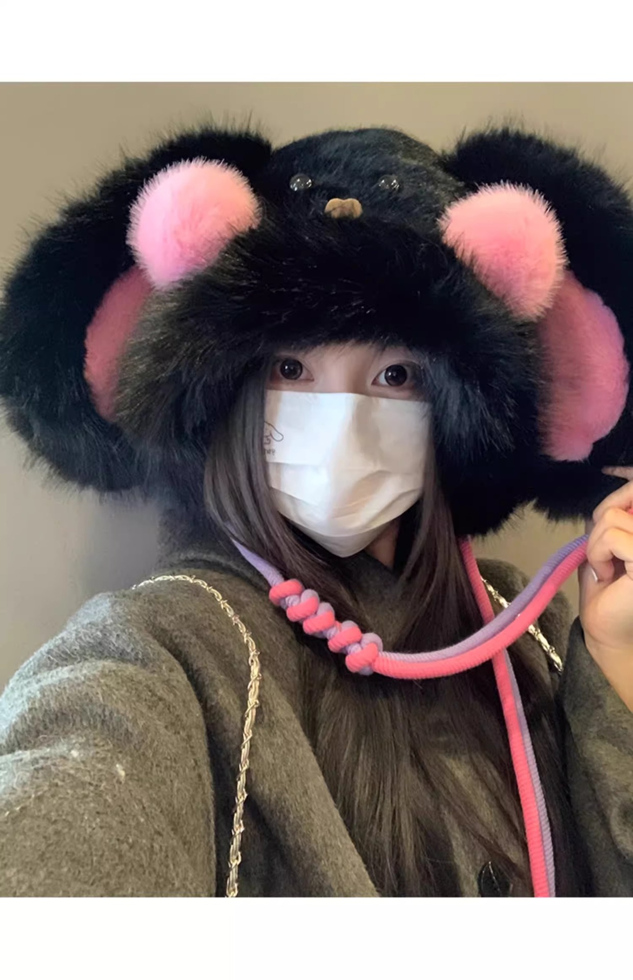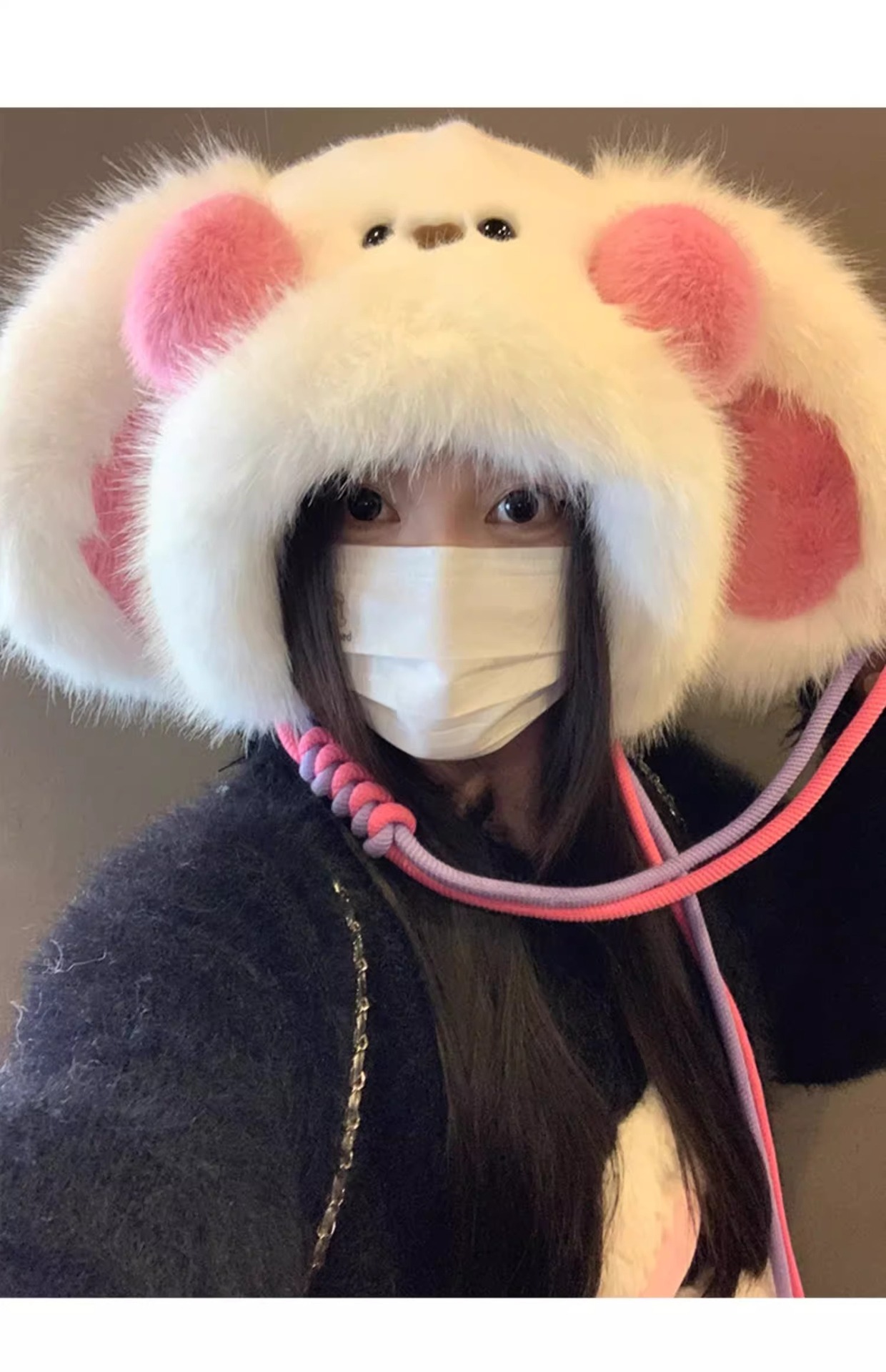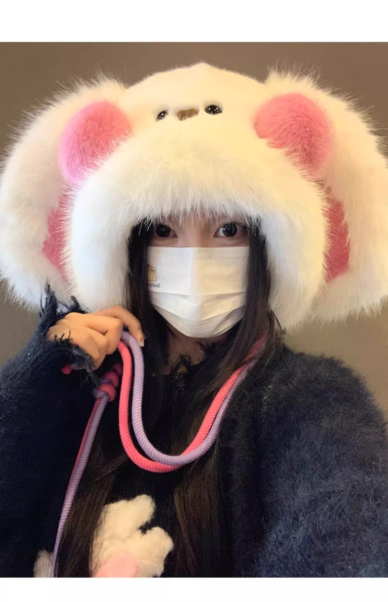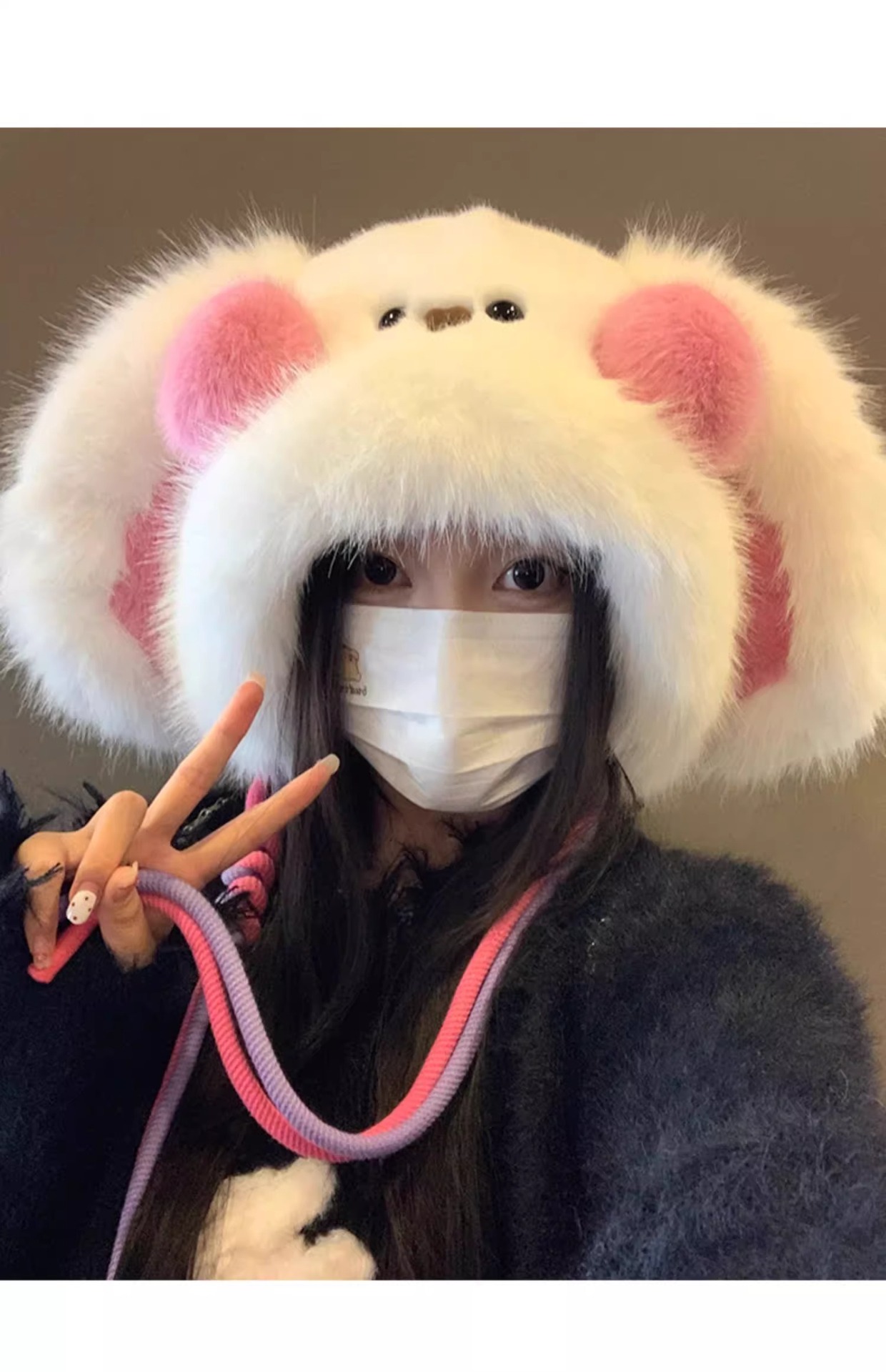 秋冬季新款卡通毛绒兔子耳朵雷锋帽女防风护耳加厚保暖帽子