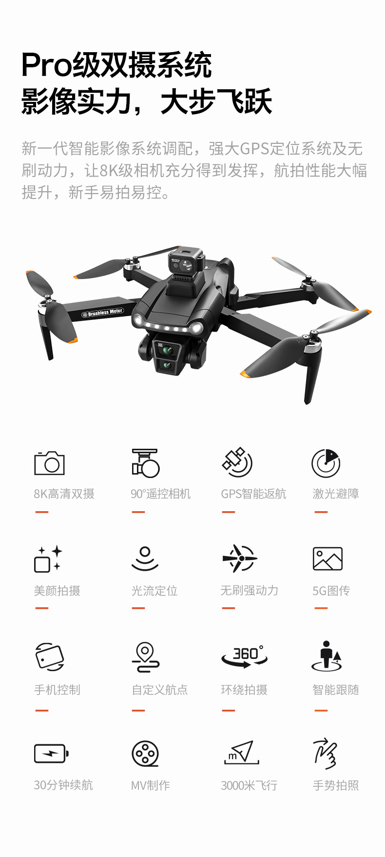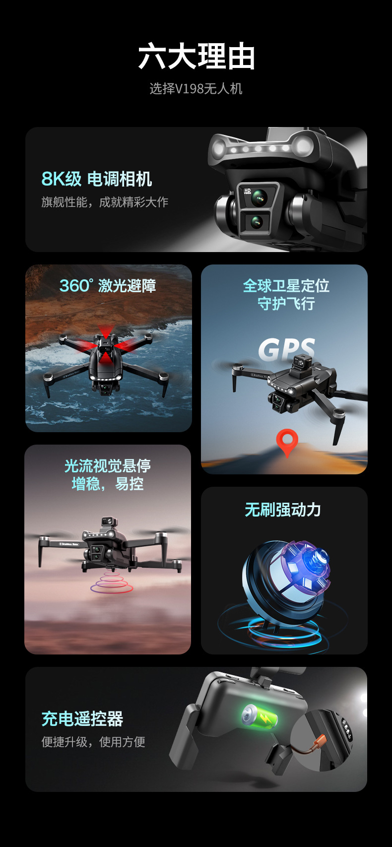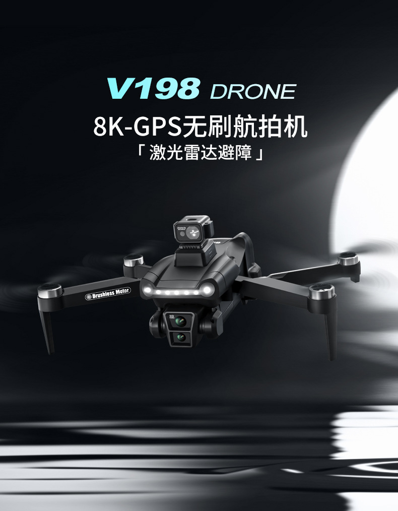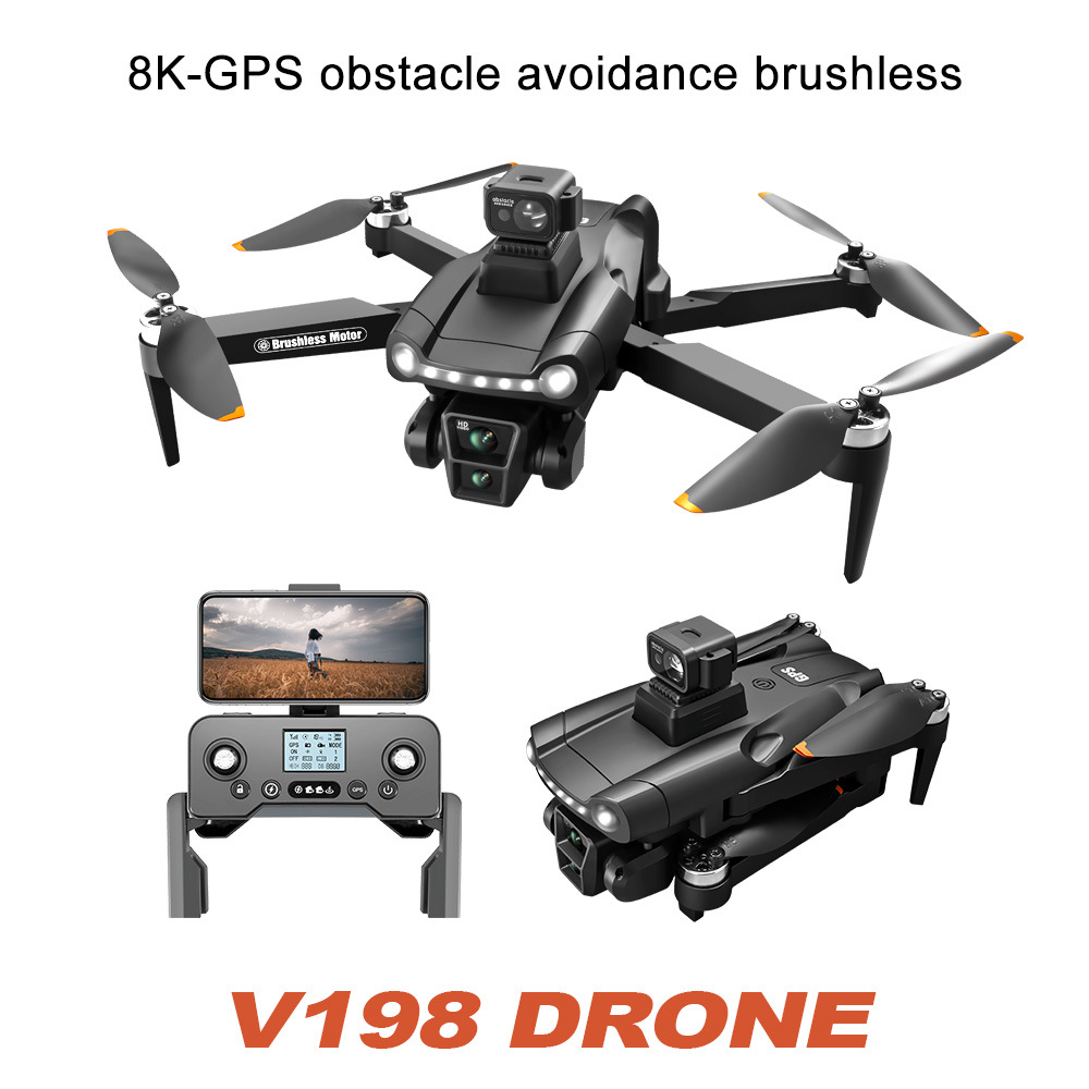 跨境V198无人机GPS一键返航高清8K航拍光流激光避障外贸遥控飞机