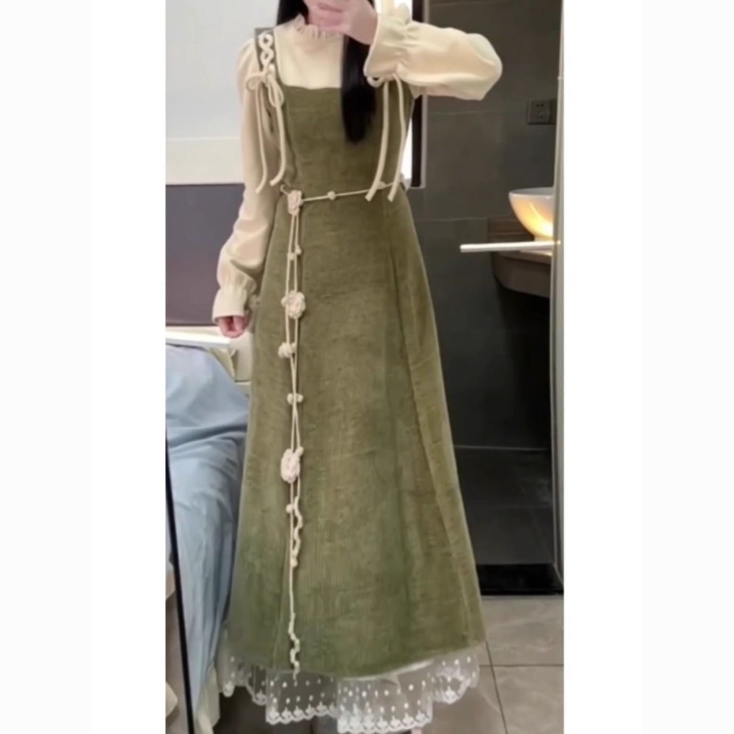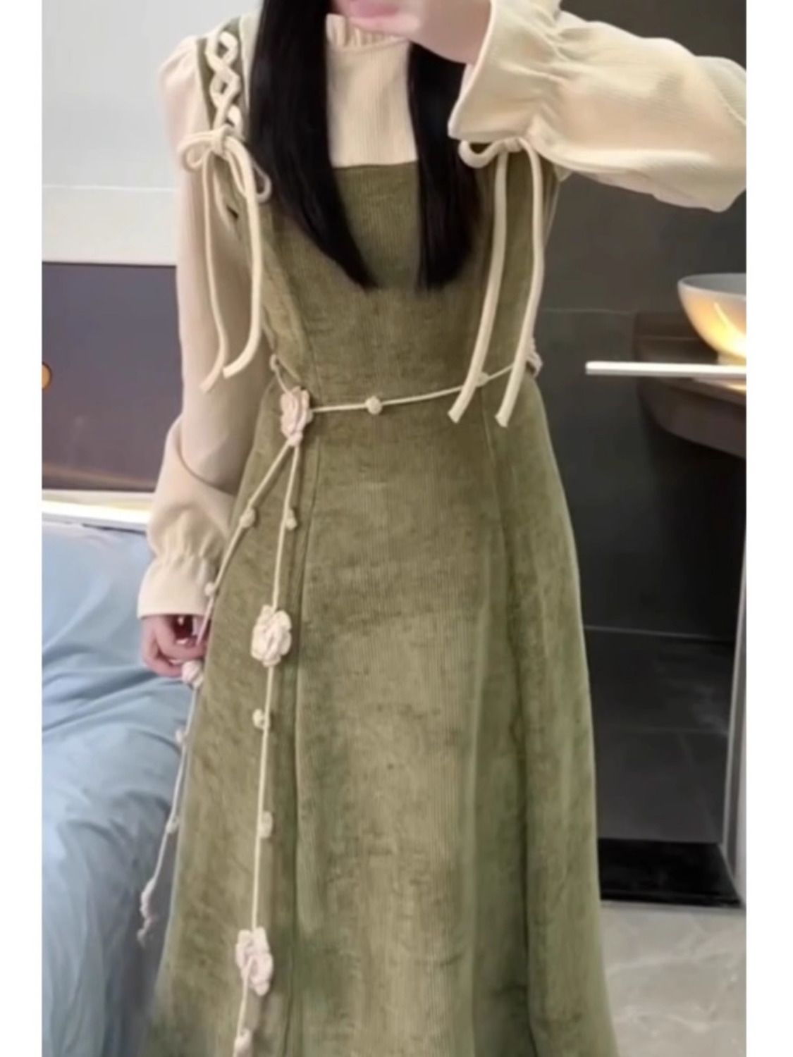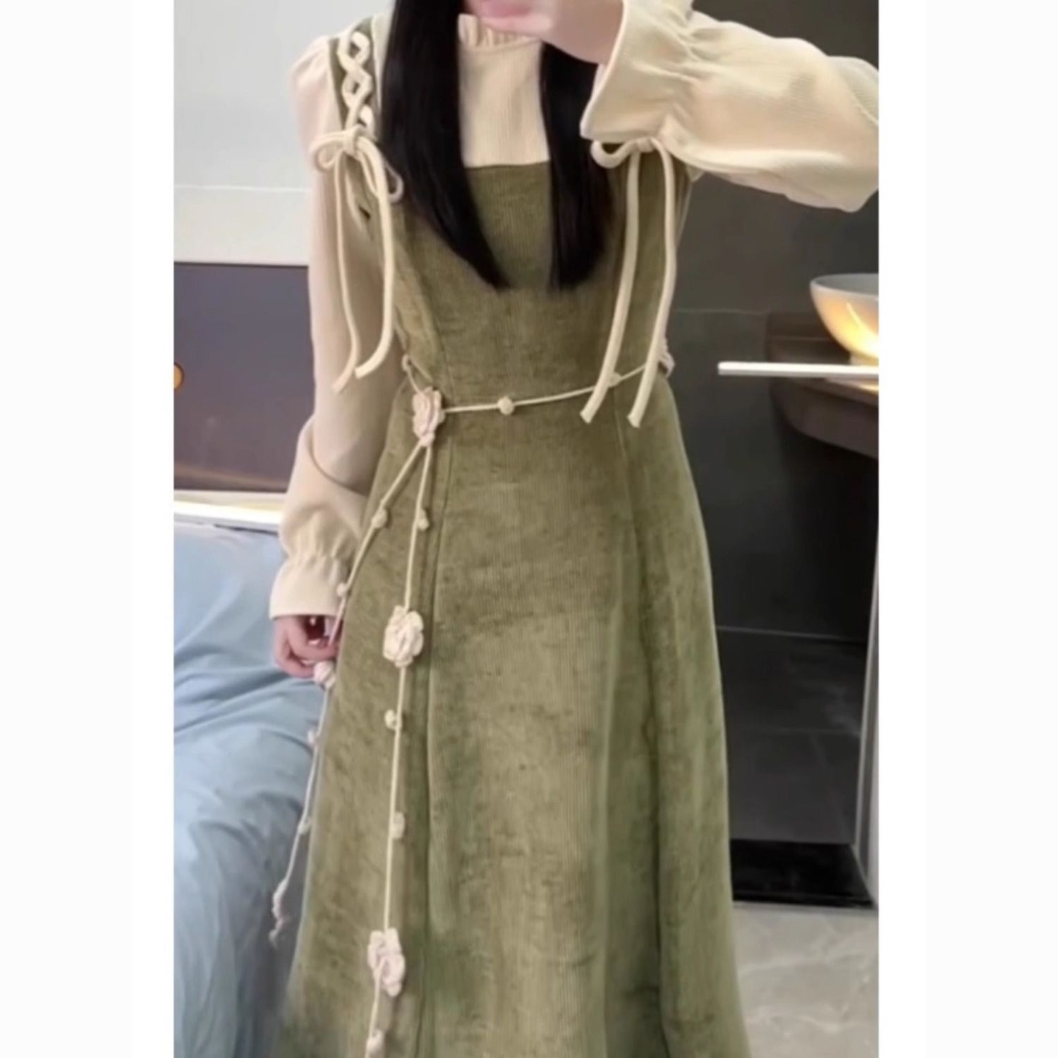 套装女2024秋冬韩系减龄长袖打底衫上衣收腰显瘦背带连衣裙两件套