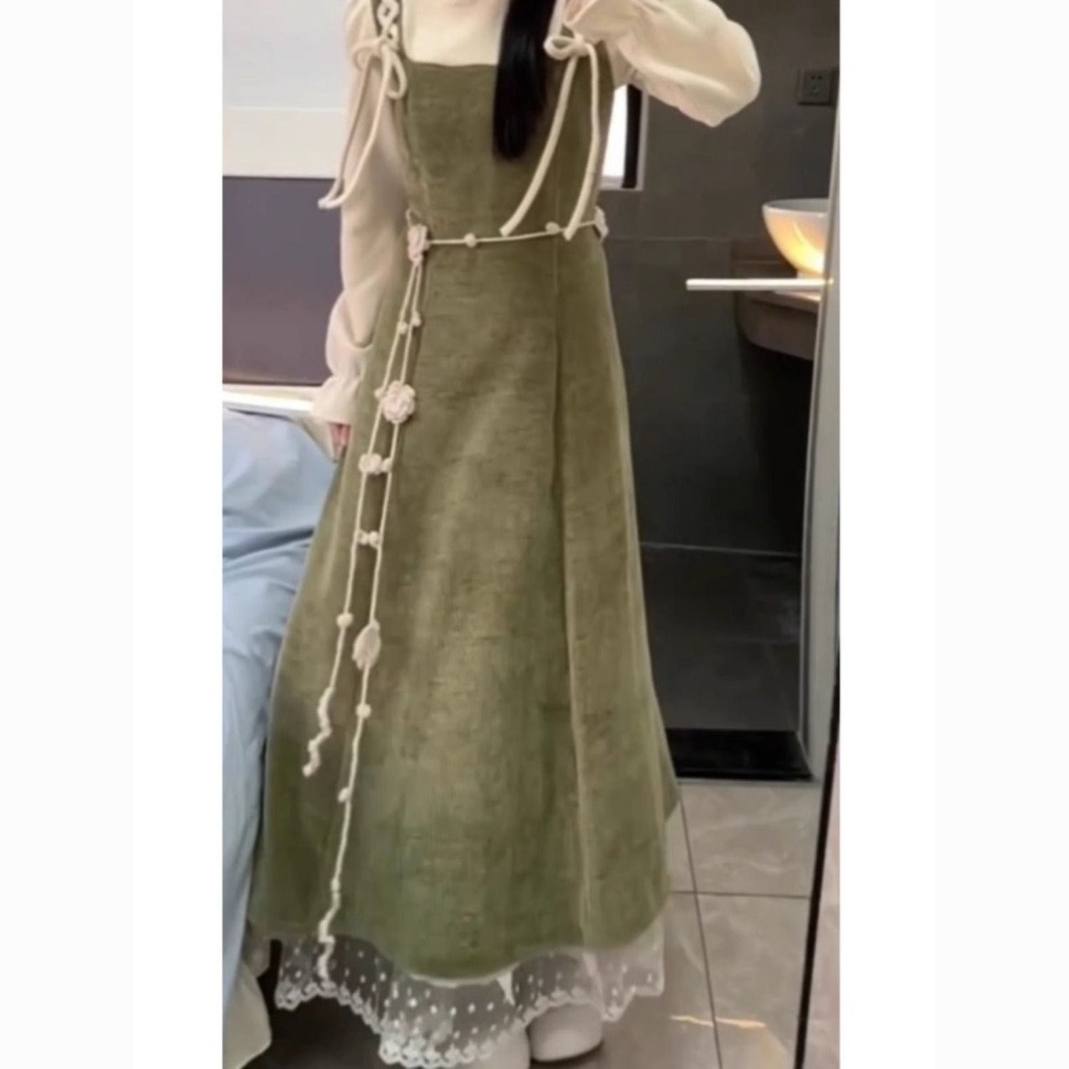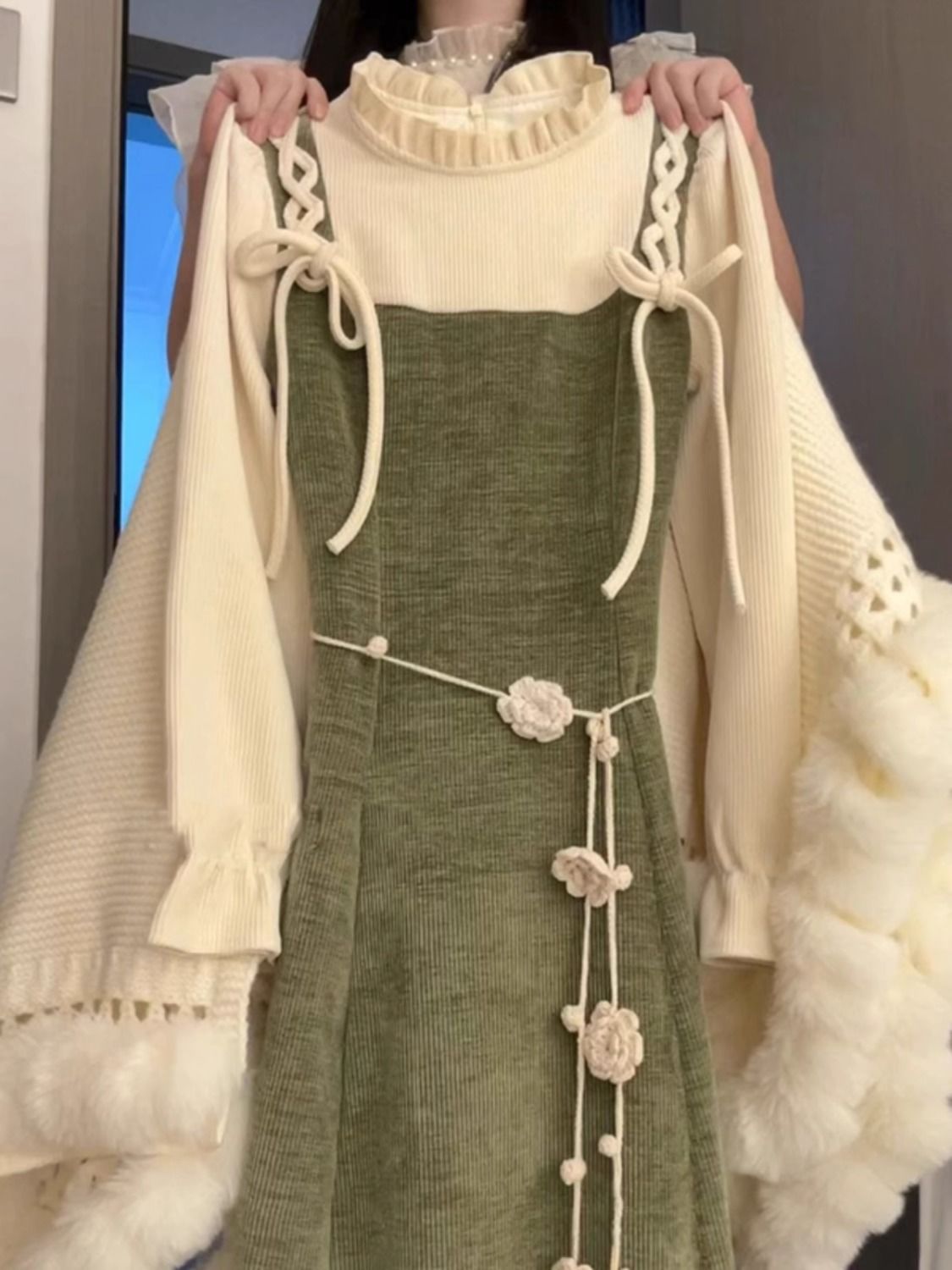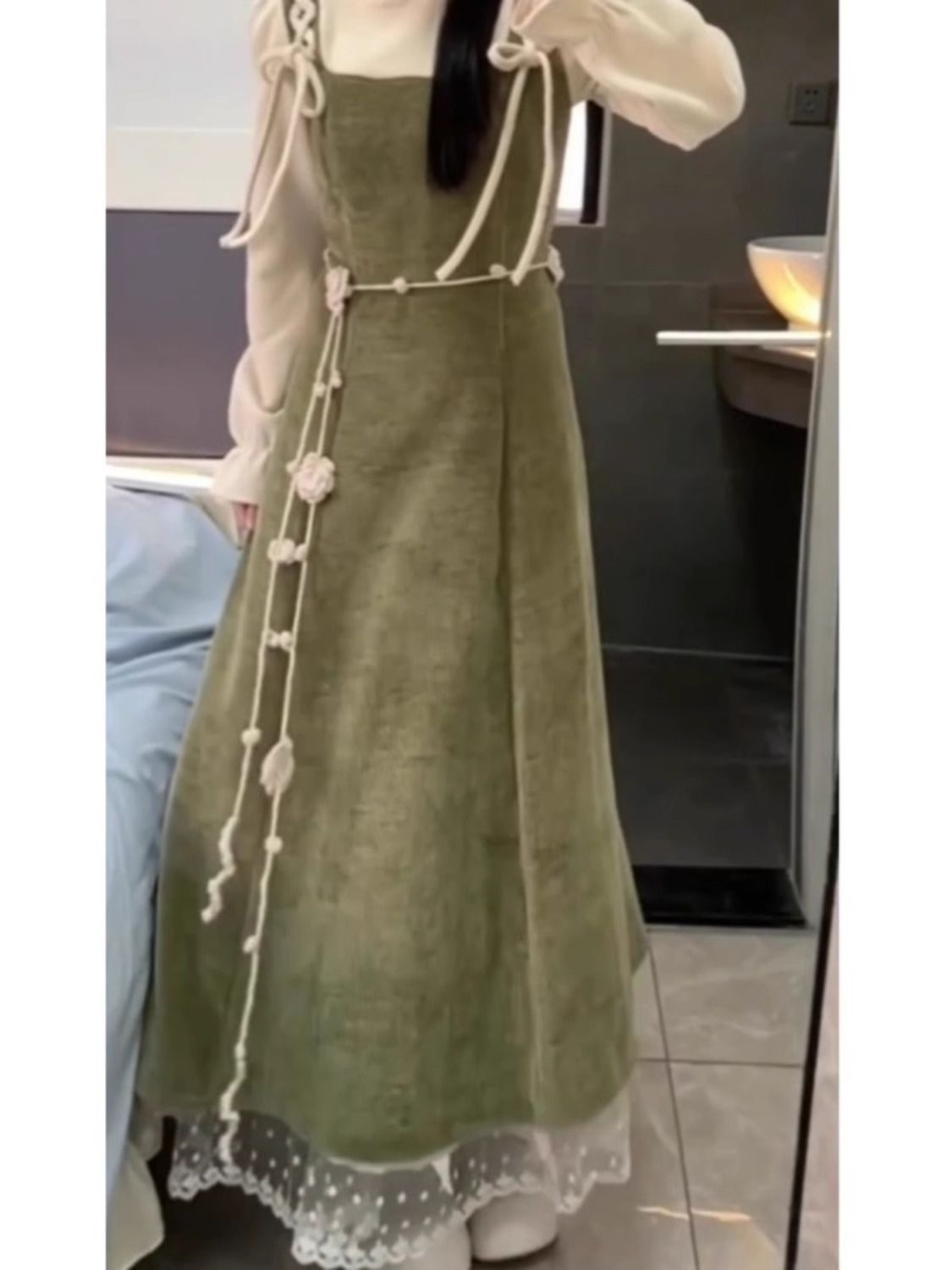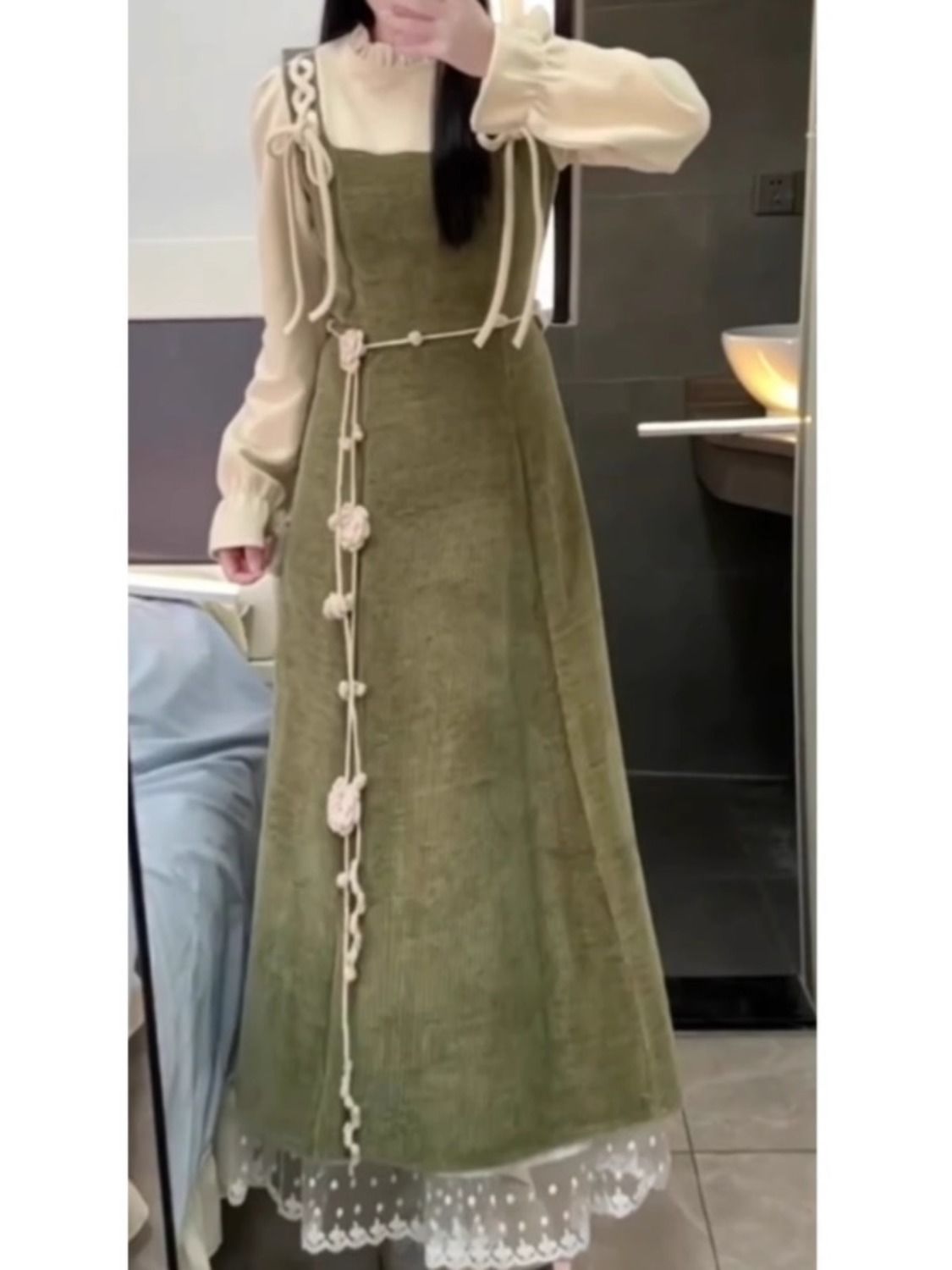 套装女2024秋冬韩系减龄长袖打底衫上衣收腰显瘦背带连衣裙两件套