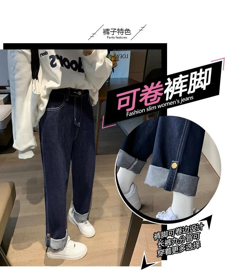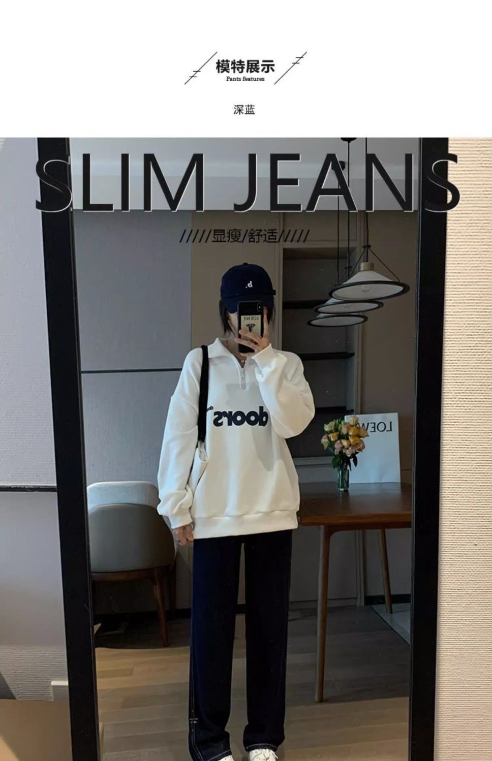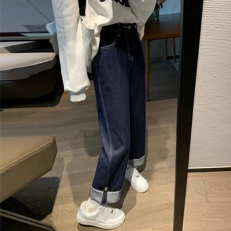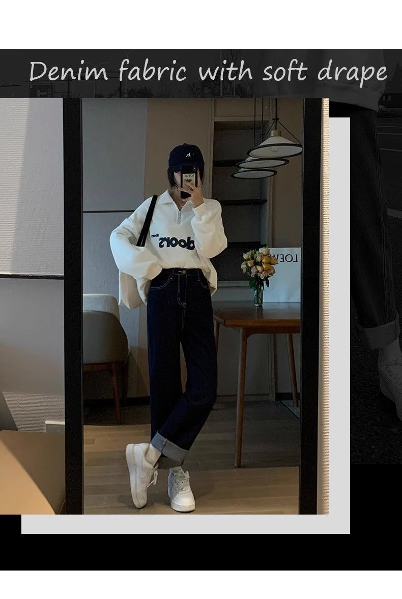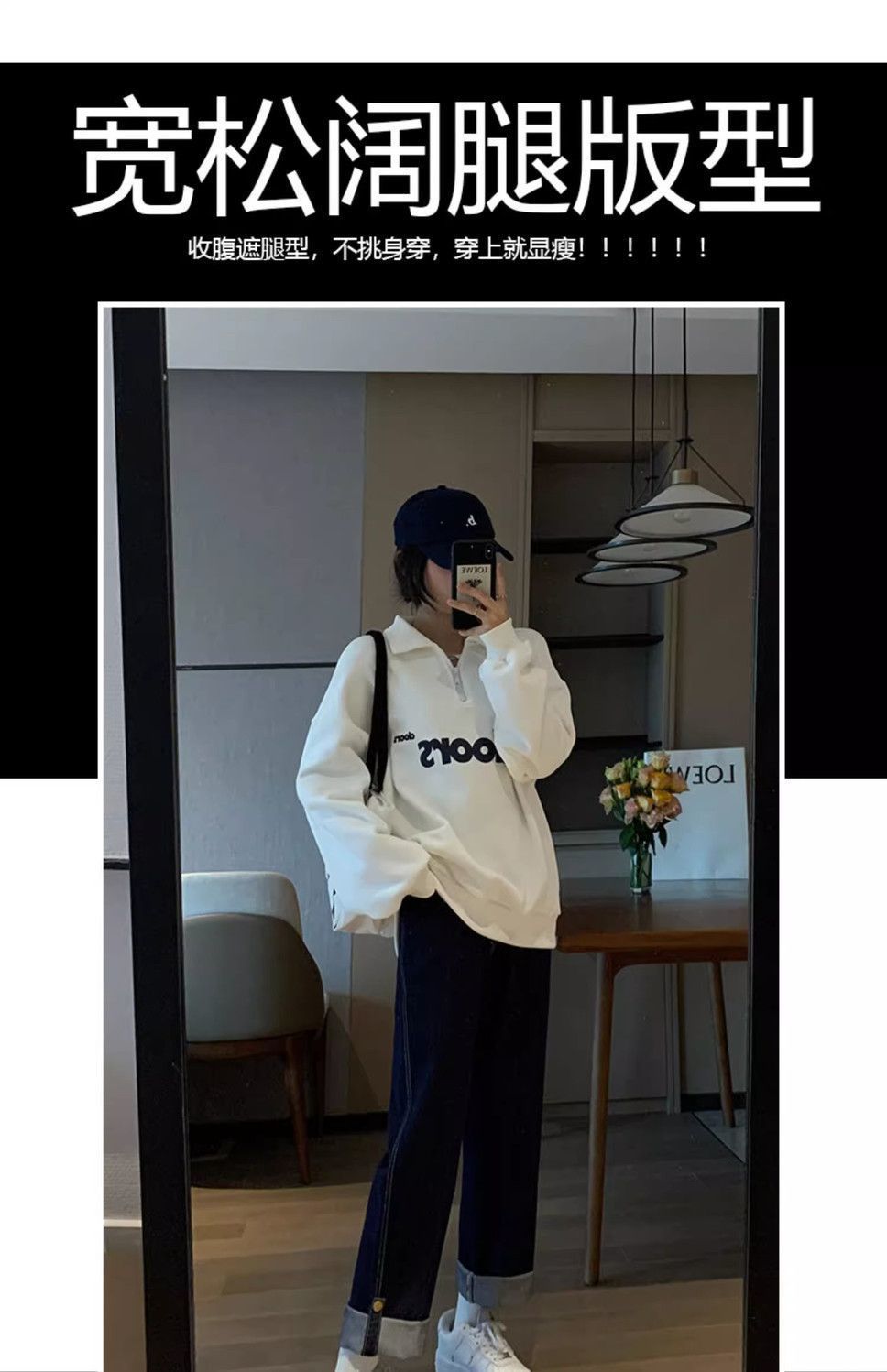 大码高腰垂感牛仔裤女2024秋季新款窄版直筒宽松显瘦卷边阔腿裤潮
