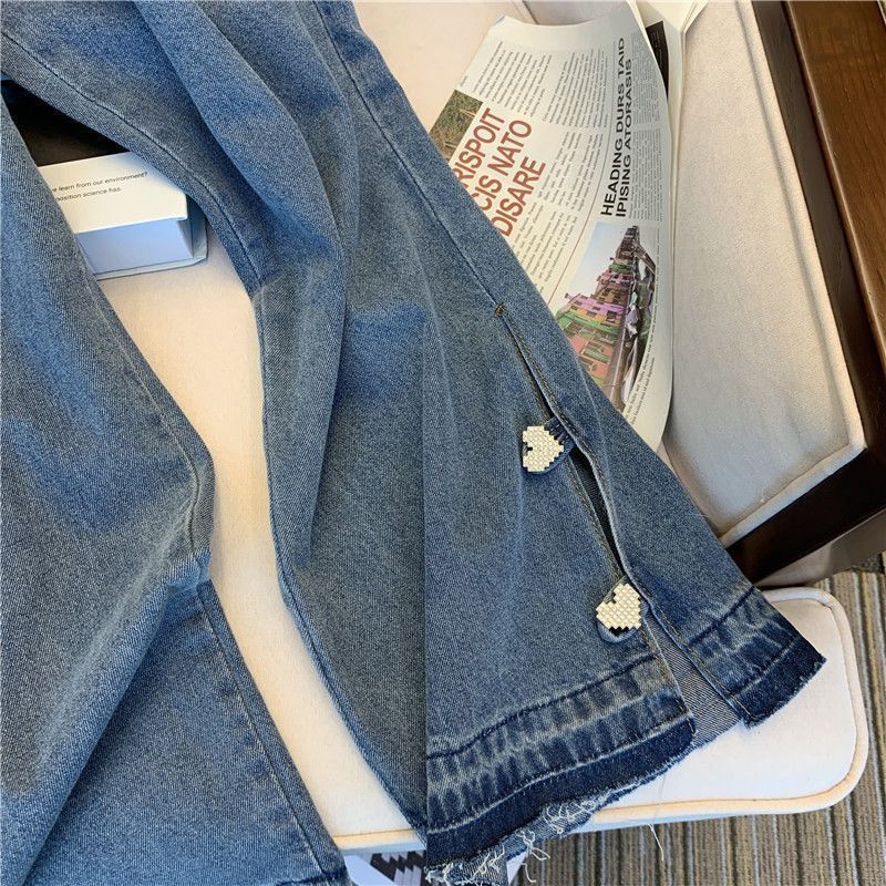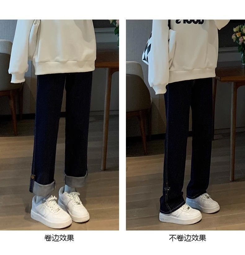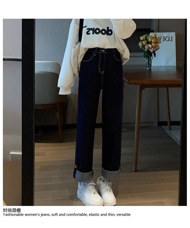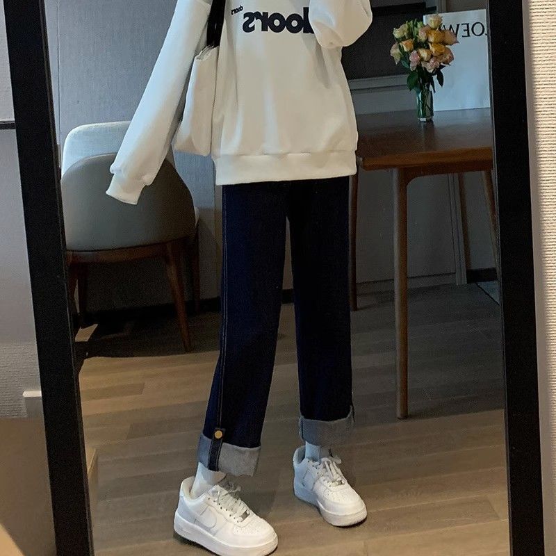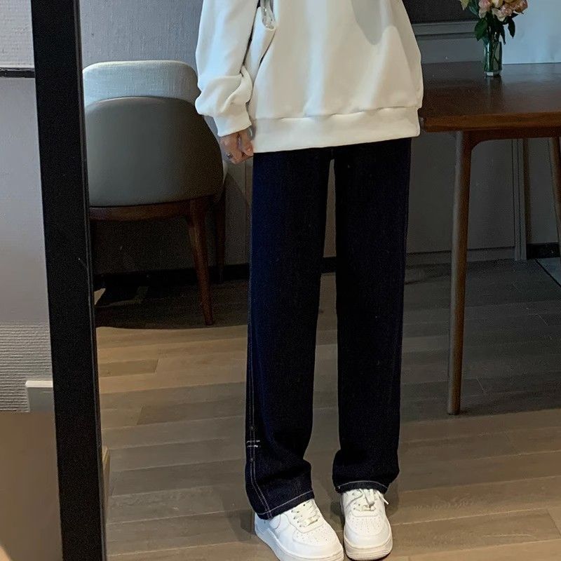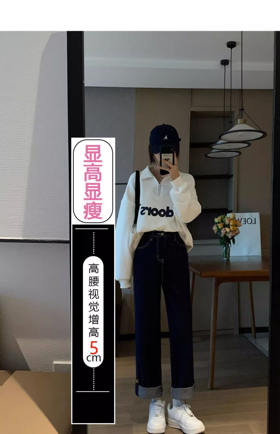 大码高腰垂感牛仔裤女2024秋季新款窄版直筒宽松显瘦卷边阔腿裤潮