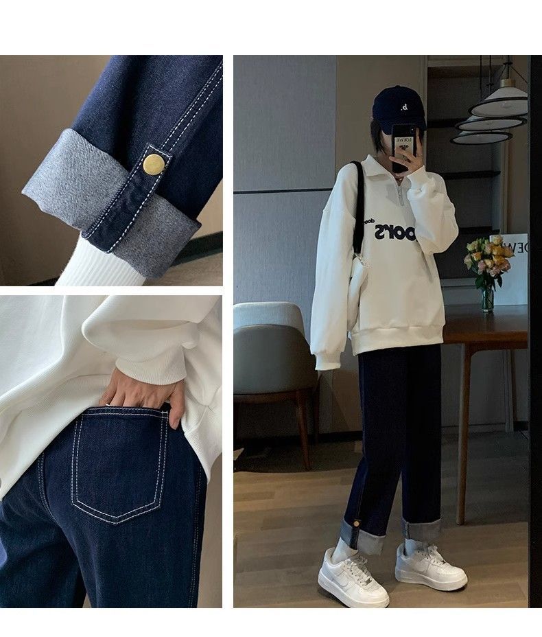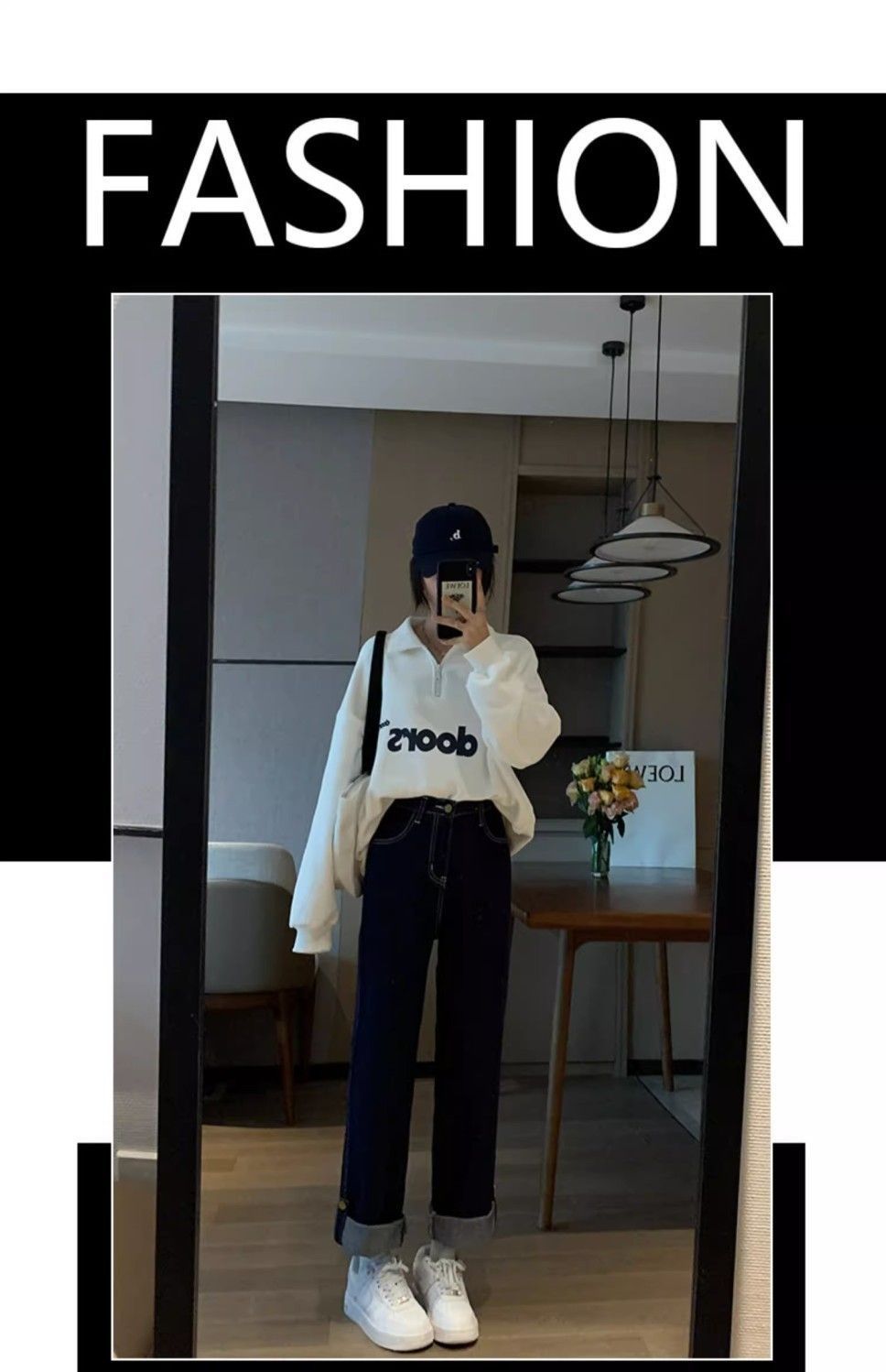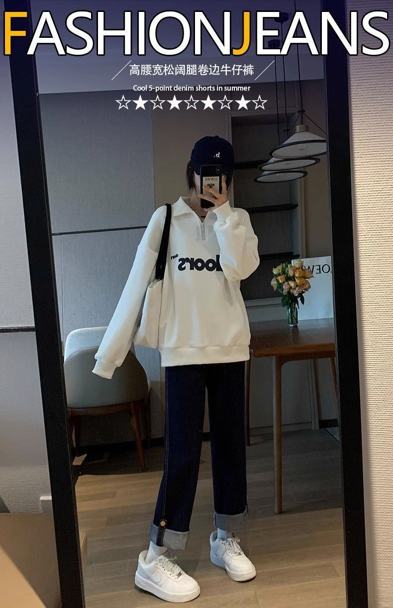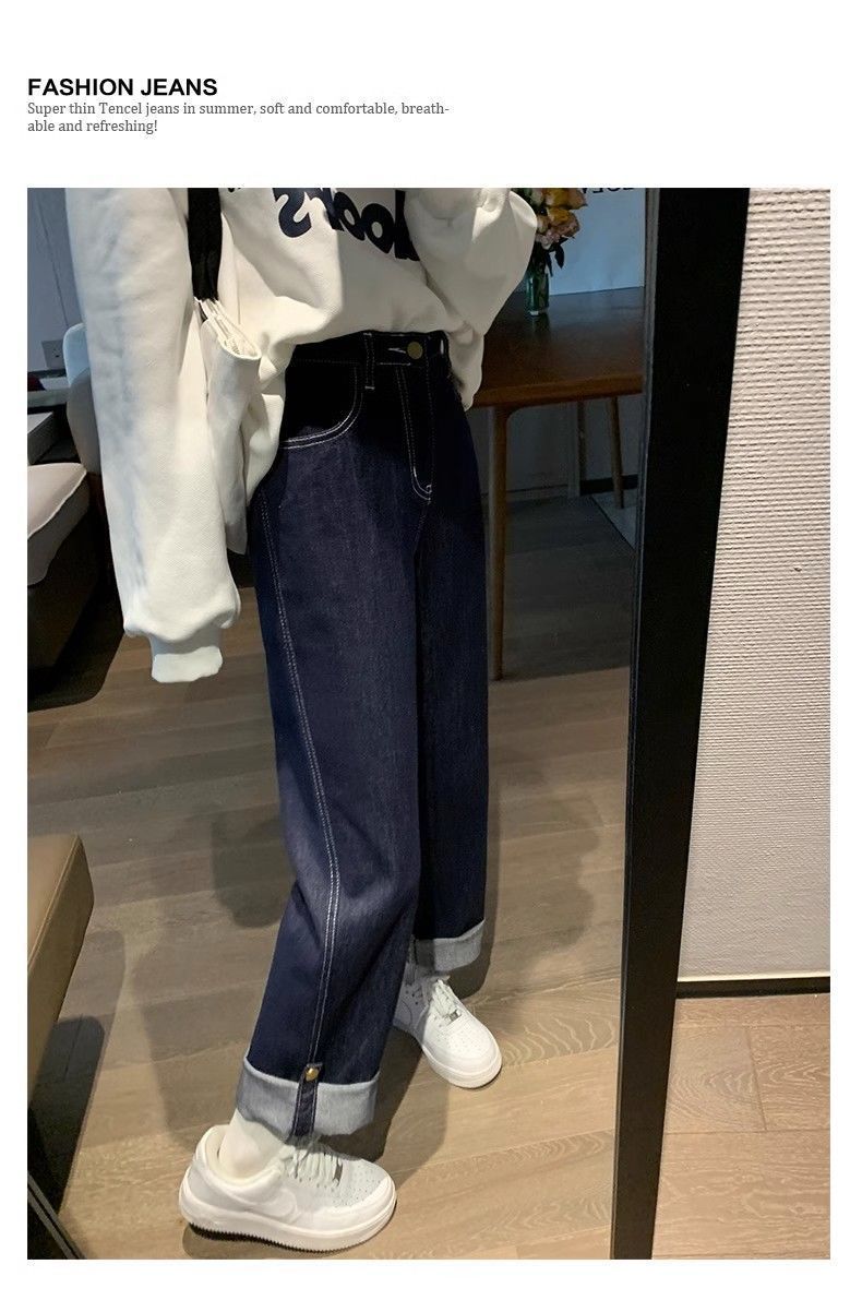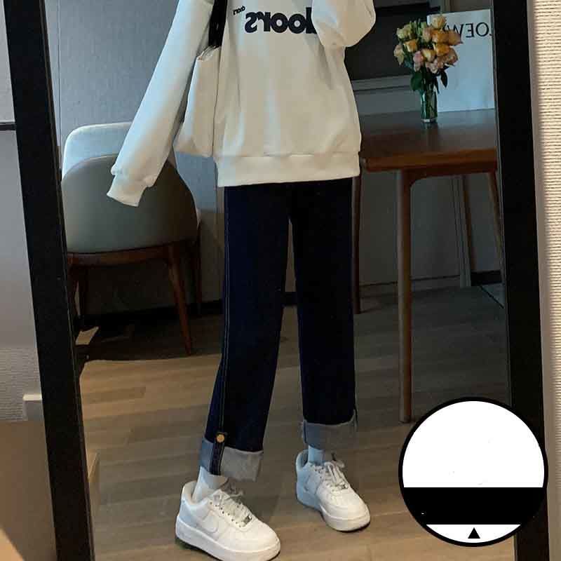 大码高腰垂感牛仔裤女2024秋季新款窄版直筒宽松显瘦卷边阔腿裤潮
