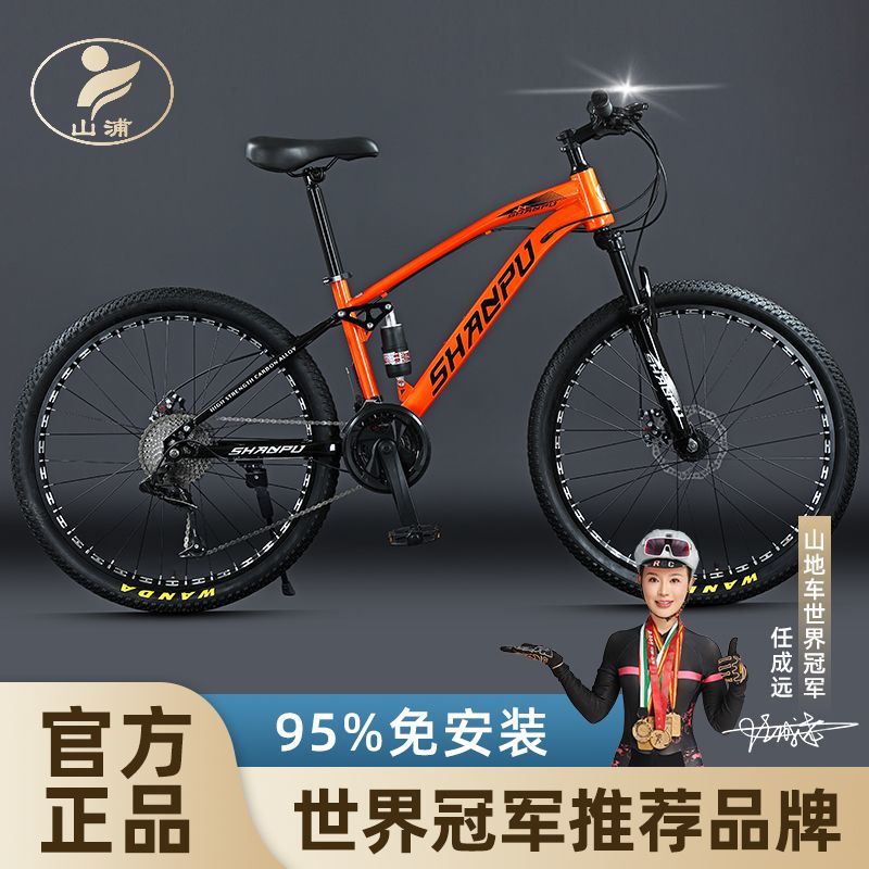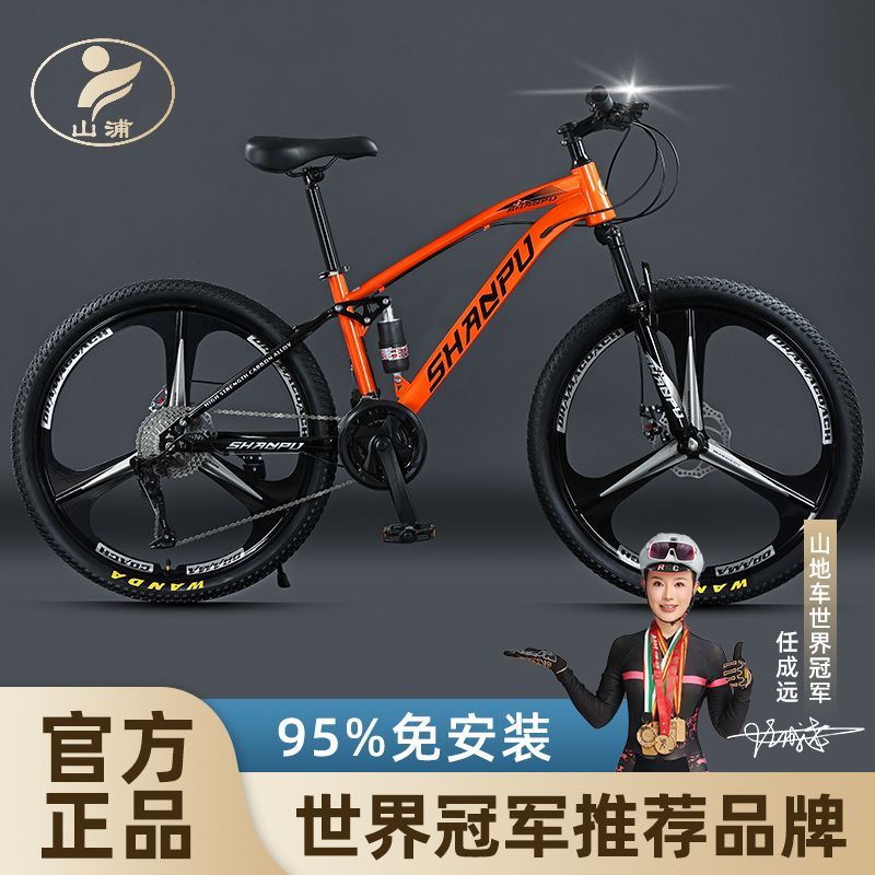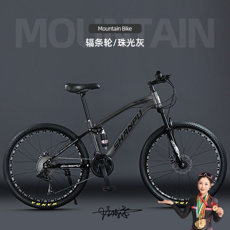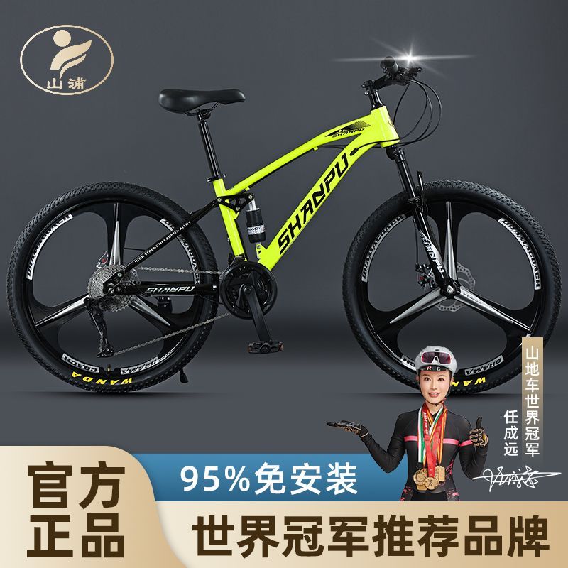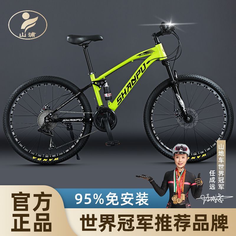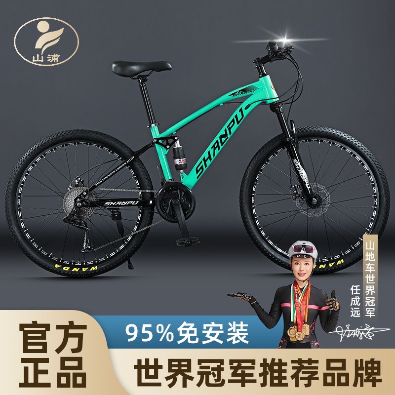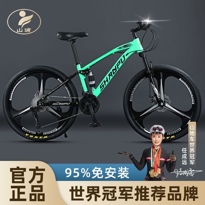山浦软尾山地自行车成人男女青少年学生中大童双减震越野变速单车