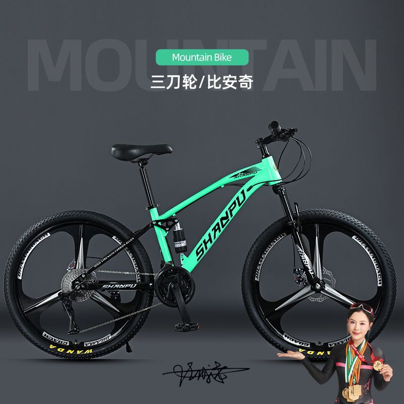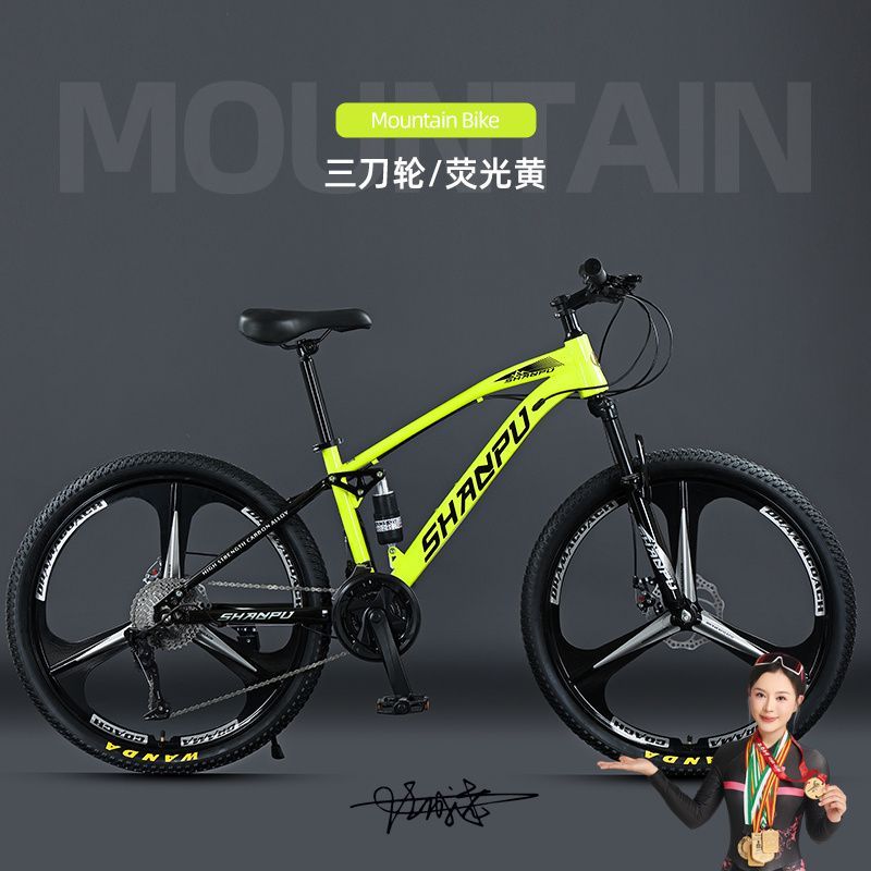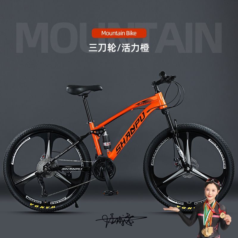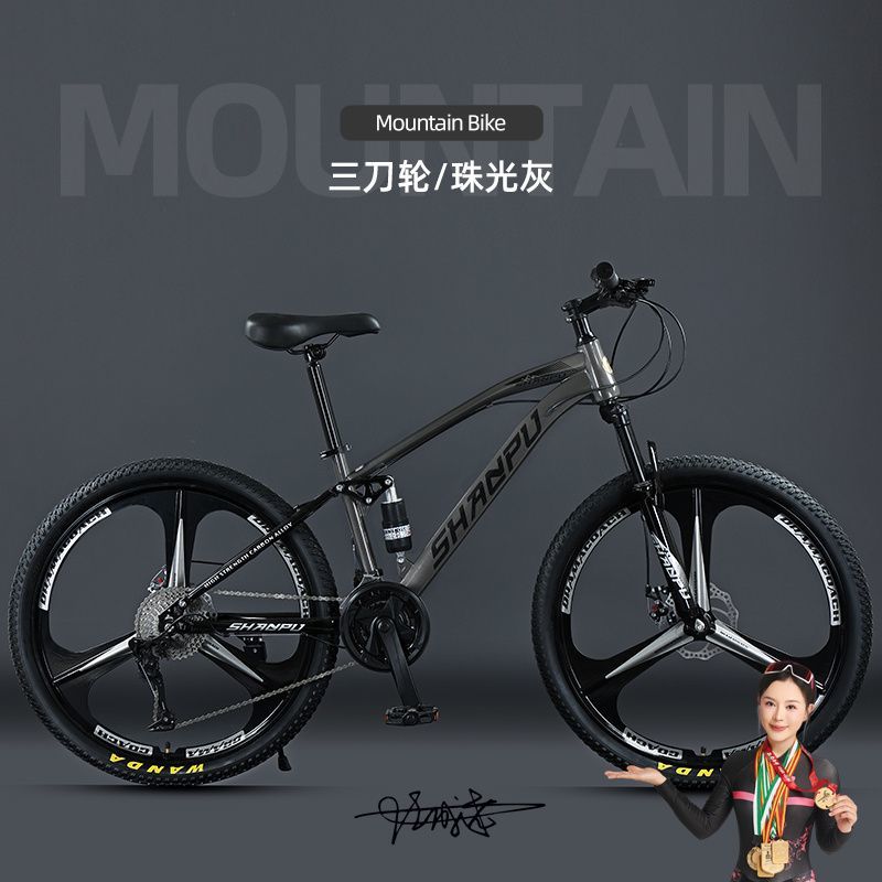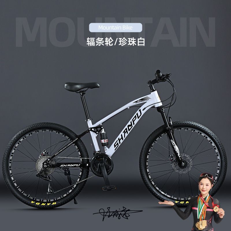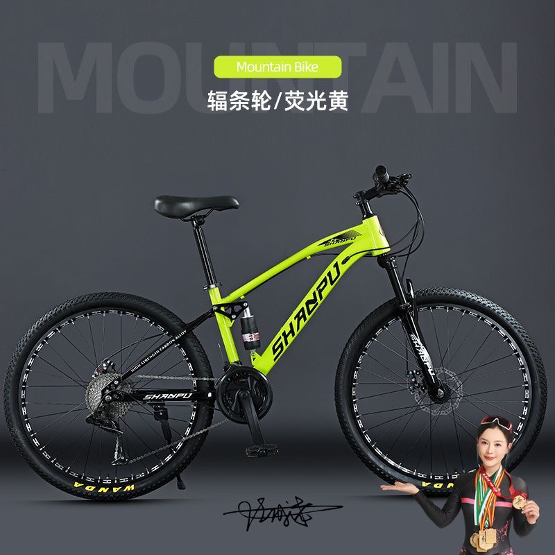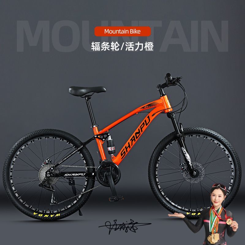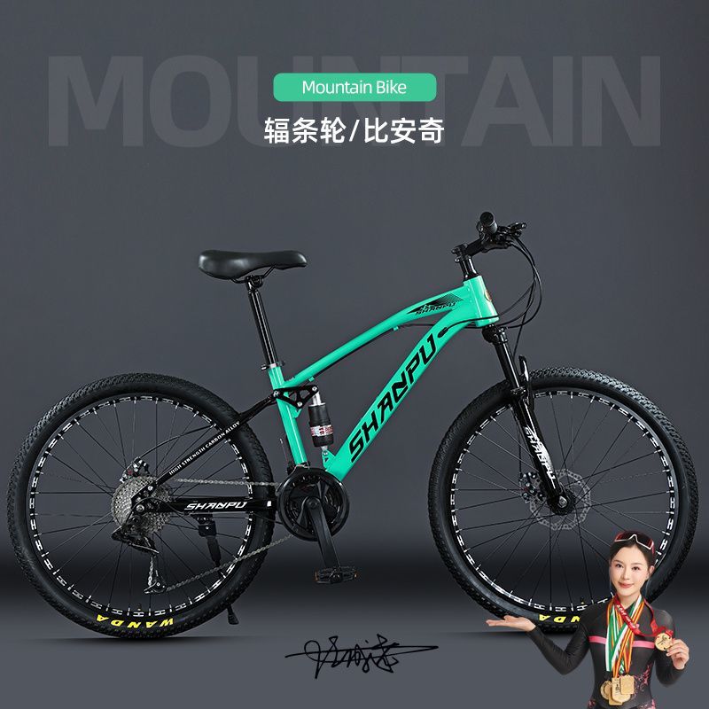 山浦软尾山地自行车成人男女青少年学生中大童双减震越野变速单车