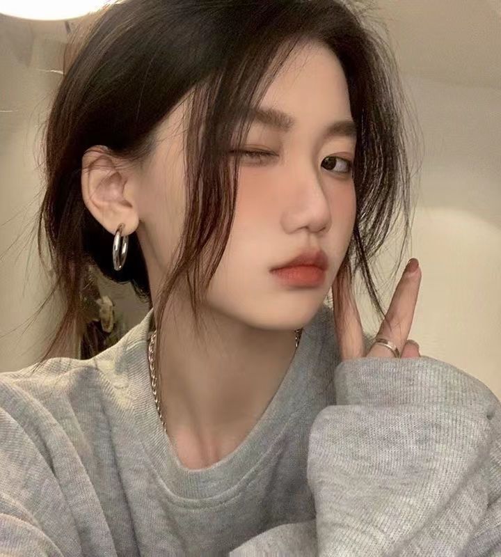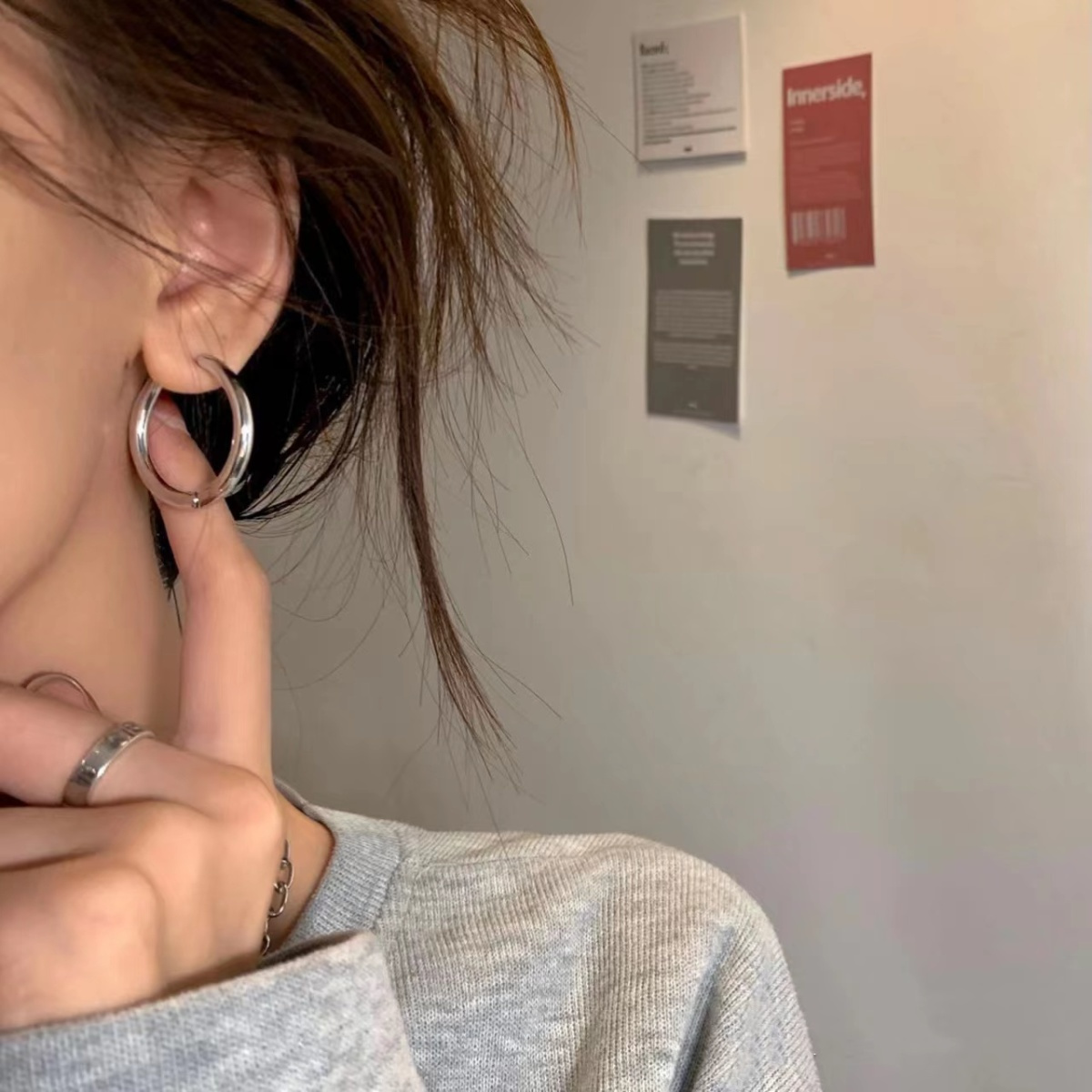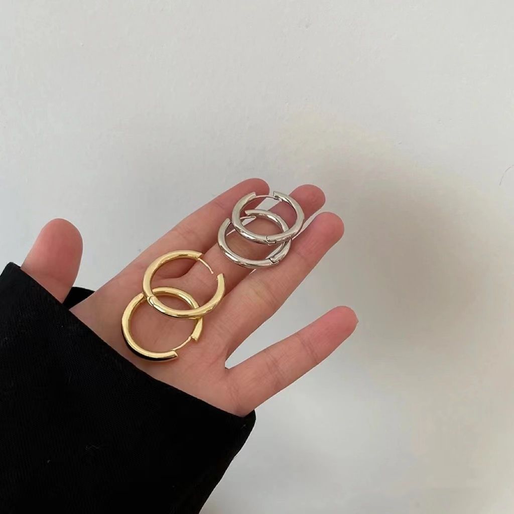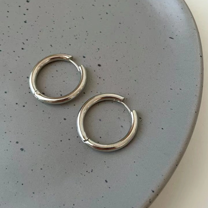 银色素圈耳环小众设计感高级耳圈女耳钉2023年新款潮爆款圆圈耳饰