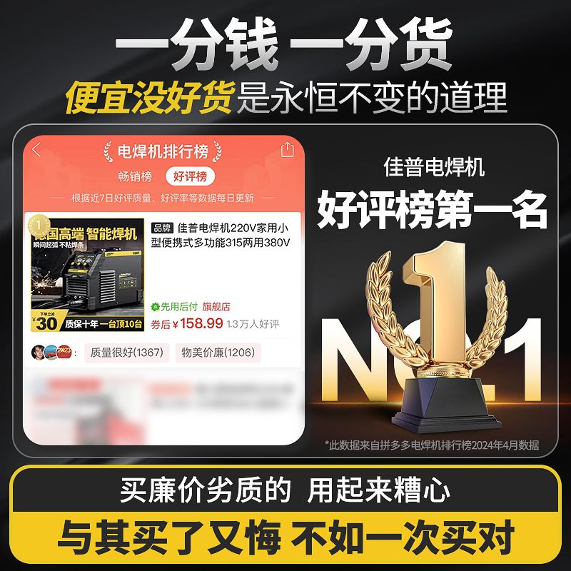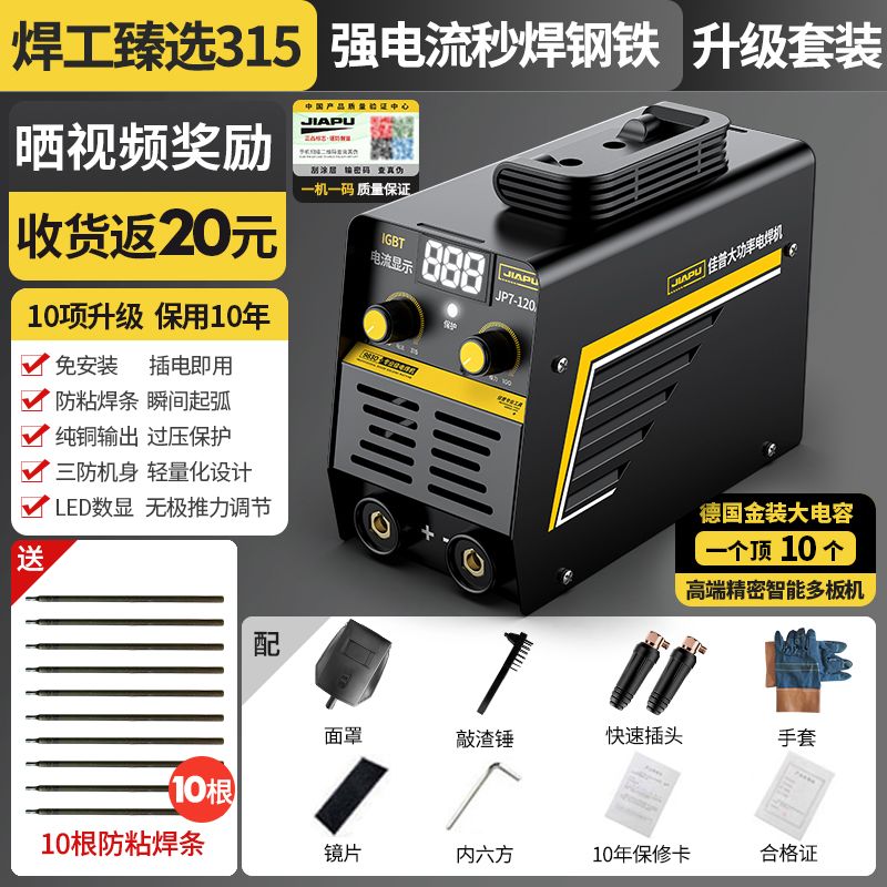 佳普电焊机220V家用小型便携式多功能315两用380V全铜双电压焊机