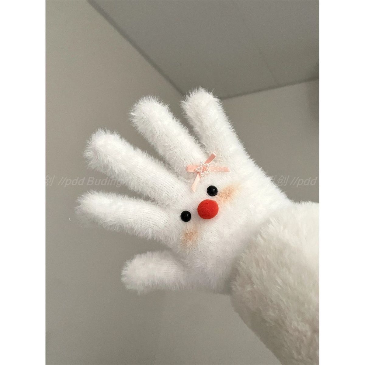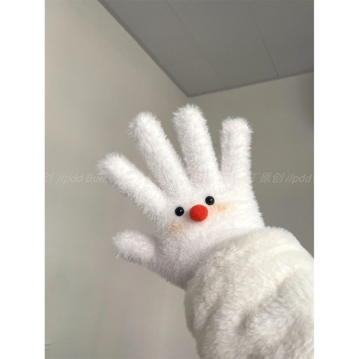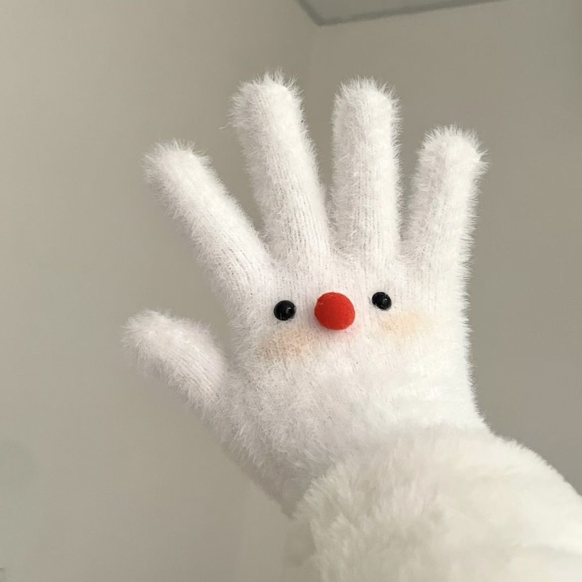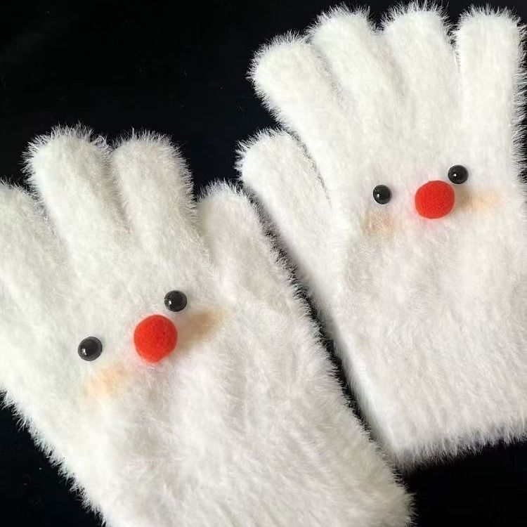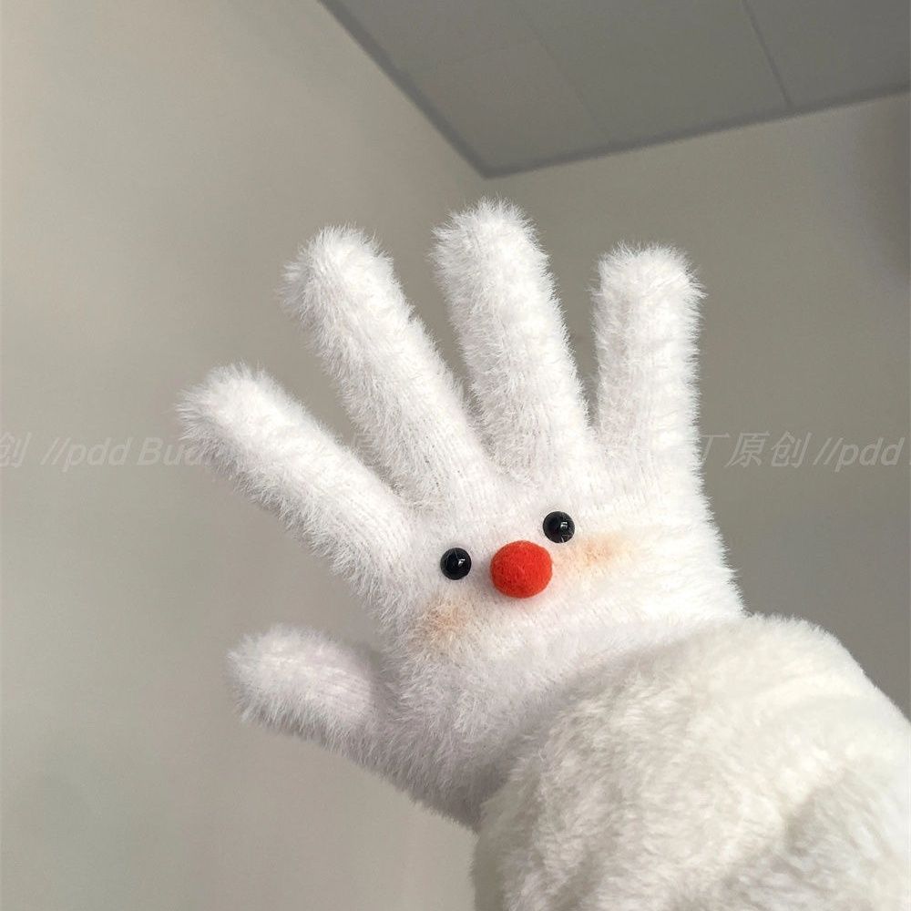 害羞雪人原创手作可爱少女冬季保暖毛绒手套冬天分指骑行学生百搭