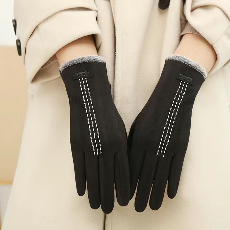 手套女冬季开车手套加厚加绒保暖秋季骑行手套防风法式分指可触屏