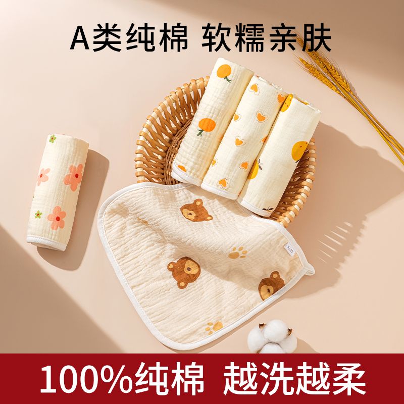 婴儿口水巾纯棉超软小方巾宝宝专用洗脸手帕新生儿童擦脸纱布毛巾