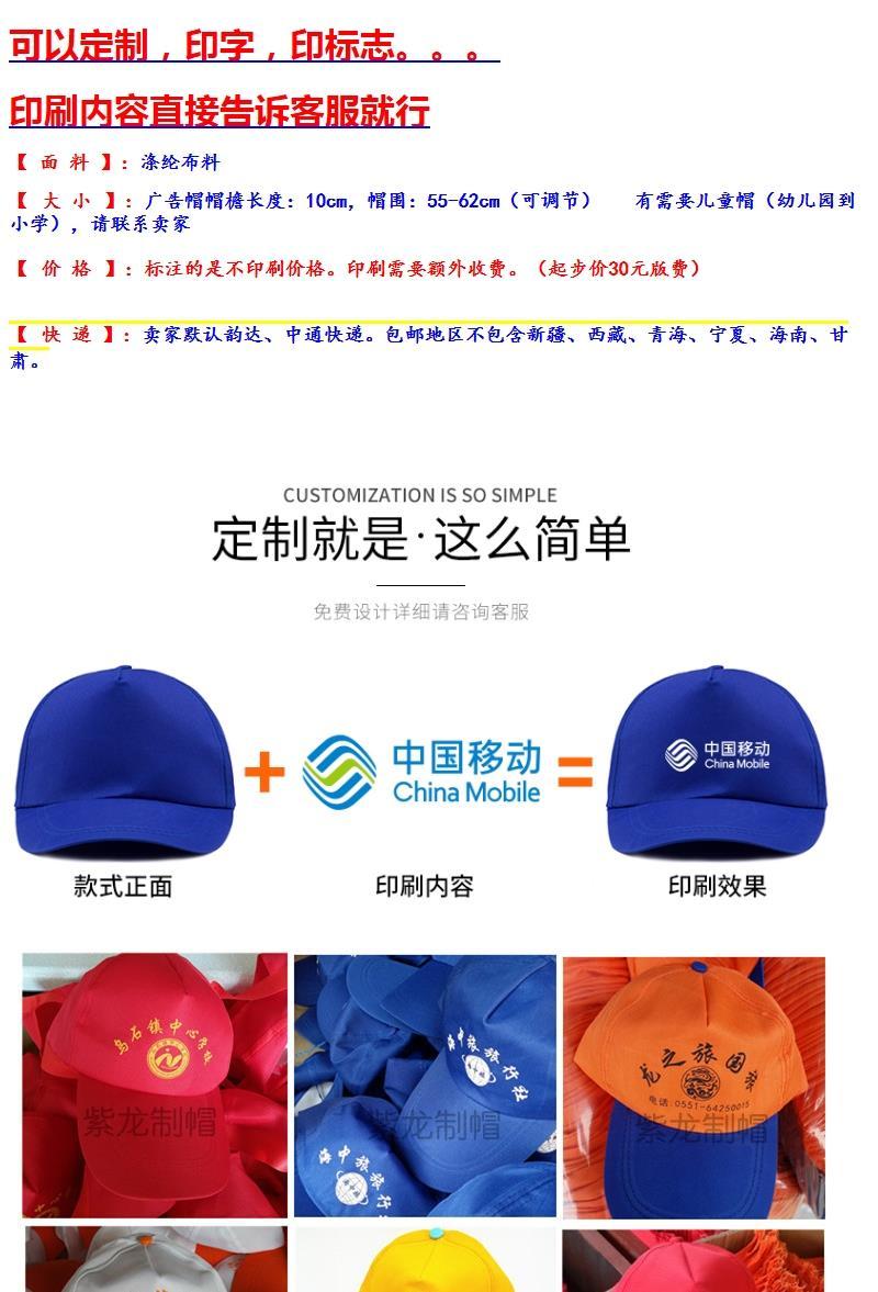 定制帽子diy订做印字logo广告帽 儿童遮阳帽女旅游活动防晒太阳帽
